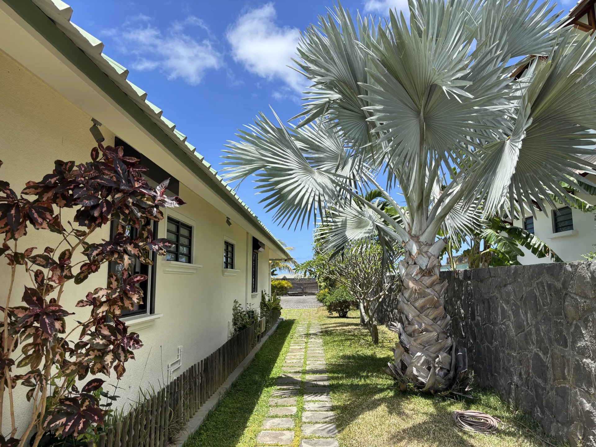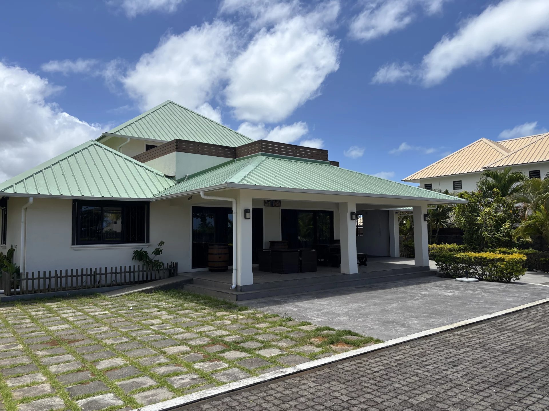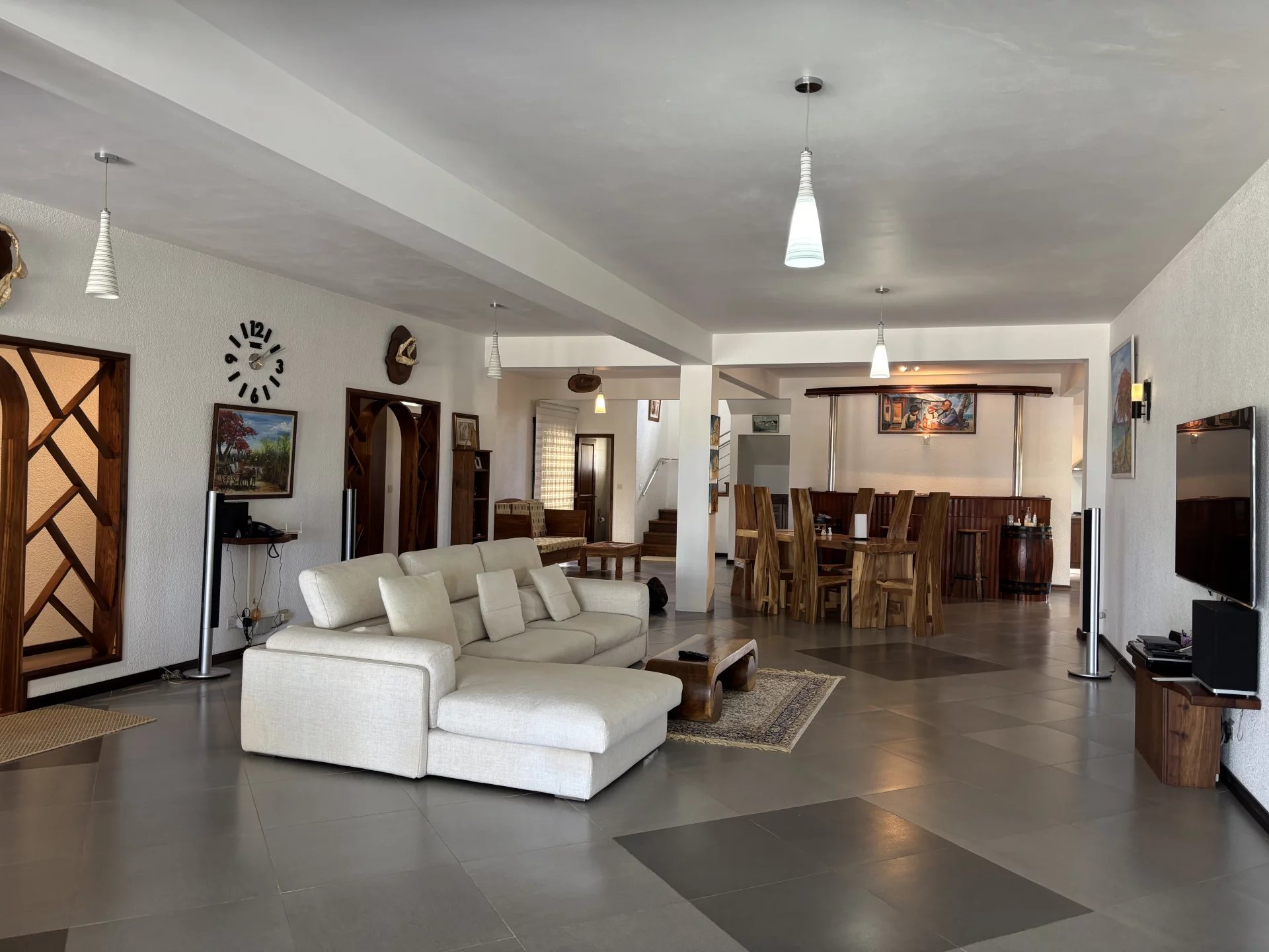 In the heart of a secure residential development, discover this spacious house set on over 1,600 m² (0.40 acres) of land. The house has been designed with generously sized rooms and offers two en-suite bedrooms on the ground floor, alongside a large living/dining room with a bar area and a pool table. The fully equipped kitchen includes a pantry for all your domestic needs. Upstairs, two en-suite bedrooms open onto a large terrace. The garden, adorned with tall palm trees, offers the possibility of adding a swimming pool. A garage with space for at least two cars completes this property. Contact us to arrange a viewing.