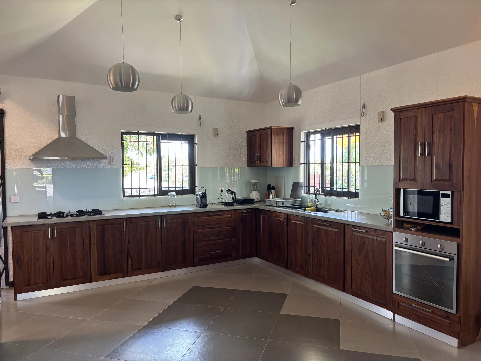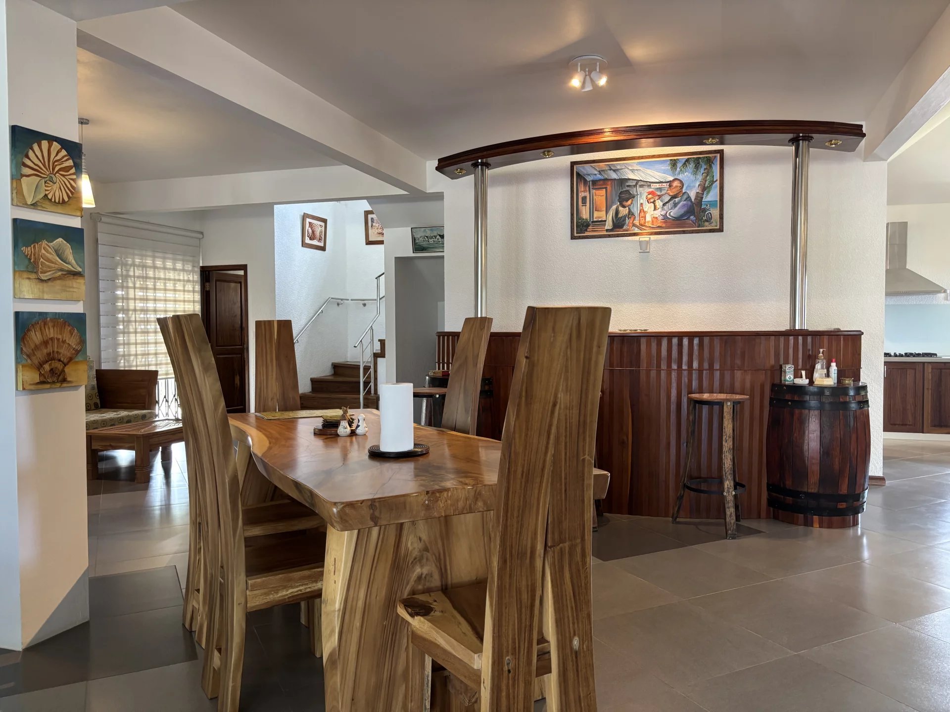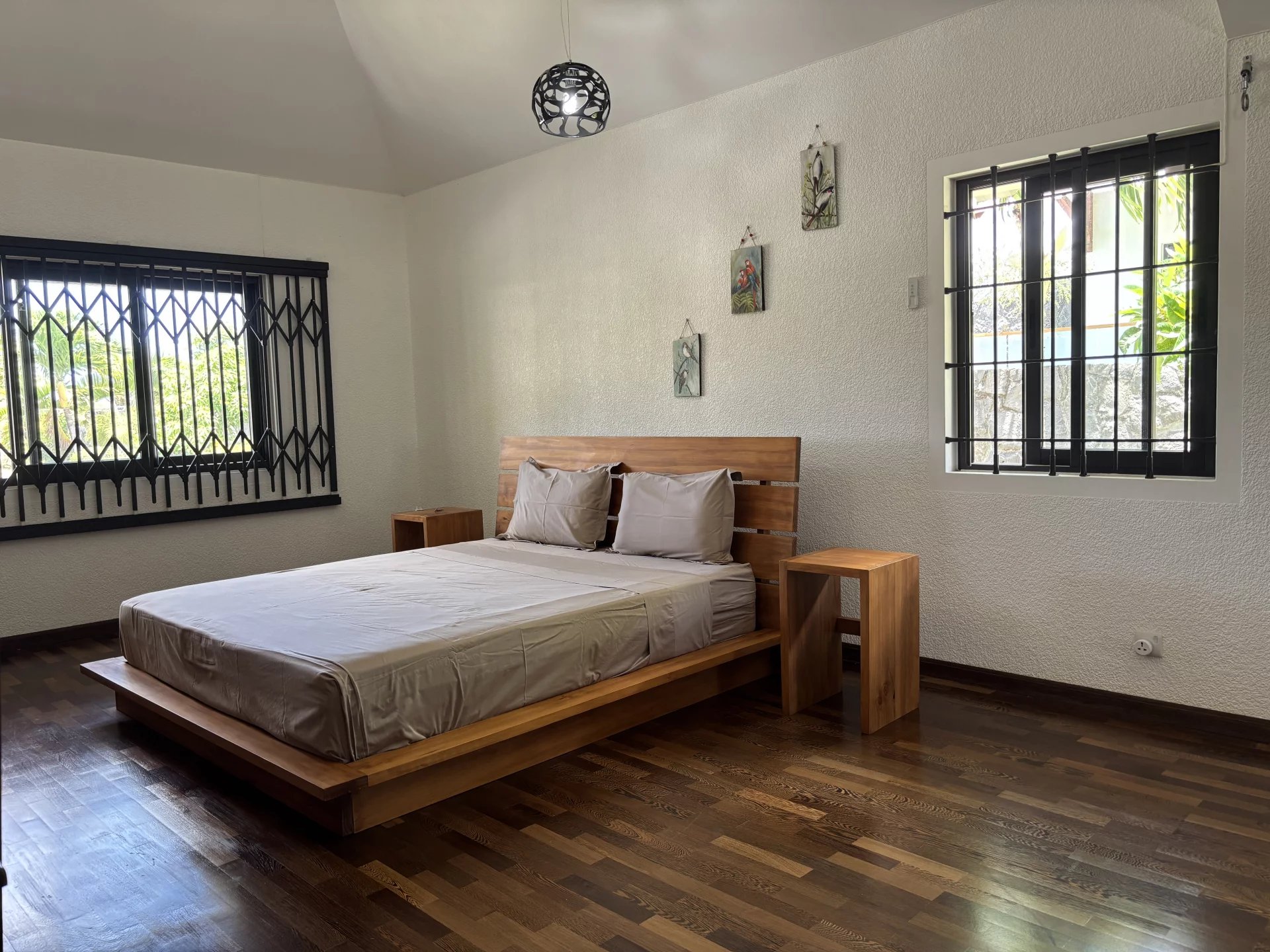 In the heart of a secure residential development, discover this spacious house set on over 1,600 m² (0.40 acres) of land. The house has been designed with generously sized rooms and offers two en-suite bedrooms on the ground floor, alongside a large living/dining room with a bar area and a pool table. The fully equipped kitchen includes a pantry for all your domestic needs. Upstairs, two en-suite bedrooms open onto a large terrace. The garden, adorned with tall palm trees, offers the possibility of adding a swimming pool. A garage with space for at least two cars completes this property. Contact us to arrange a viewing.