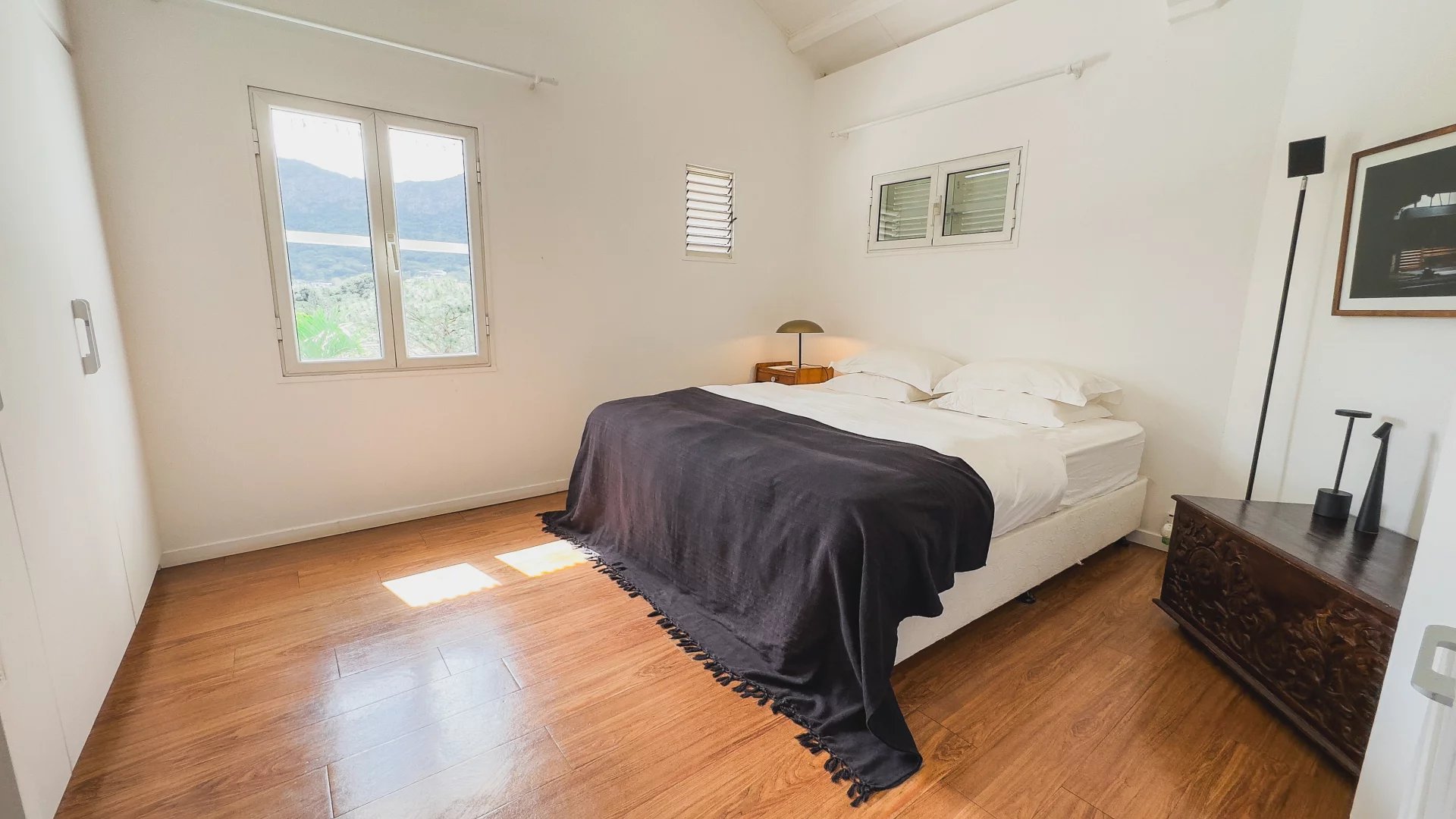 On the ground floor, you're welcomed by a cozy living room that opens onto a beautiful veranda, offering breathtaking views of the surrounding mountains and river. The open-plan layout includes a modern American kitchen and dining area—perfect for entertaining.