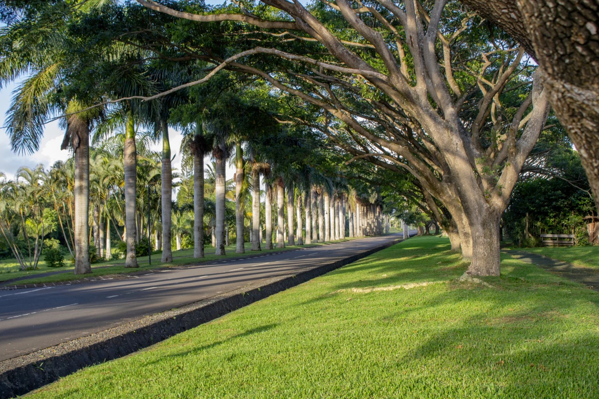 The ground floor features a bright and spacious living area, a fully equipped kitchen with central island, a secondary service kitchen and laundry, three bedrooms (including two en suites), a TV room, an additional bathroom, a double garage, and a terrace opening onto a tropical garden. Upstairs includes a large en suite bedroom with private balcony, a flexible study/TV room, and an exploitable rooftop.