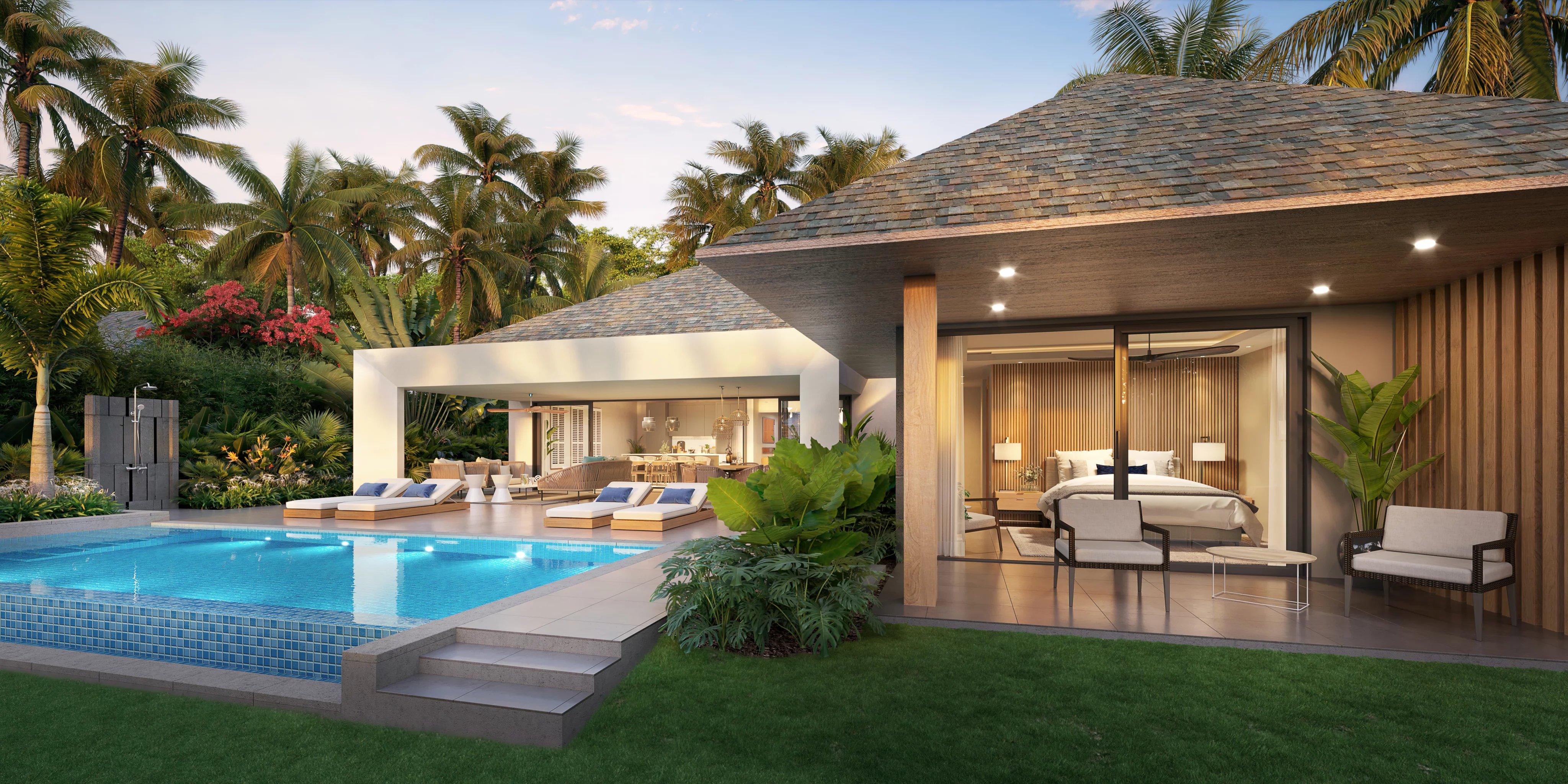 Nestled within lush, preserved landscapes, the Lagoon Villas offer a refined retreat where light, greenery, and privacy set the rhythm of everyday life. Designed around tropical gardens, these elegant villas feature bright interiors opening onto shaded terraces, private pools, and inviting outdoor living spaces.