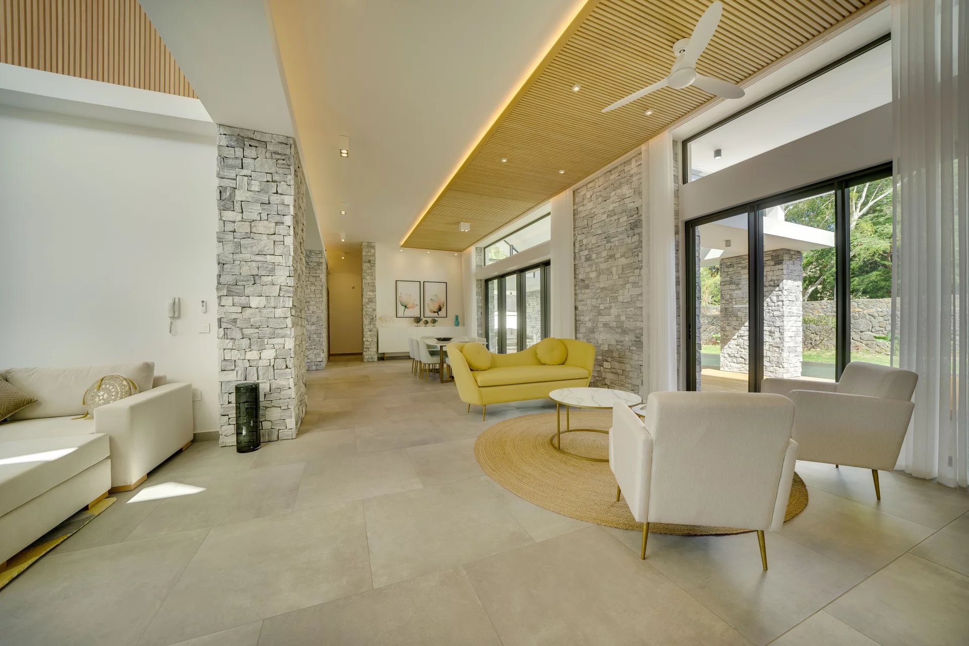 New 4 bedrooms villa of 437 m² on a 1,121 m² plot. Located in an upscale residential area of Pereybere in a gated estate.
