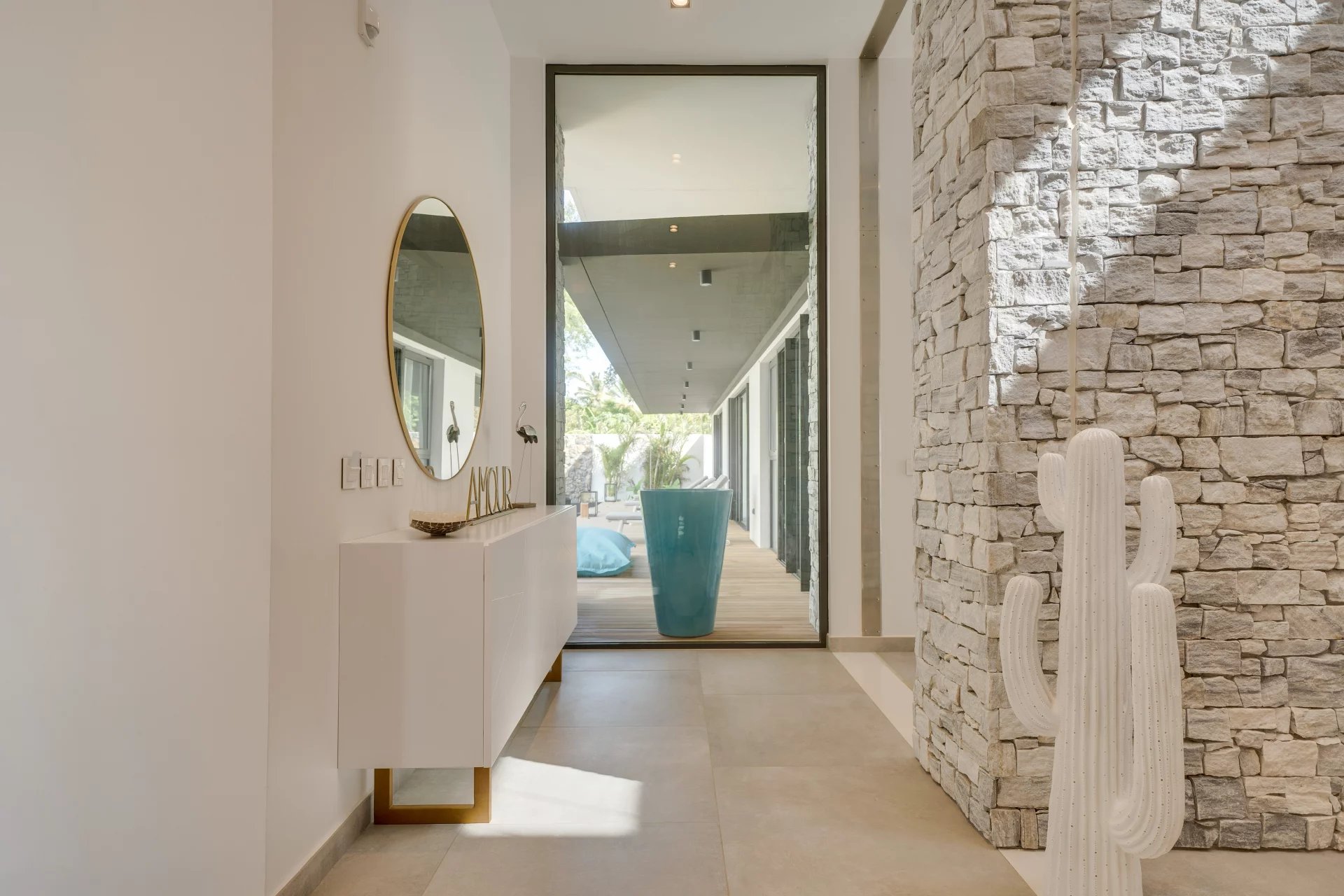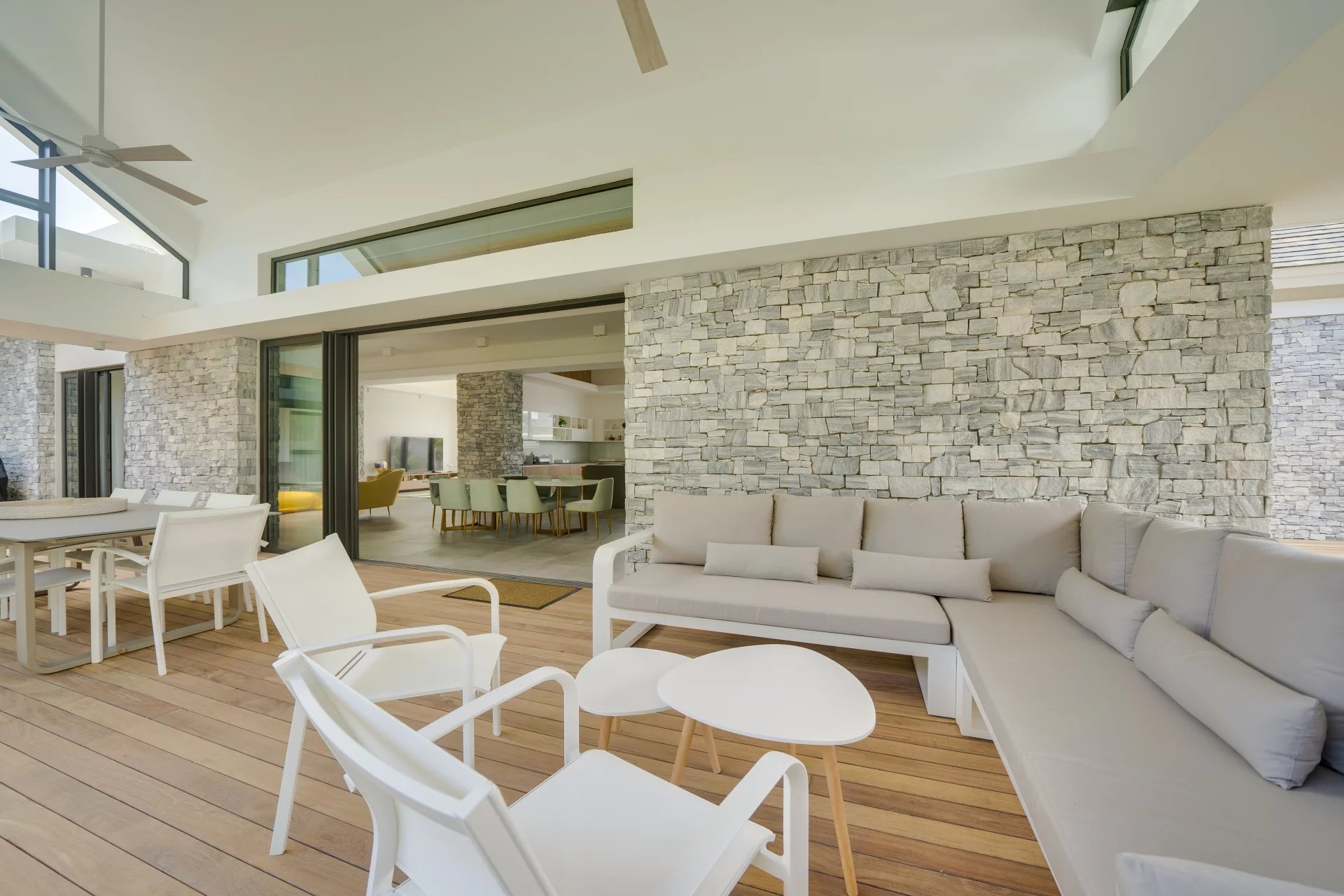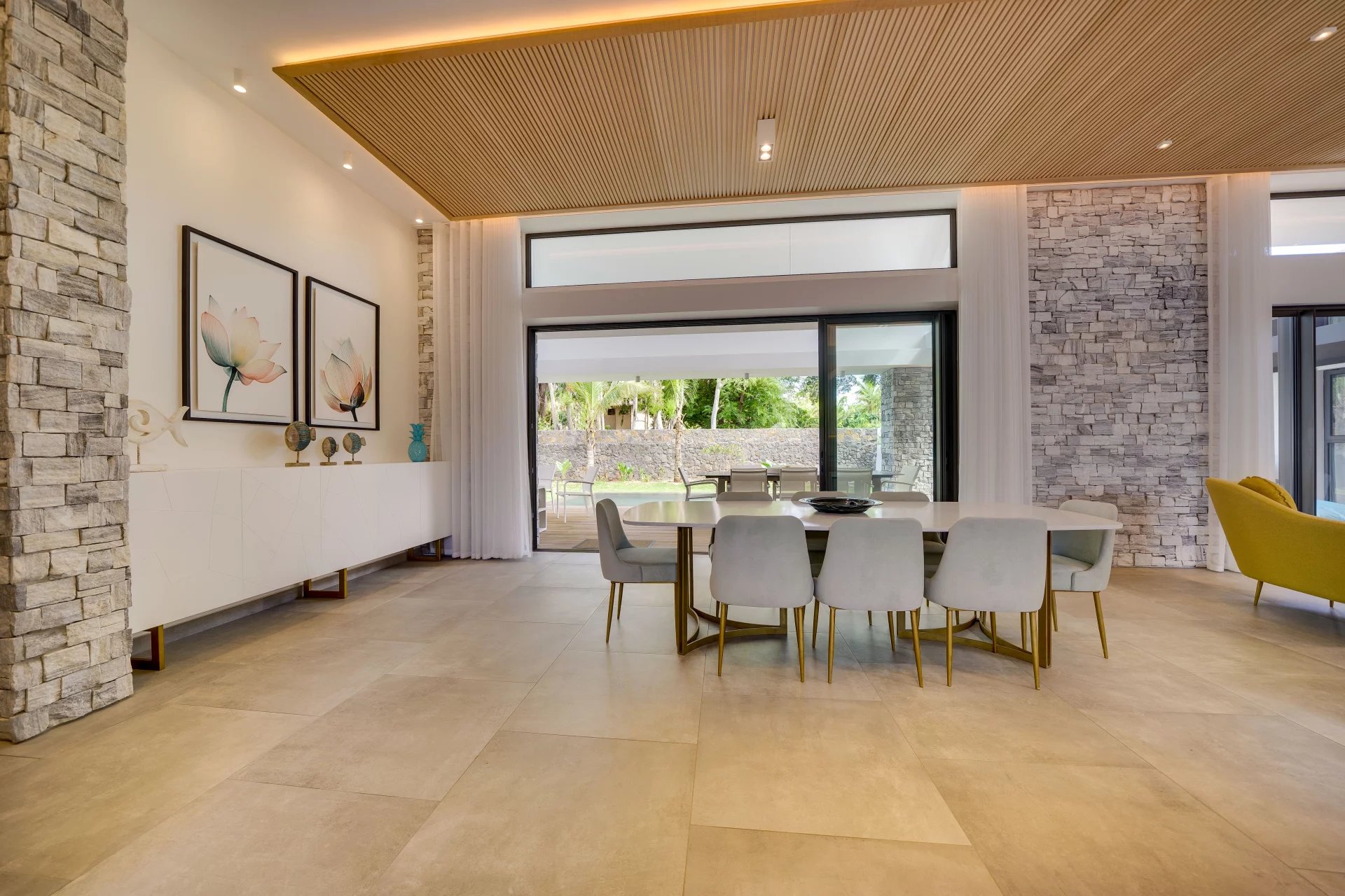 Large volumes and high ceilings characterise this villa designed to take advantage of the outdoor spaces. All the rooms have direct access to the terrace and the vast slate infinity pool.