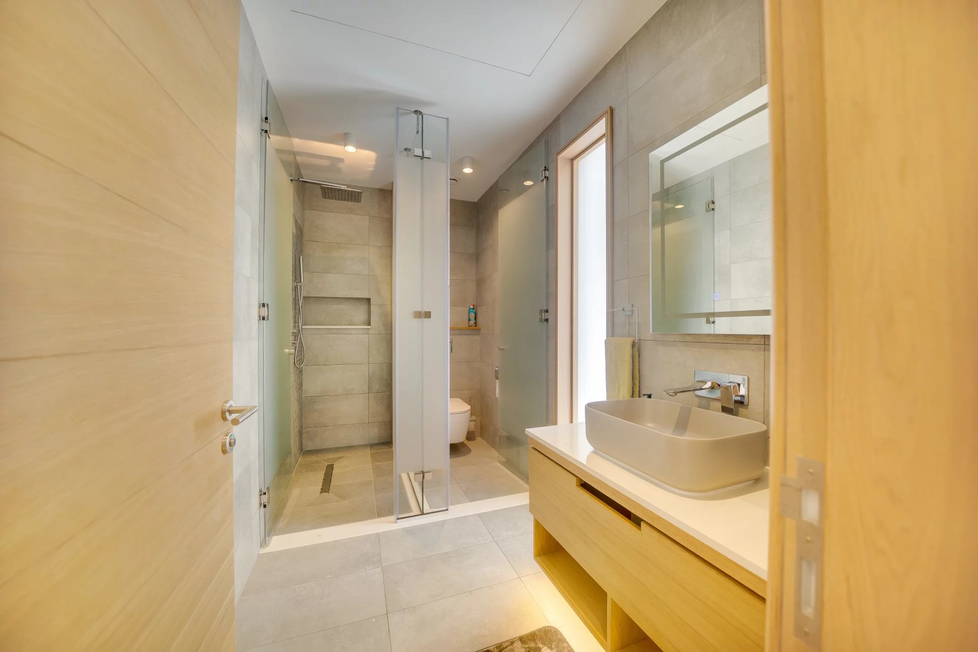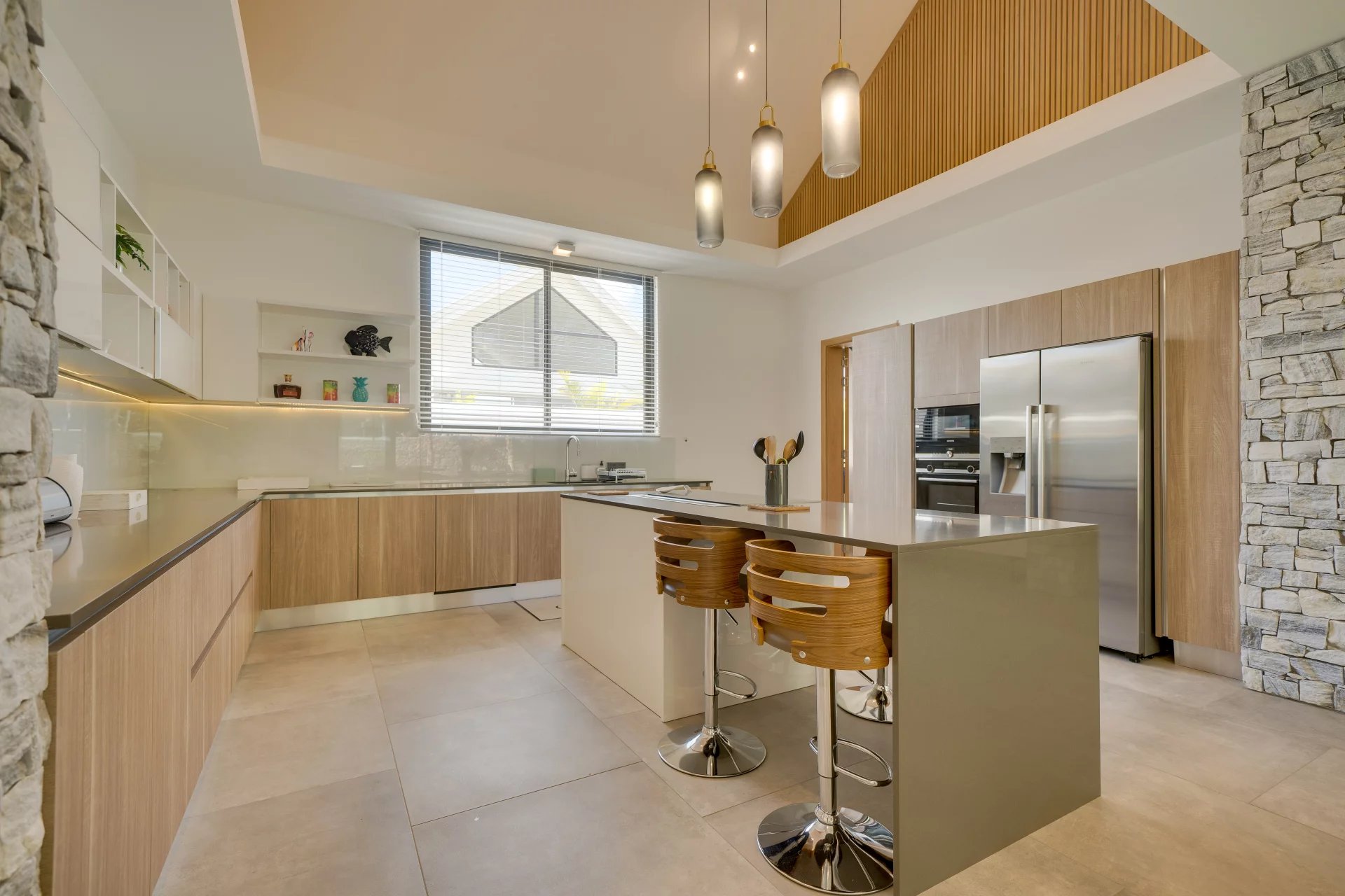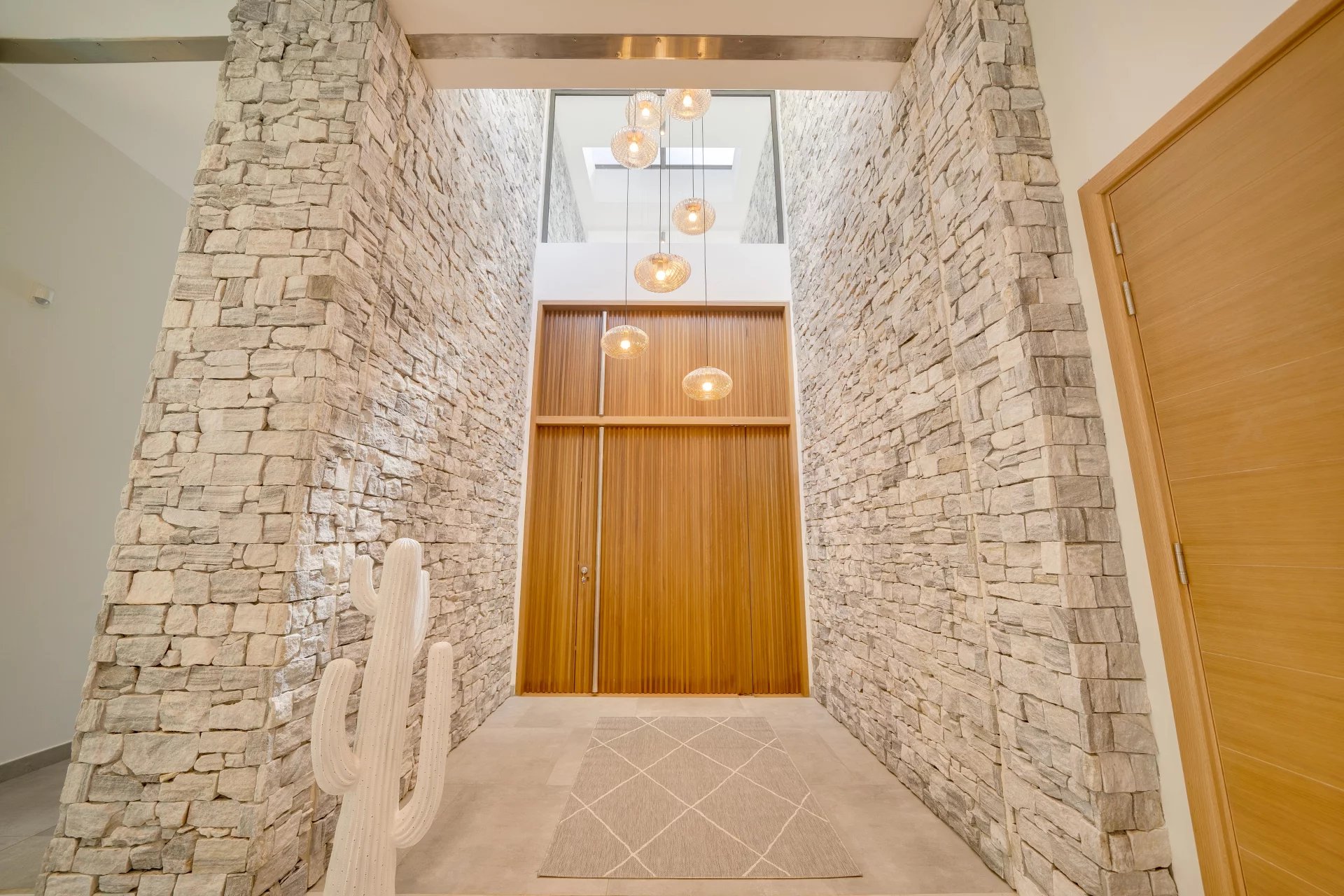 Finishes combining stone and wood. Double garage.
