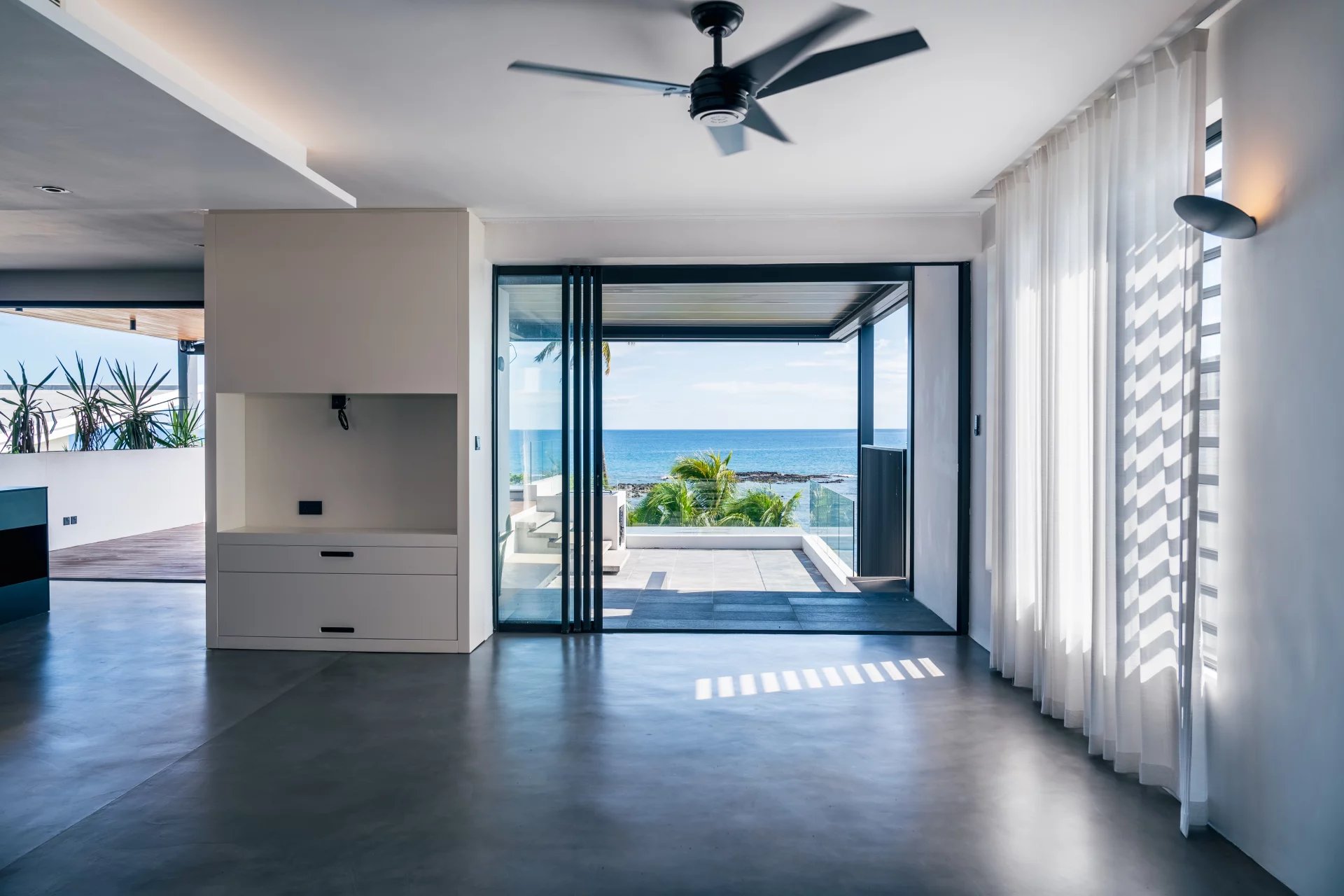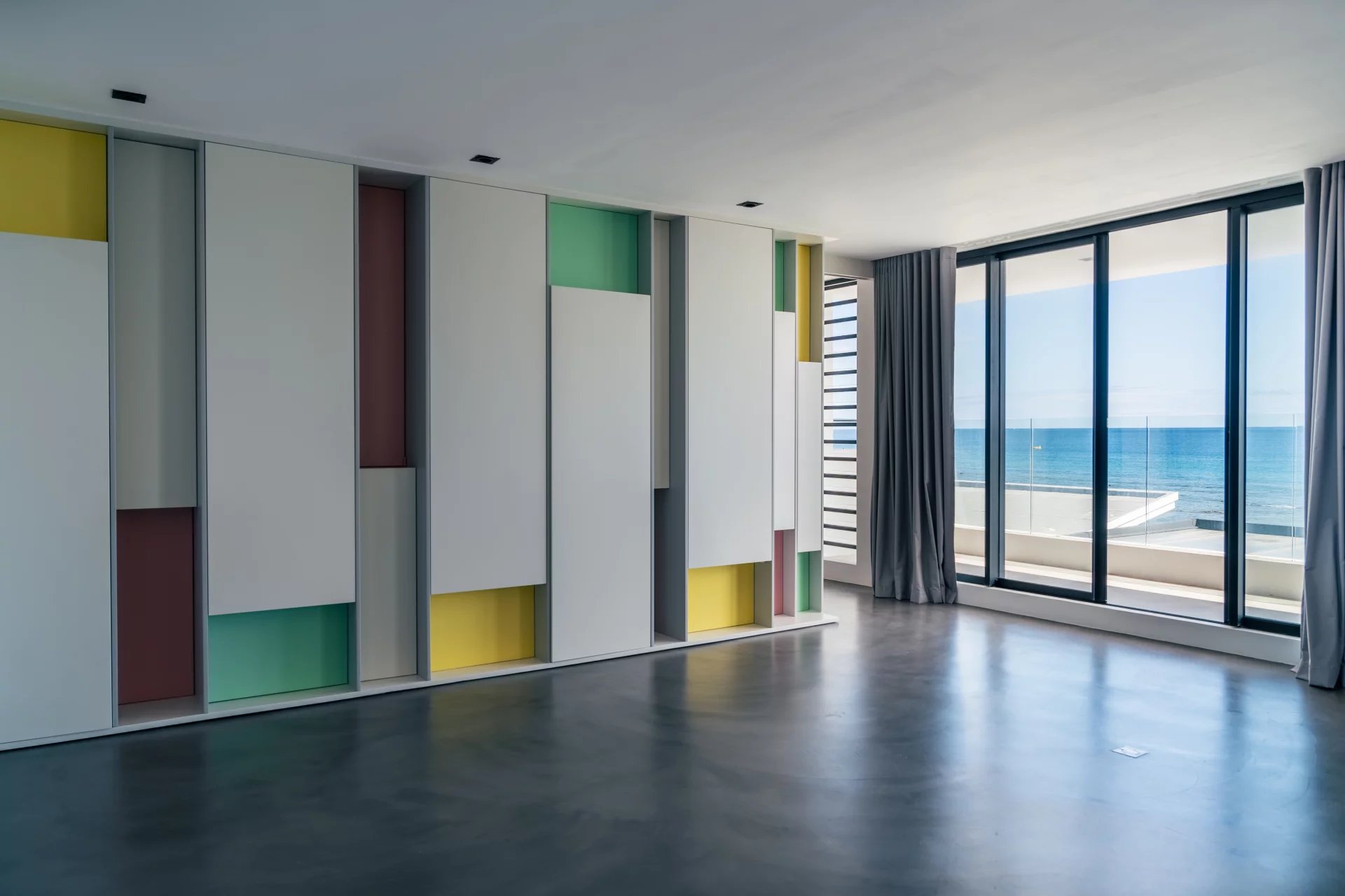 This stunning 283 m² penthouse with three bedrooms offers breathtaking sea views and direct access to the beach. A private coded lift takes you to this penthouse, where an elegant copper door welcomes you into a spacious living area that flows seamlessly onto a terrace with an infinity pool.