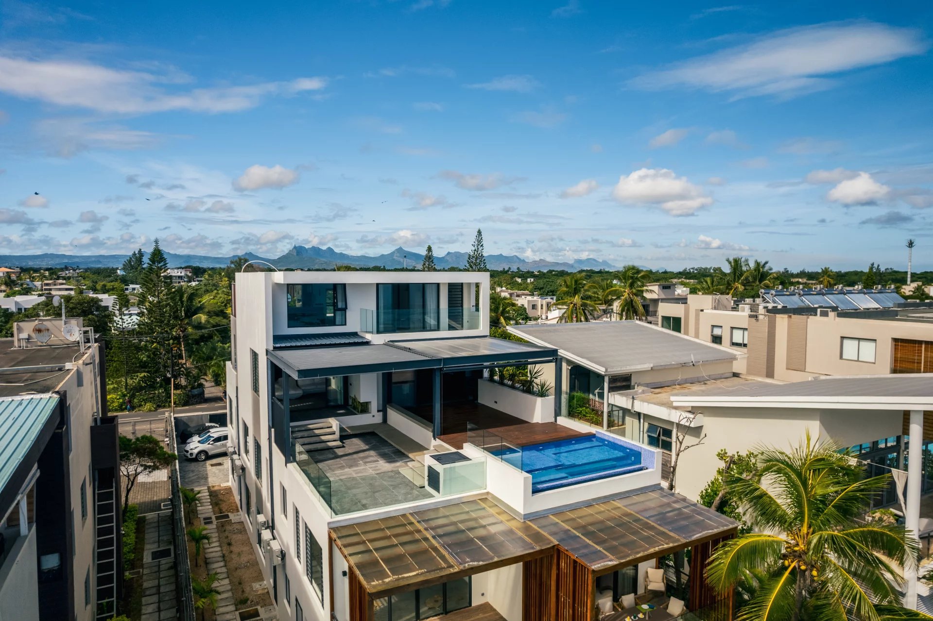 The property includes two reserved parking spaces and is ideally located just 10 minutes from Grand Baie, close to restaurants and essential services. The monthly fee covers maintenance of the building, lift, pools, and garden—managed by a reputable syndic shared with only three other co-owners.