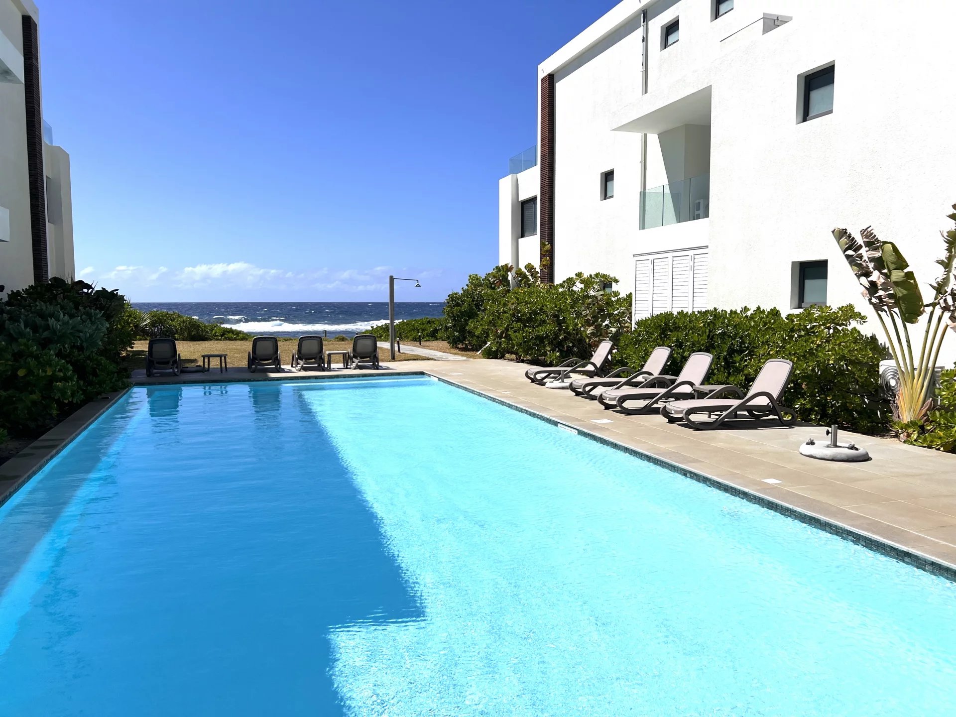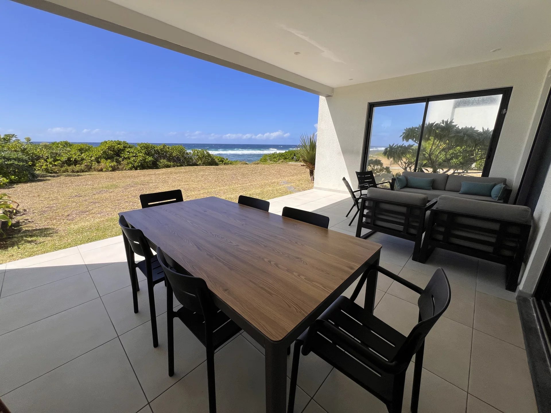 This charming three-bedroom apartment is set in a private residence ideally located on the seafront, on the peaceful, unspoilt beach of Poste Lafayette. This privileged location allows you to enjoy an exceptional living environment, between turquoise lagoon and tropical vegetation.