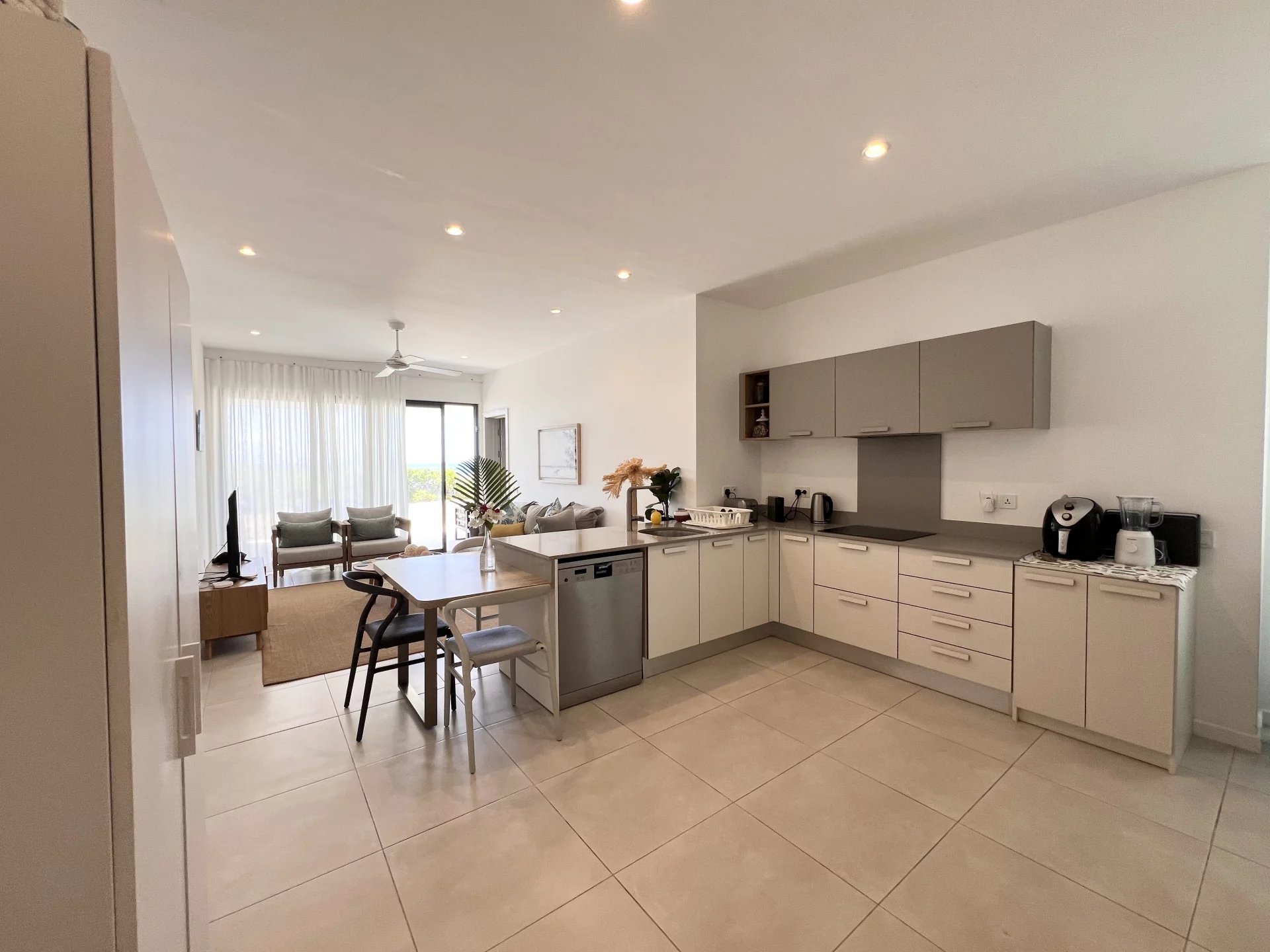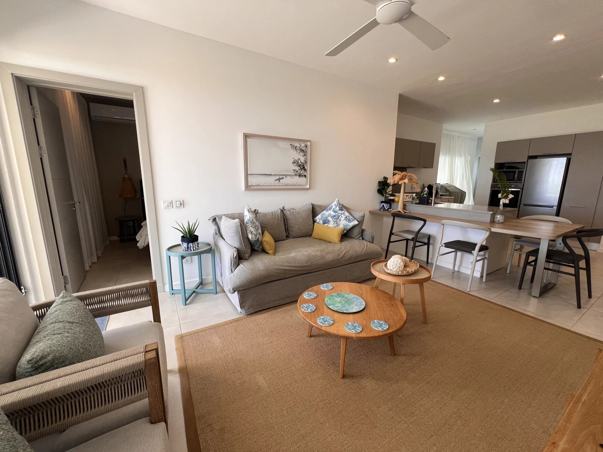 The veranda, a true extension of the living space, offers a breathtaking view of the coral reefs, creating a soothing atmosphere conducive to relaxation. The apartment is fully furnished and equipped, ready to welcome its future occupants in the best conditions of comfort and practicality.