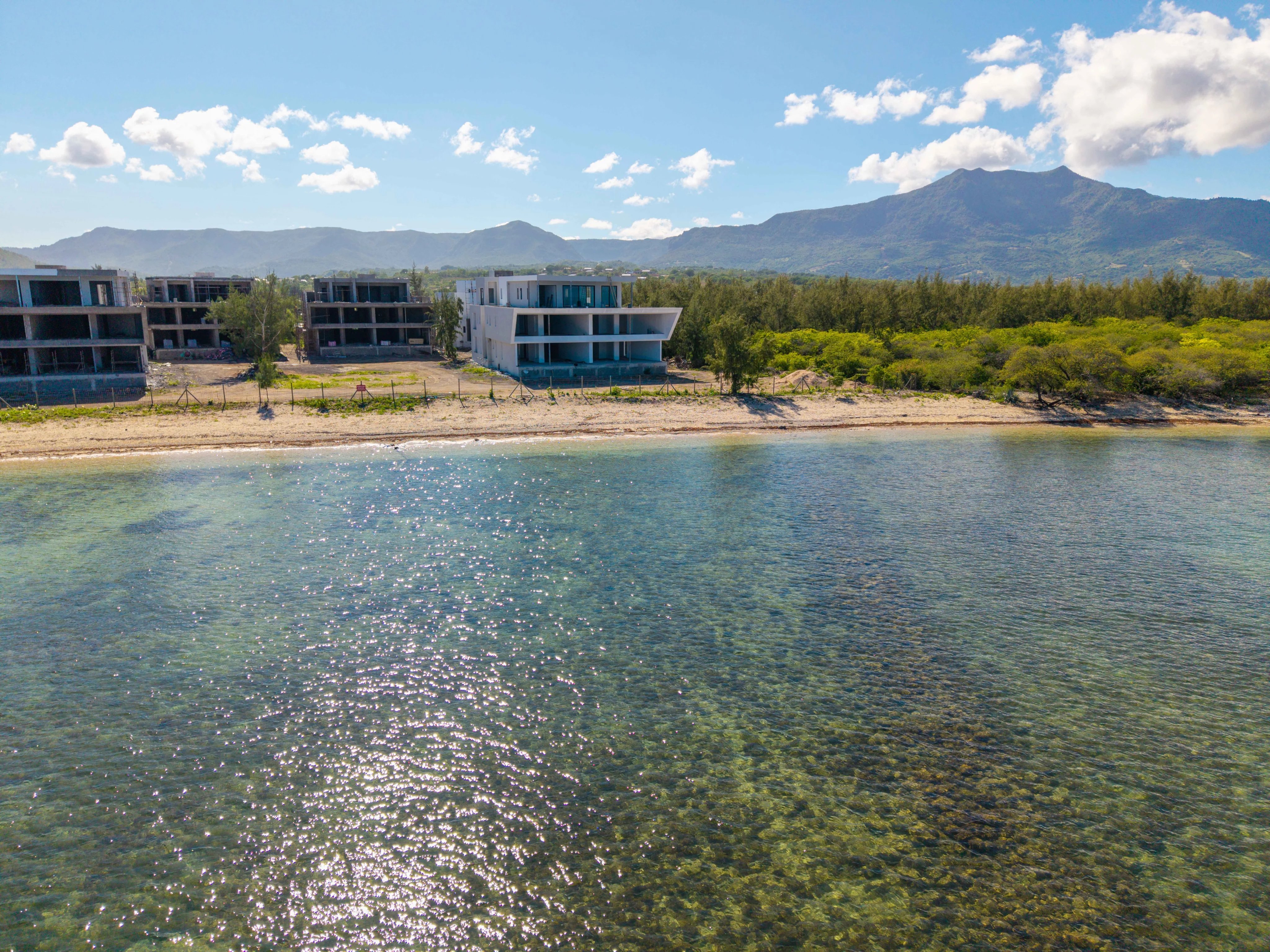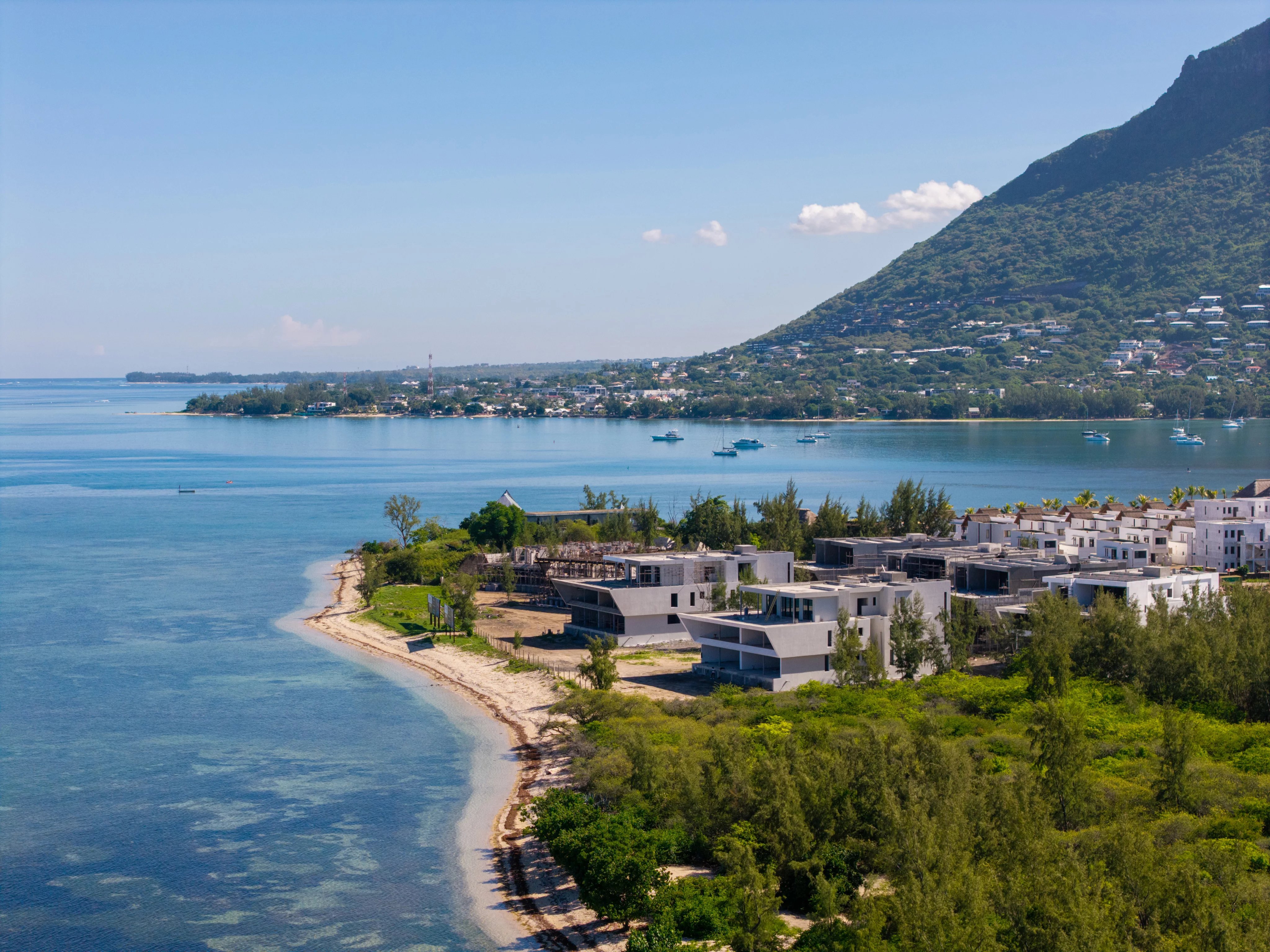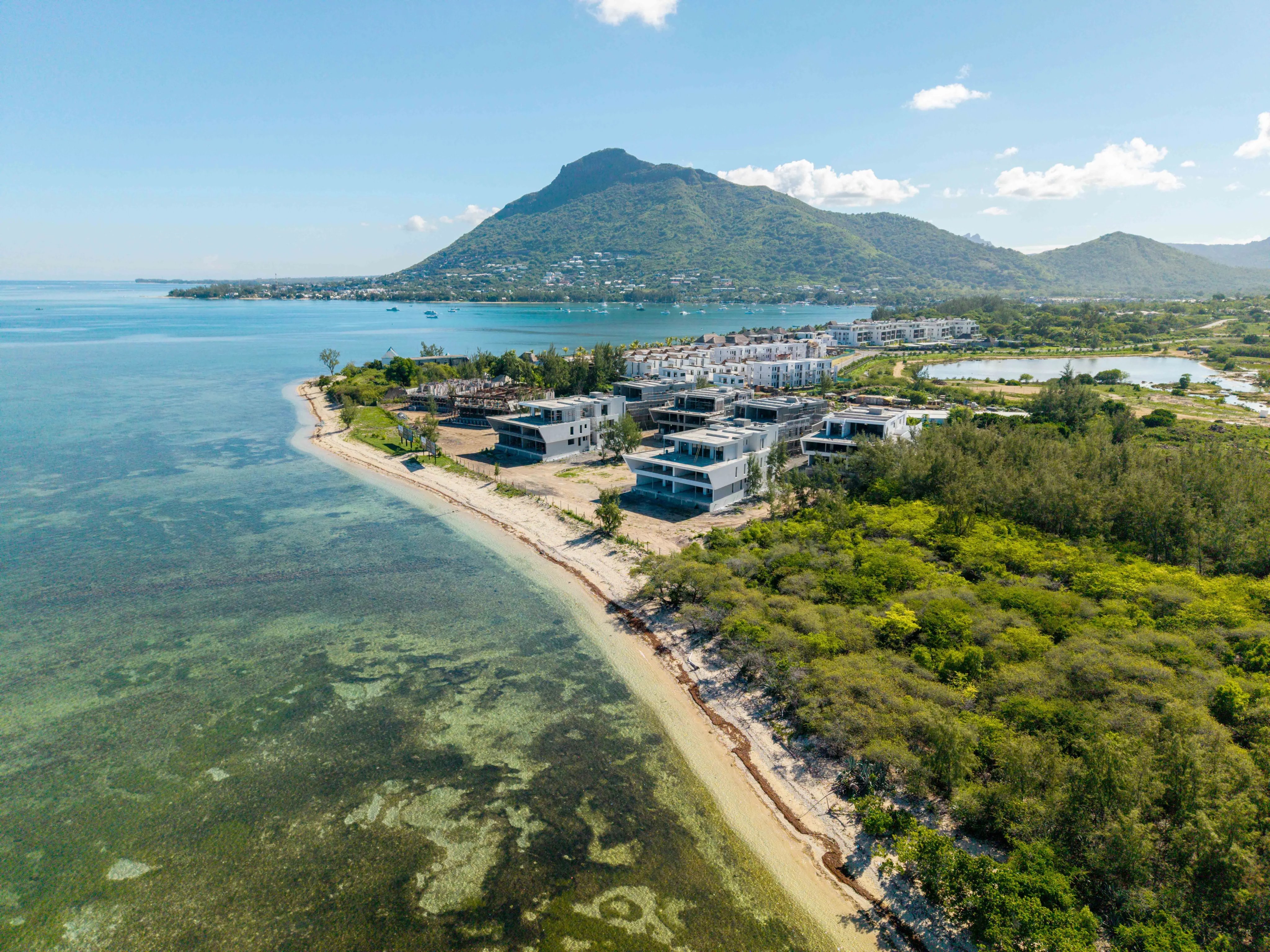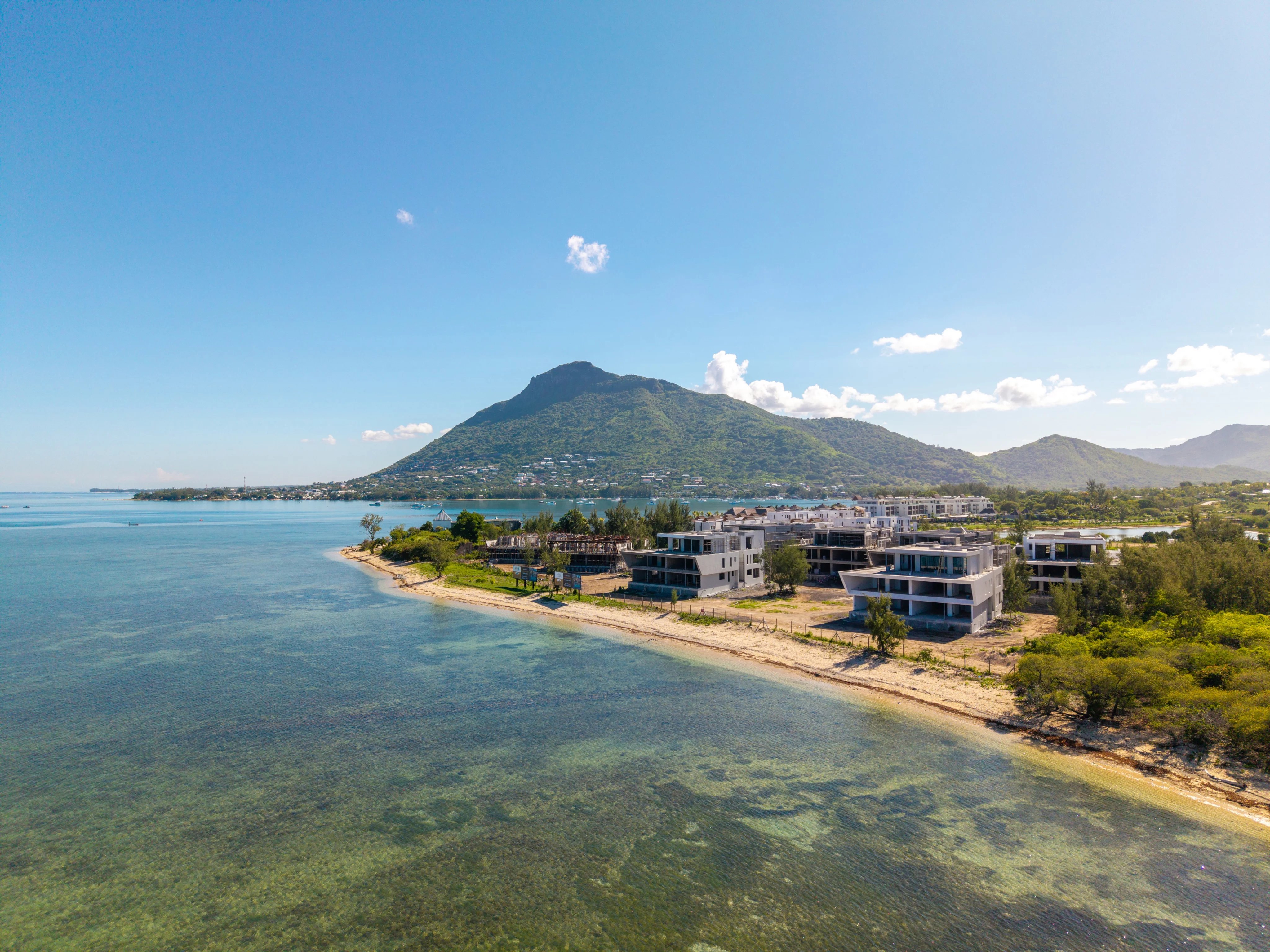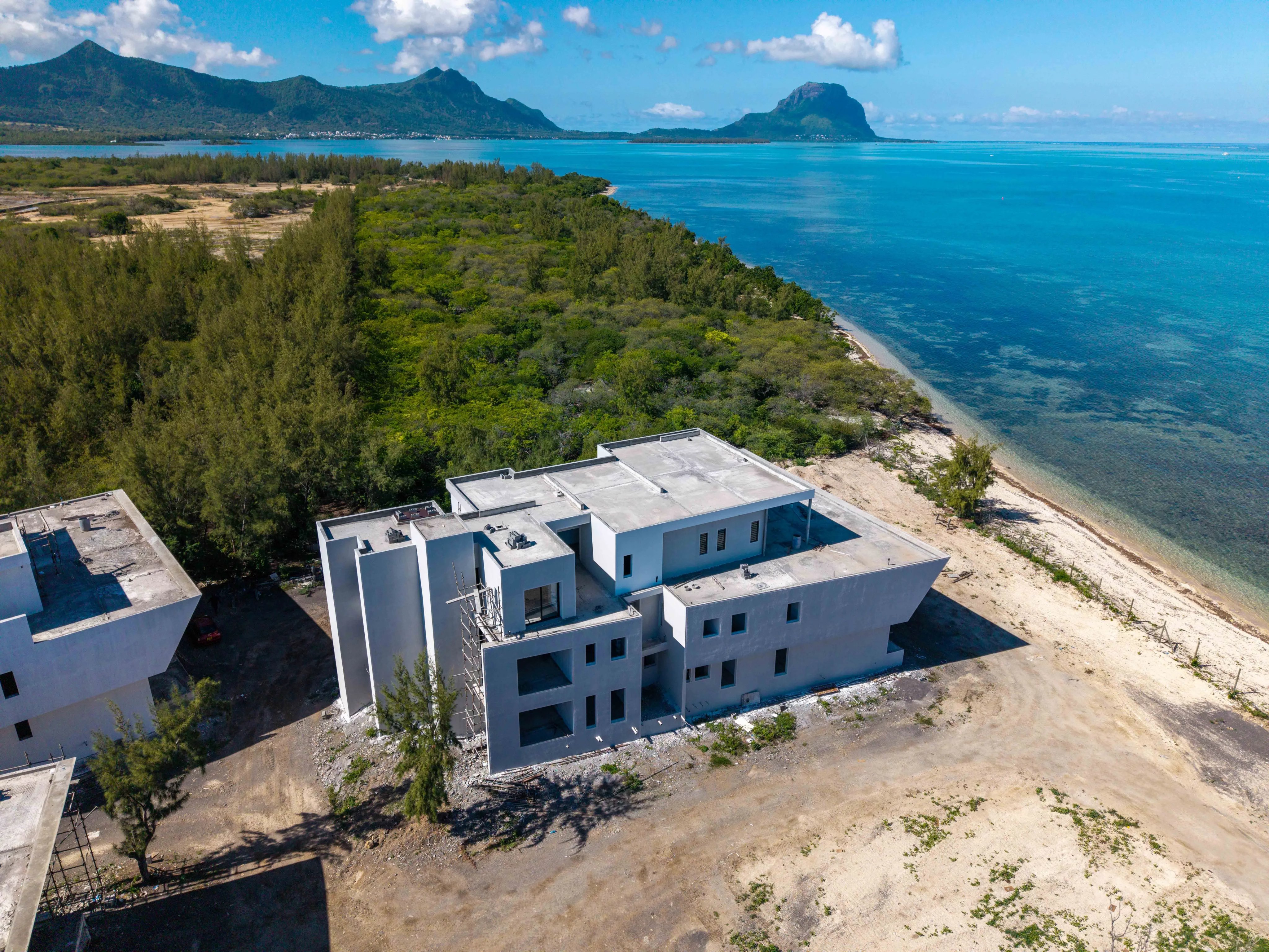 Currently under development with completion scheduled for the end of 2026, the residence offers breathtaking panoramic views of the lagoon and the iconic Le Morne Brabant, providing a spectacular natural setting from sunrise to sunset.