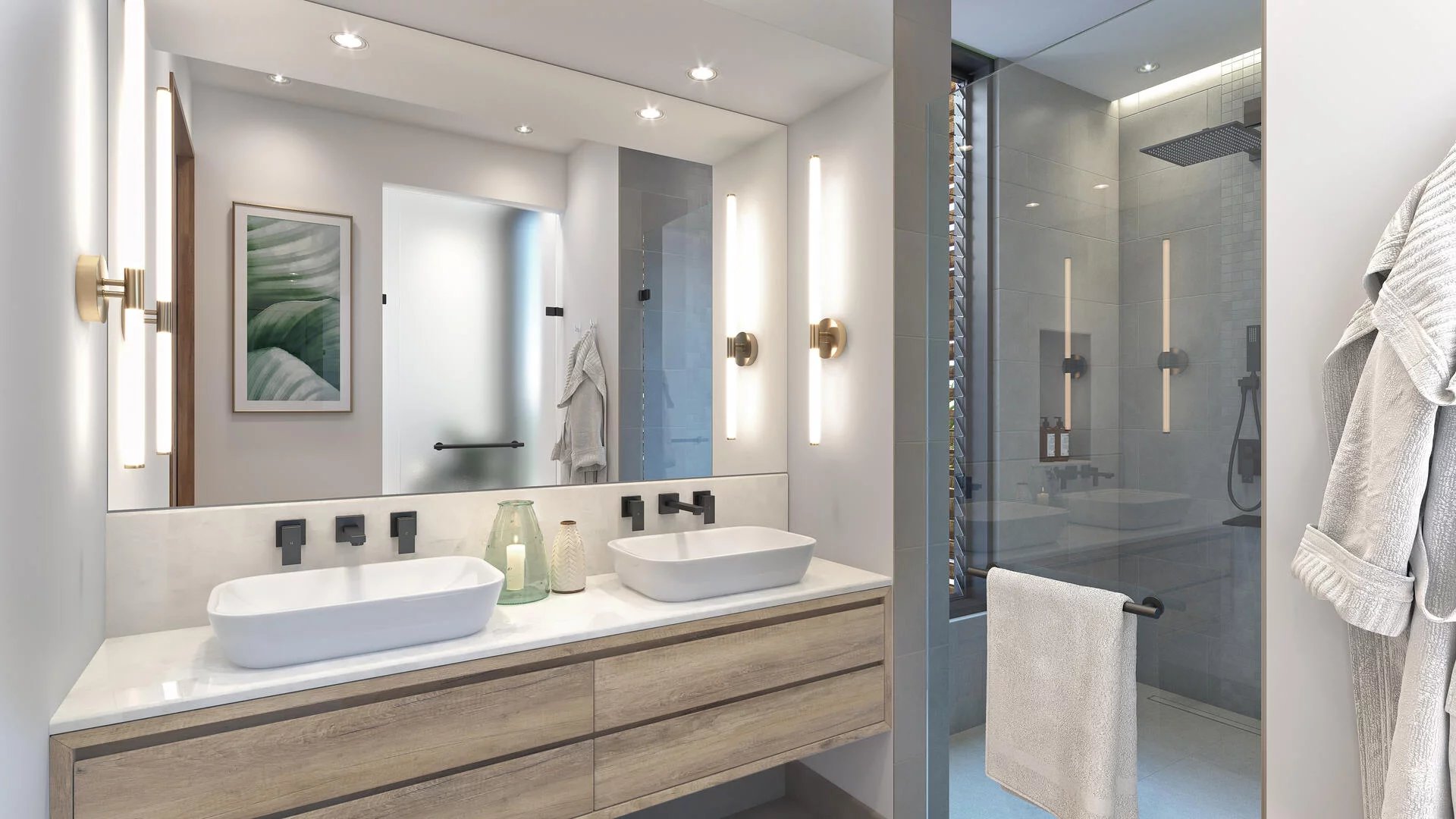 Situated within an exclusive seaside residence, owners benefit from beautifully landscaped tropical gardens, a large communal swimming pool, a sports and wellness area, and direct access to a private beach. Ideally positioned between prestigious coastal resorts, including Beachcomber Resort & Hotels, and close to a renowned 18-hole golf estate, the location combines tranquility with world-class amenities.