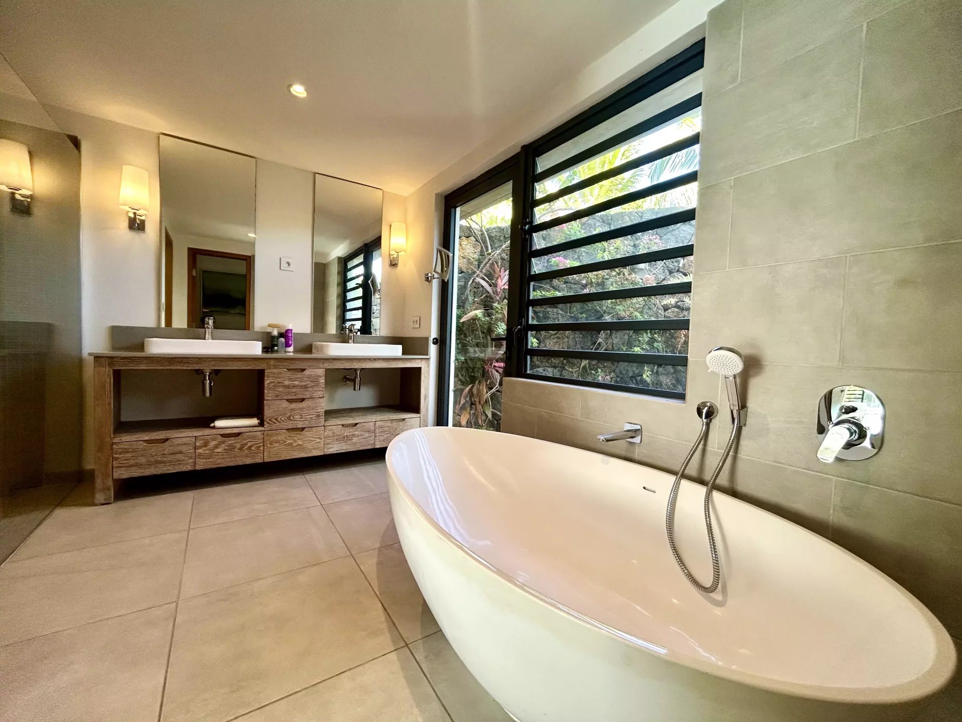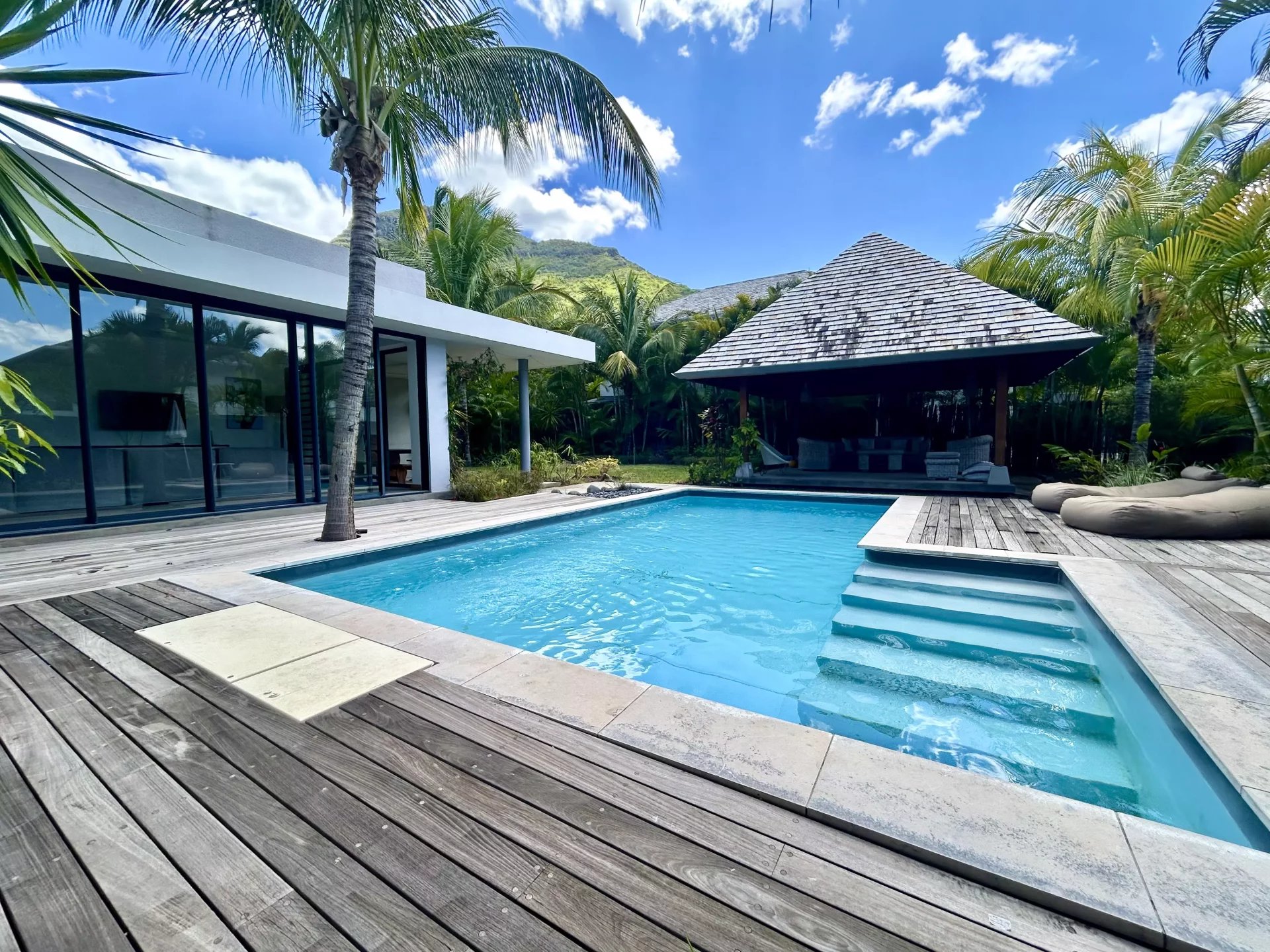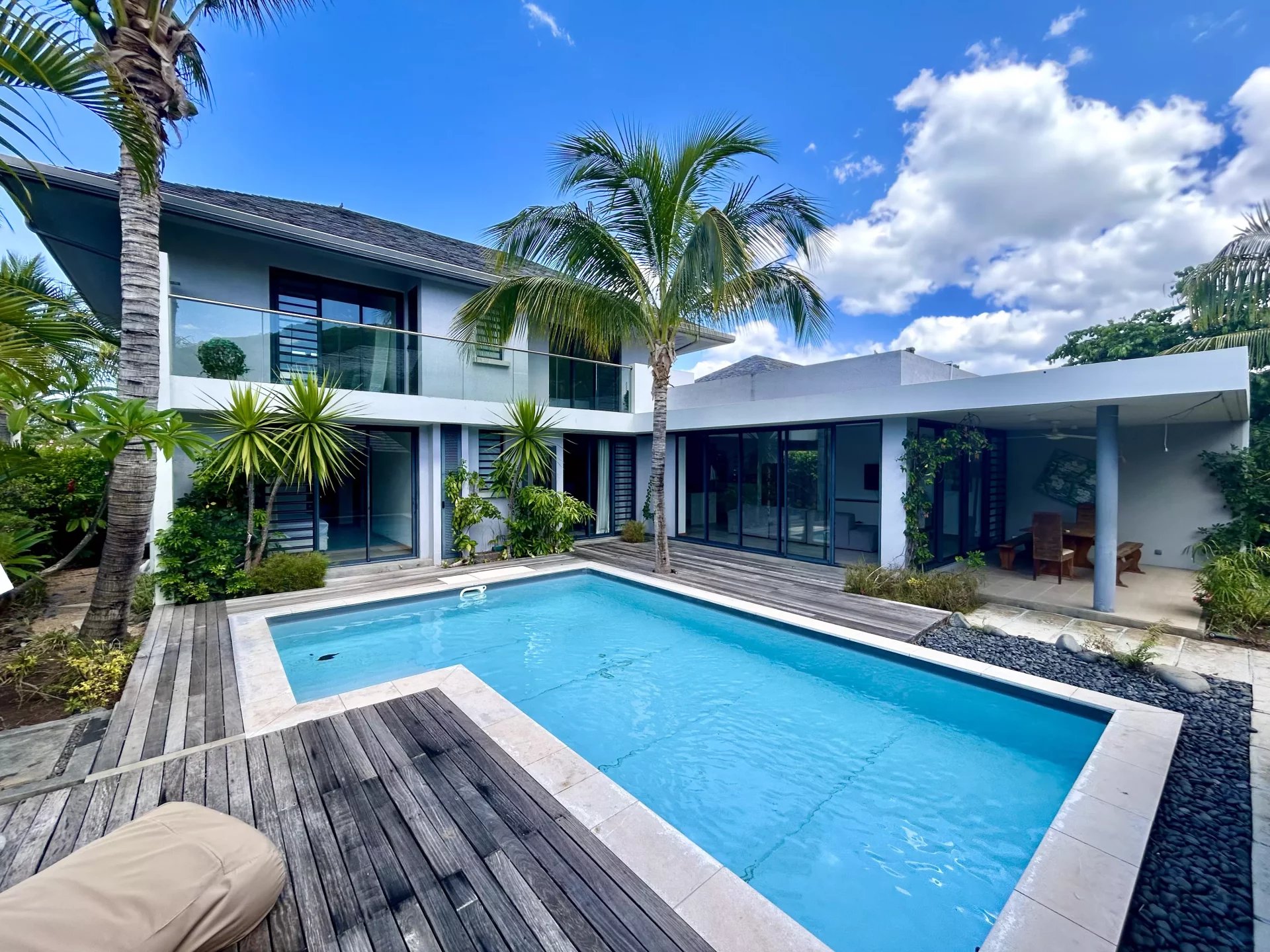 This 366 m² villa is set on a 604 m² plot in the heart of Rivière Noire, just a minute's walk from shopping centres, restaurants, bakeries, and other amenities.