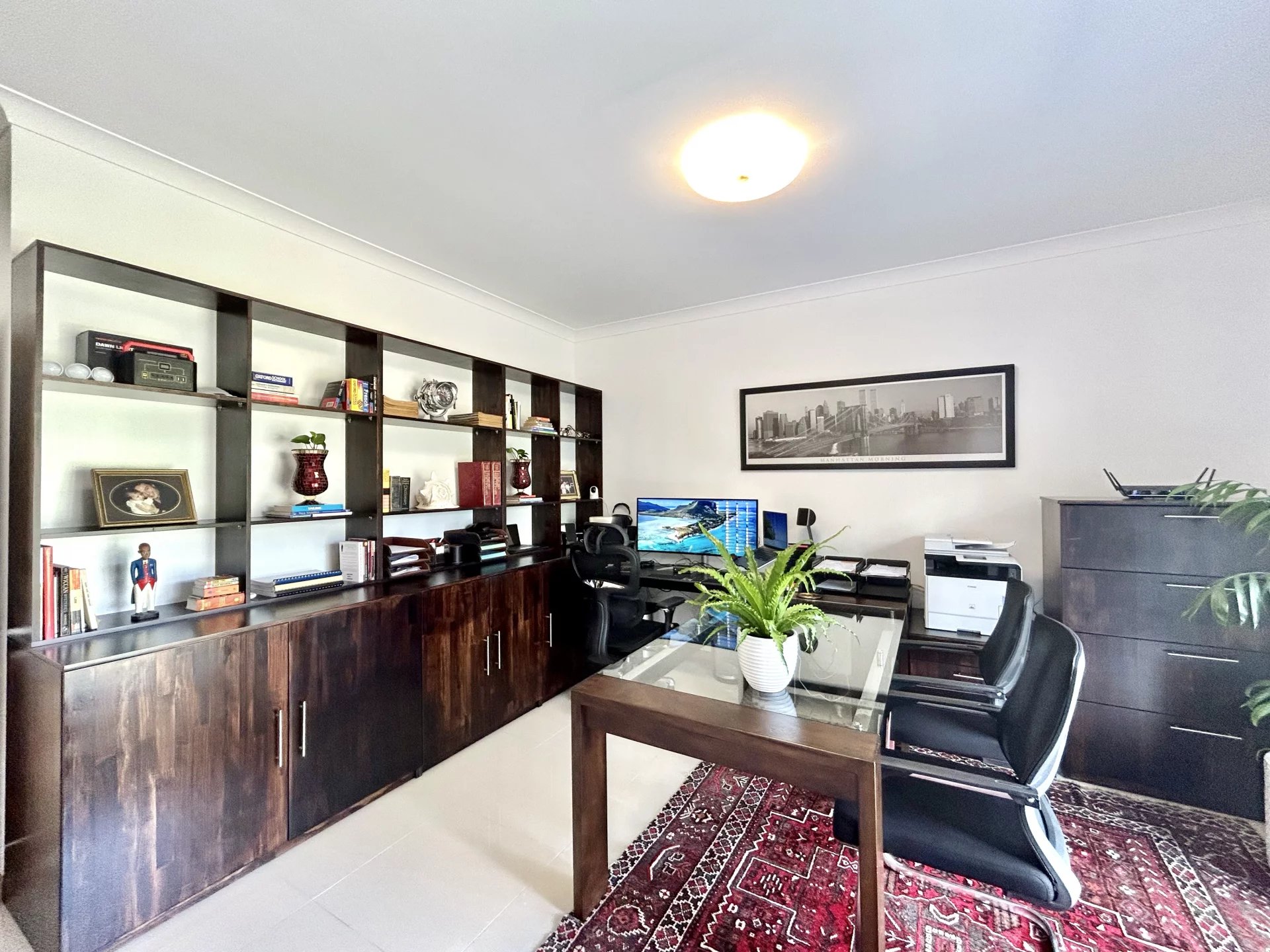 Office, laundry room, fitted kitchen, double garage