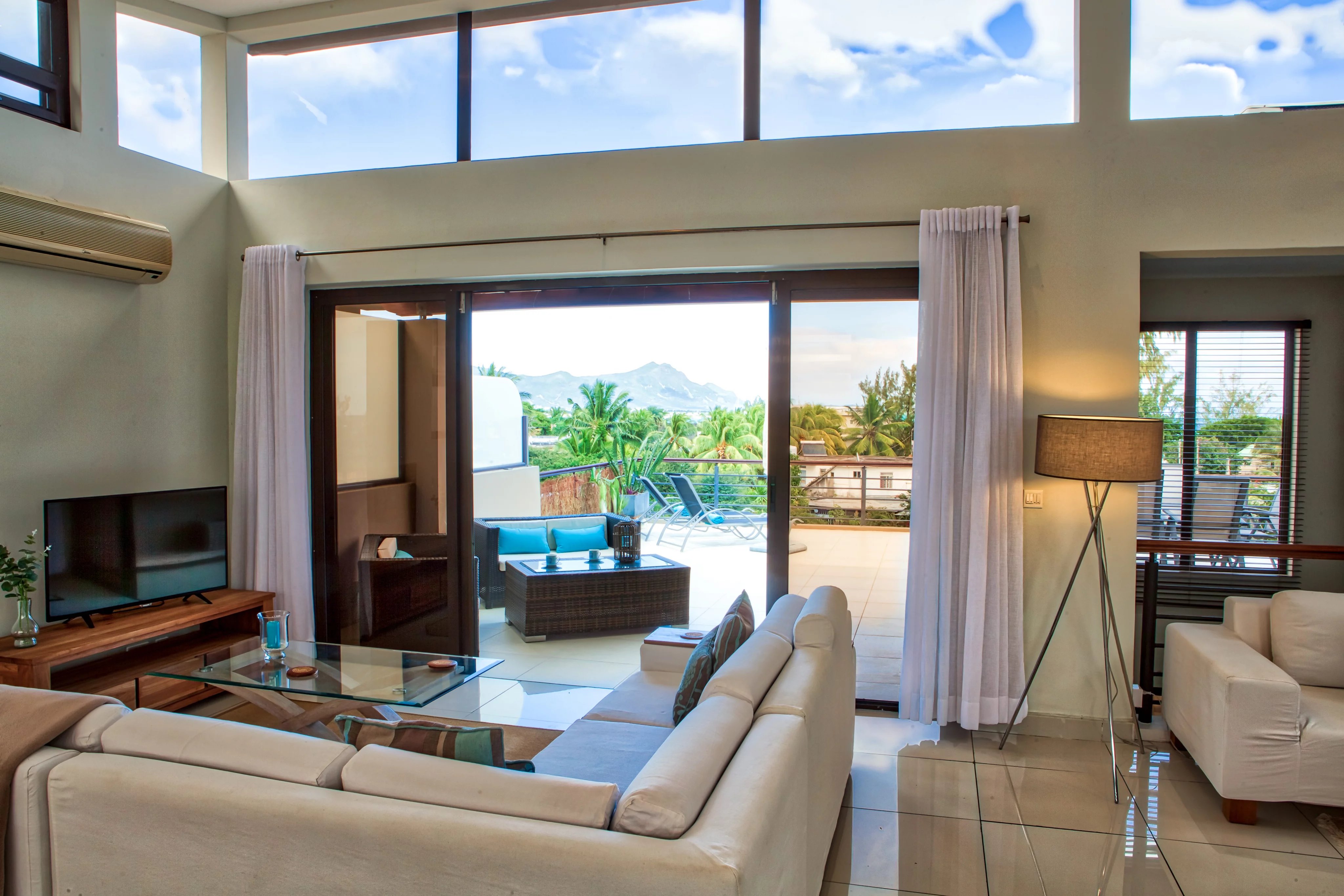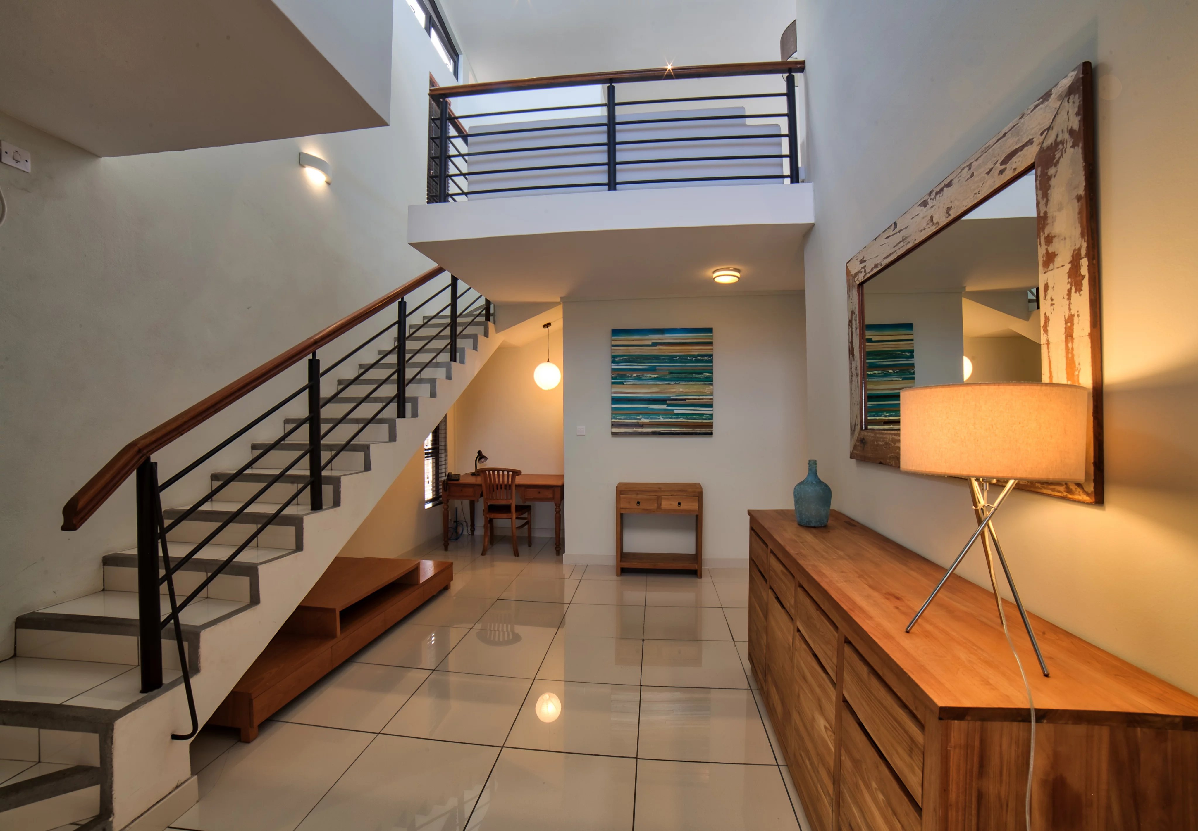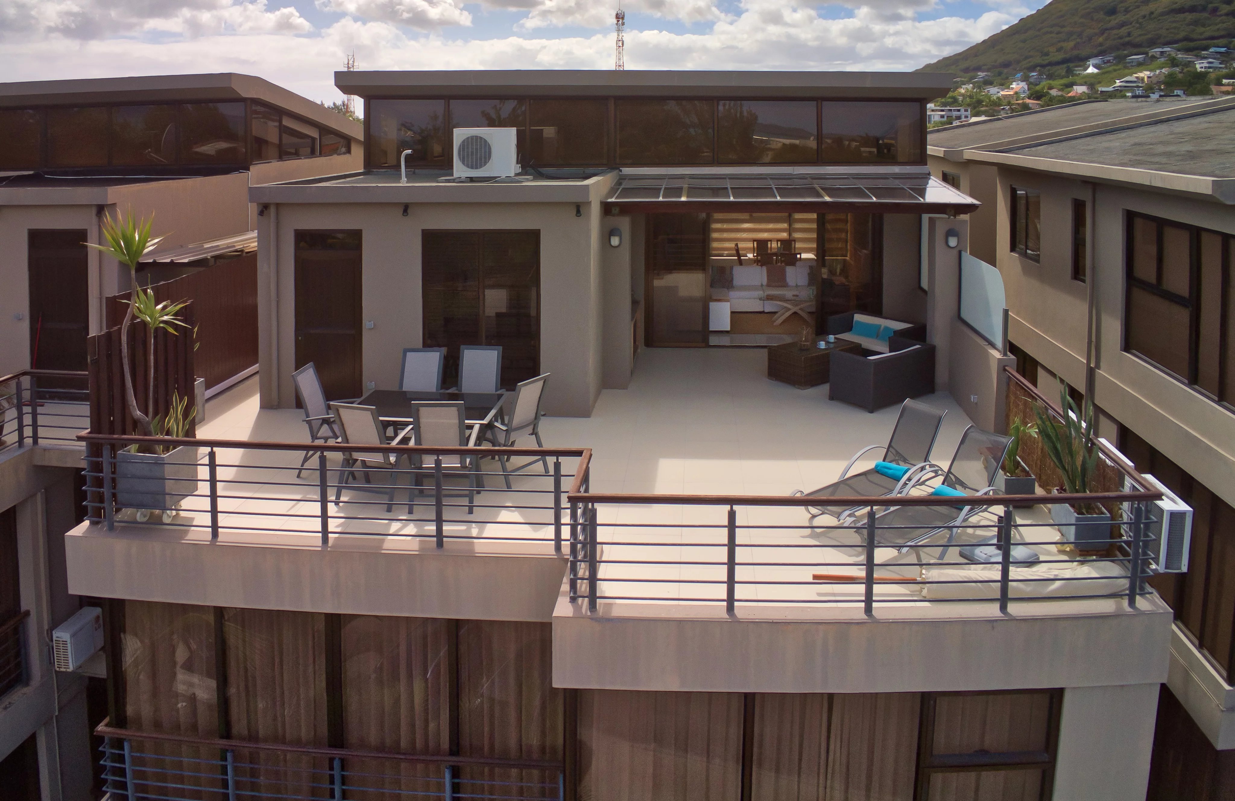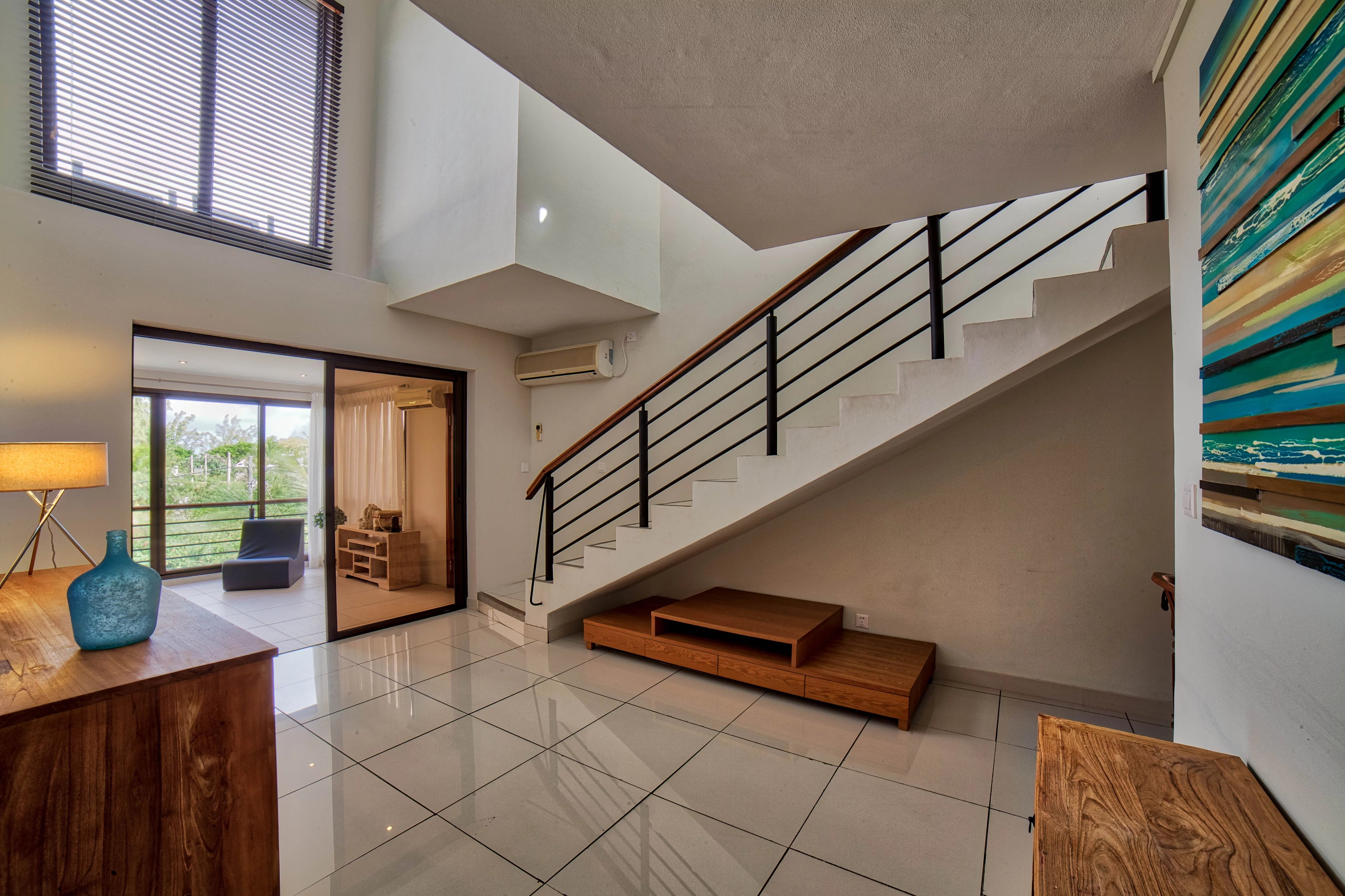 The penthouse, designed in a duplex style, is located on the second floor without a lift in a beautiful residence just a 2-minute walk from La Preneuse beach.