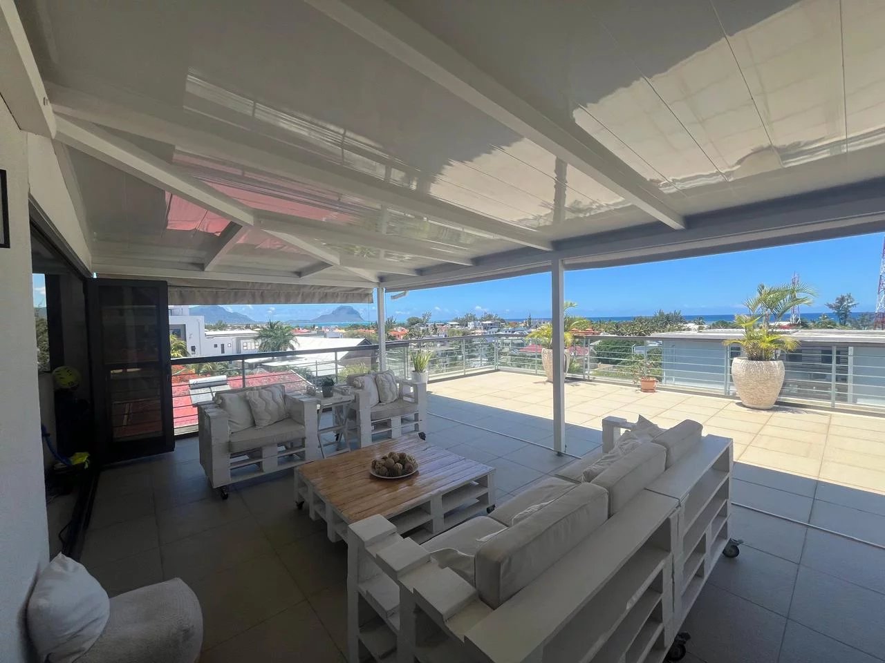 The penthouse is 155 m² and also has a partially covered terrace of 123 m² (50 m² covered) to enjoy outdoor living and beautiful views of the emblematic Morne mountain, the sea and the West and South lagoon.