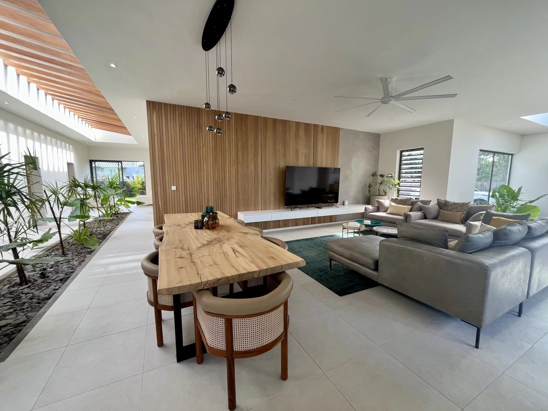 Découvrez cette magnifique villa neuve de 425 m², idéalement située dans le Morcellement Le Hameau à Beau Plan. Un cadre de vie parfait pour les familles, avec un accès direct aux meilleures infrastructures de la région : parc, Mahogany Shopping Promenade, écoles et crèches, centre de padel La Isla et bien plus encore.