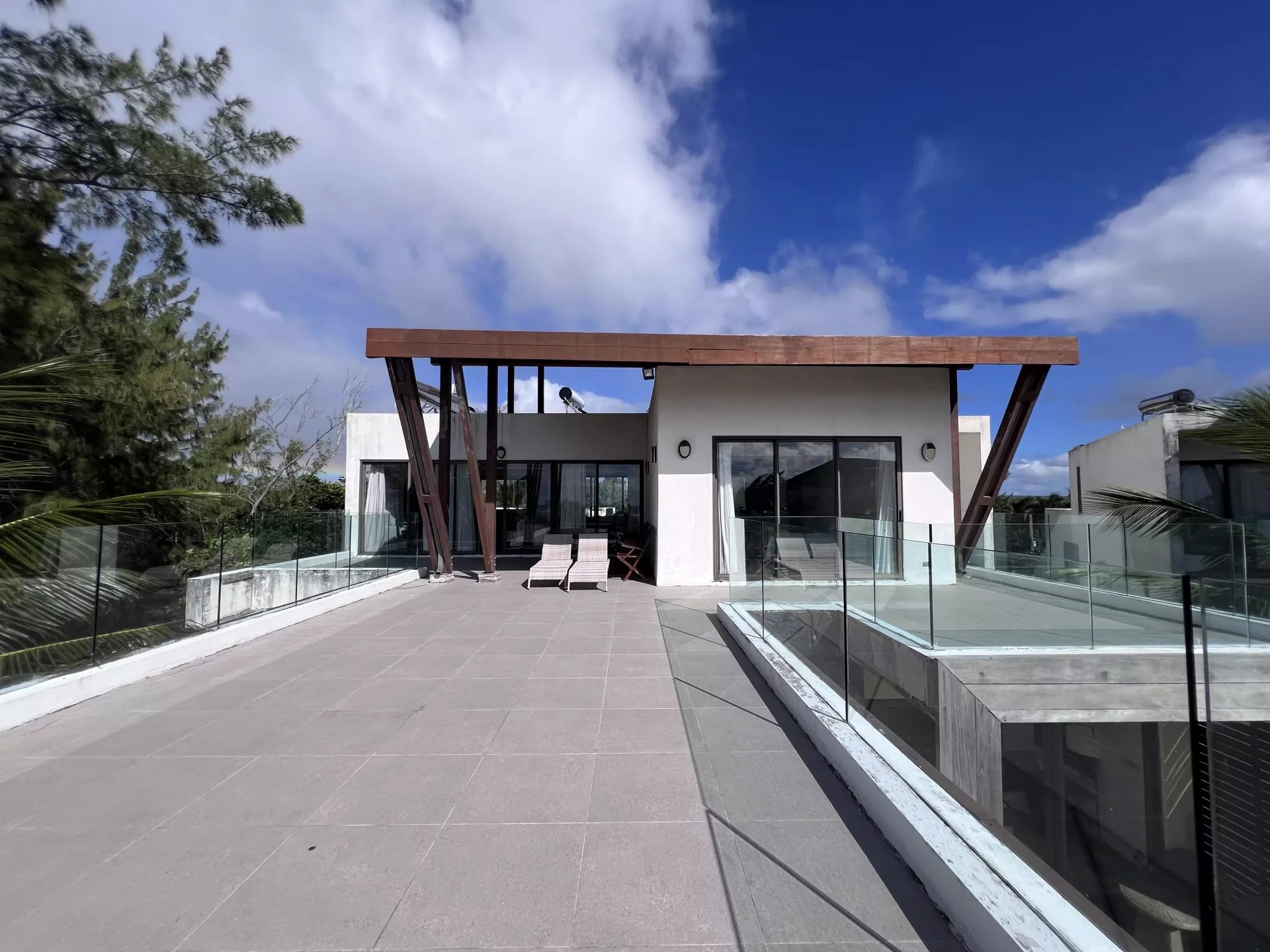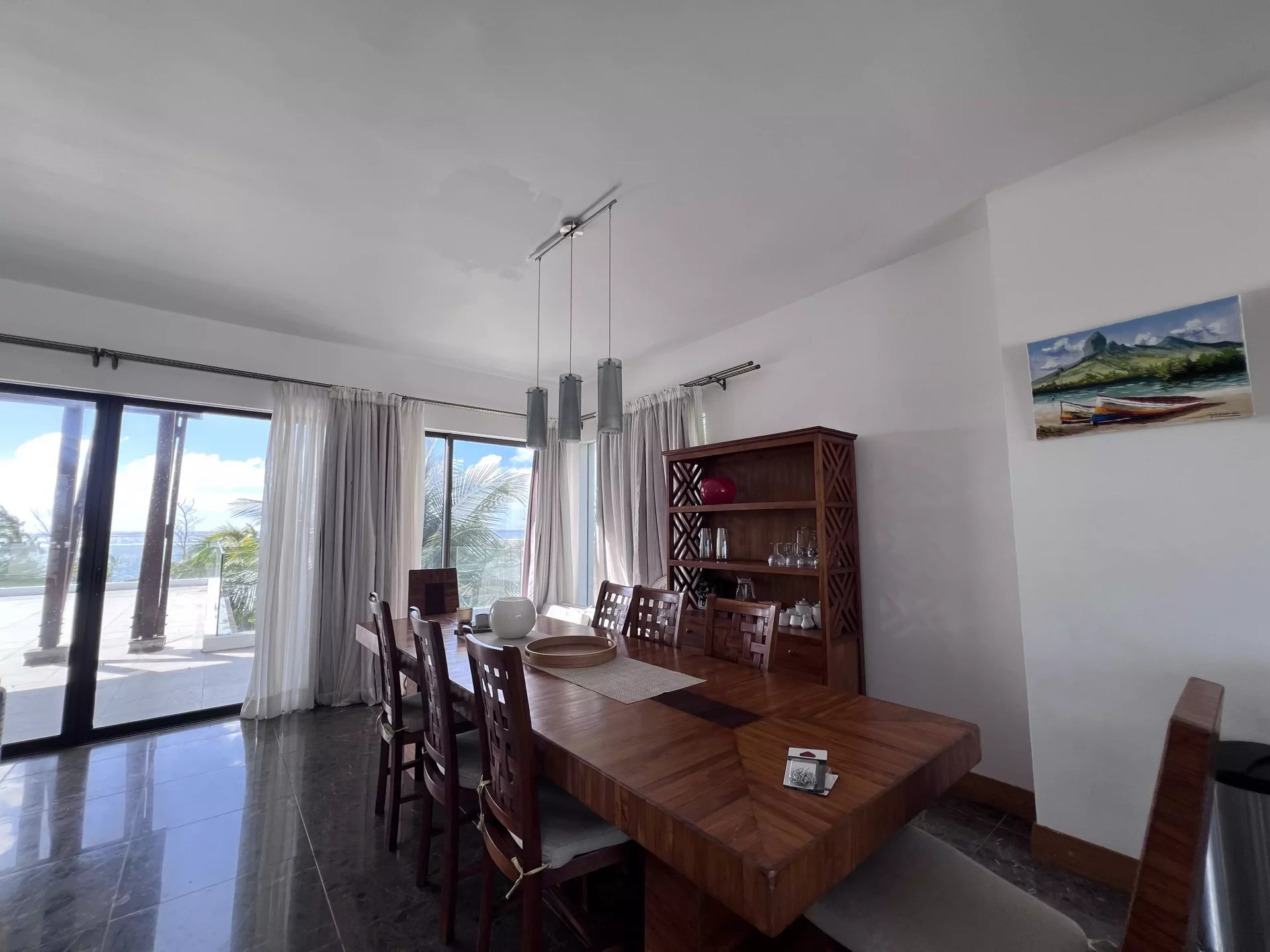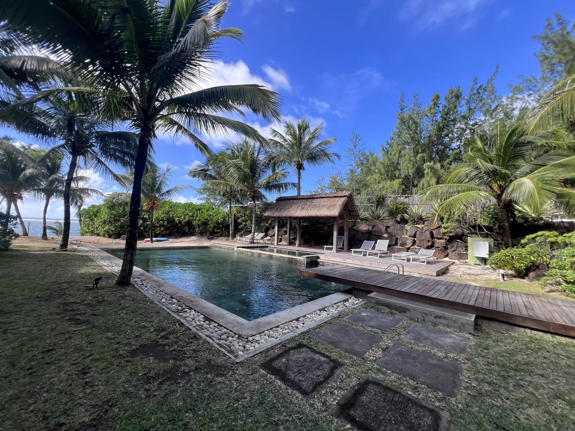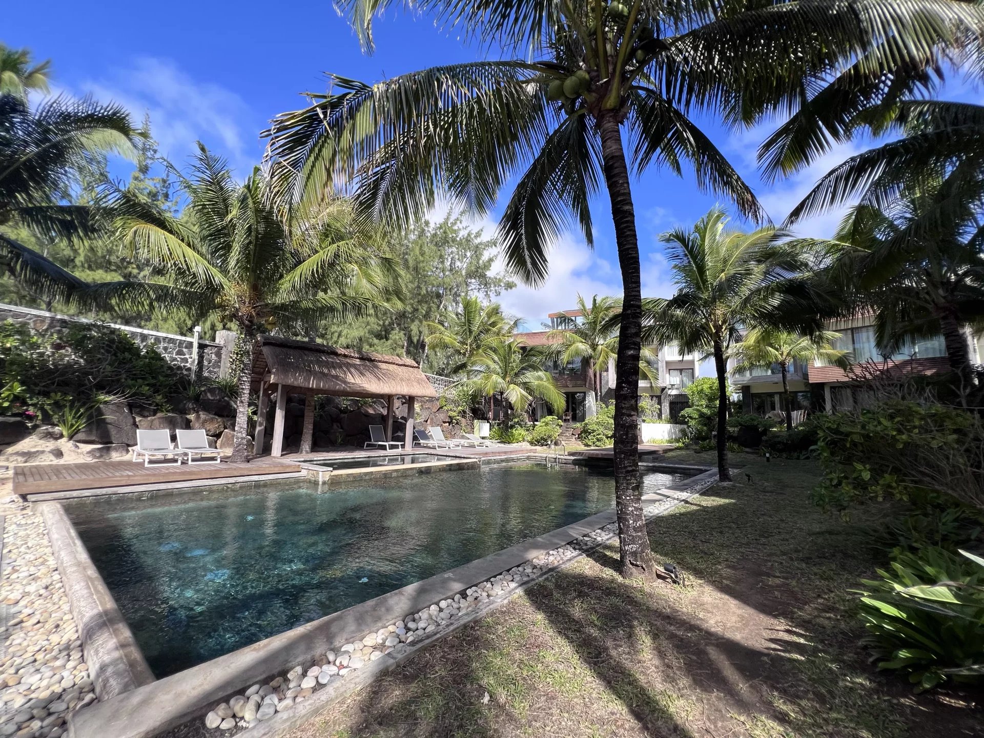 La grande terrasse principale, prolongement naturel du séjour, domine la résidence et vous offre une vue panoramique imprenable sur la piscine, la plage et le lagon turquoise. Un accès direct à la mer complète ce décor paradisiaque.