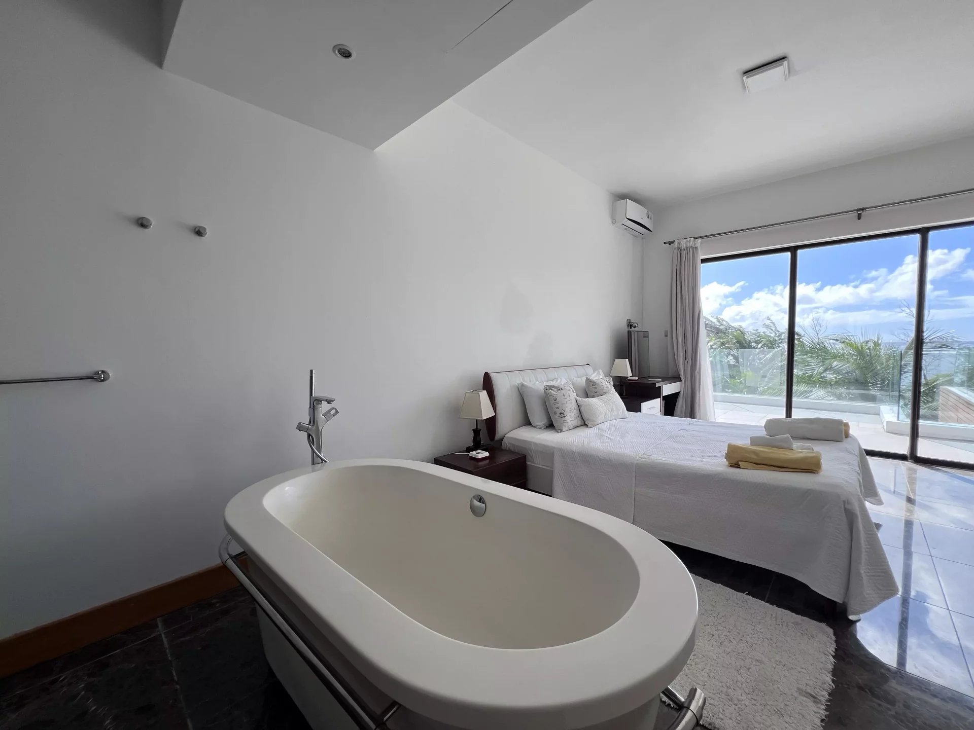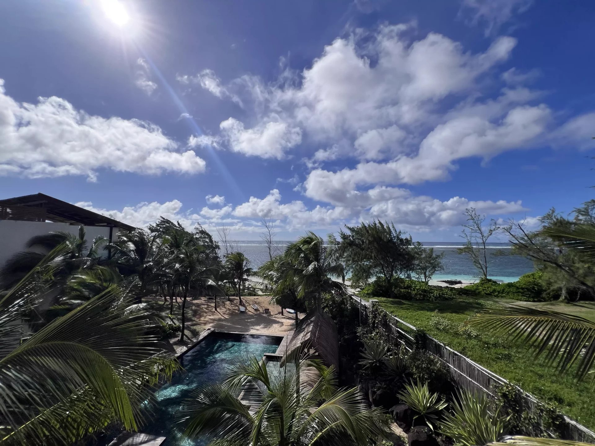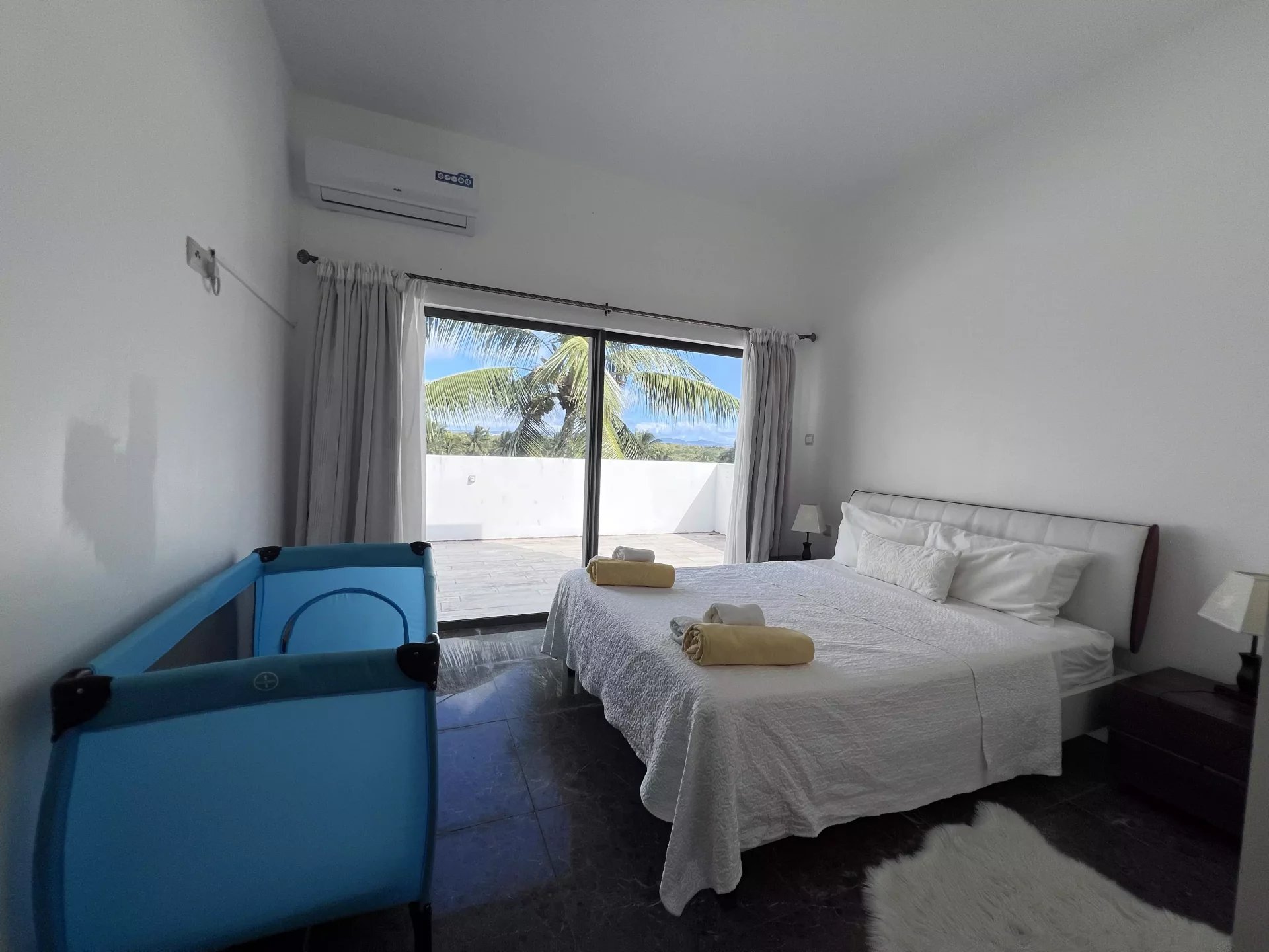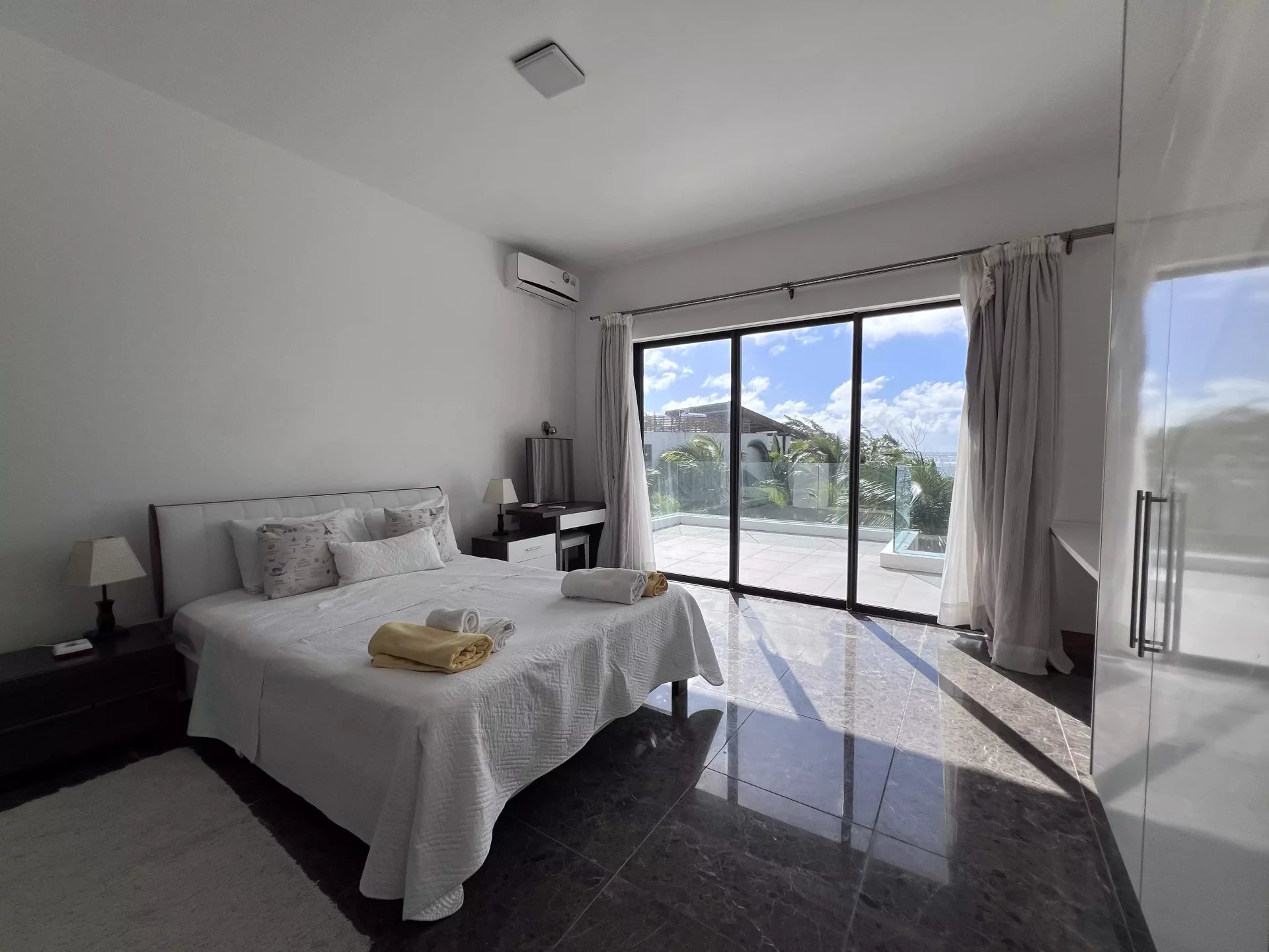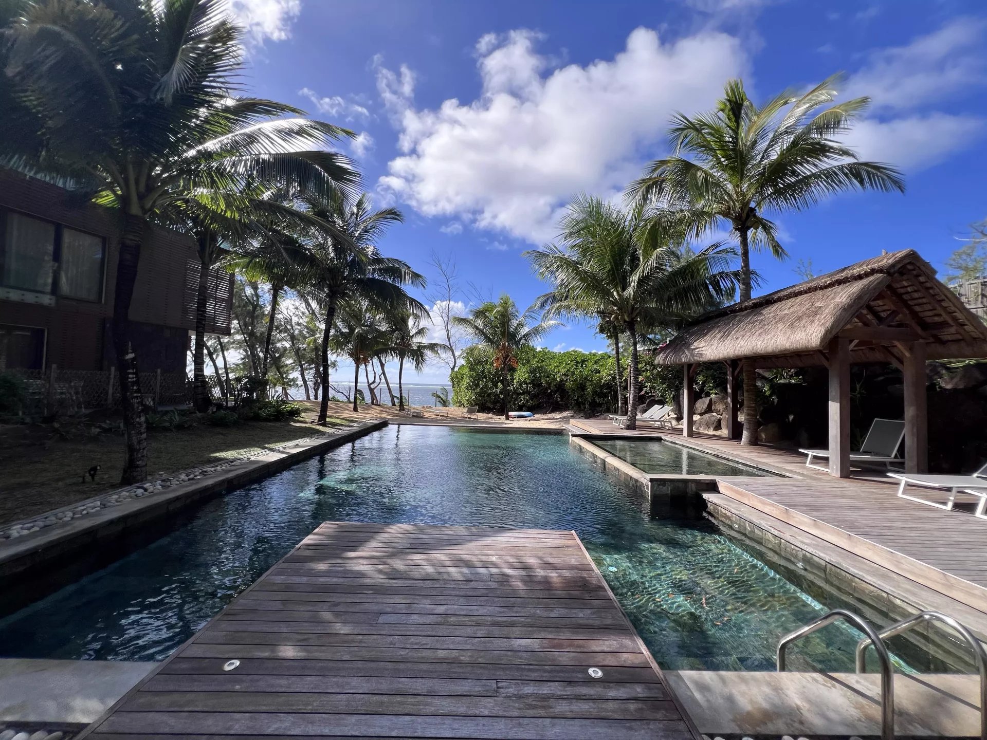 La grande terrasse principale, prolongement naturel du séjour, domine la résidence et vous offre une vue panoramique imprenable sur la piscine, la plage et le lagon turquoise. Un accès direct à la mer complète ce décor paradisiaque.