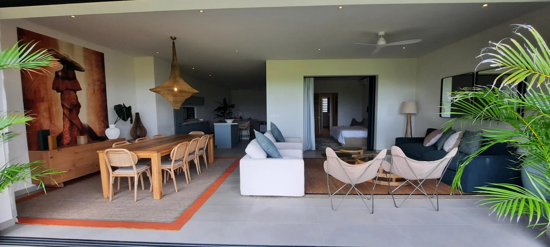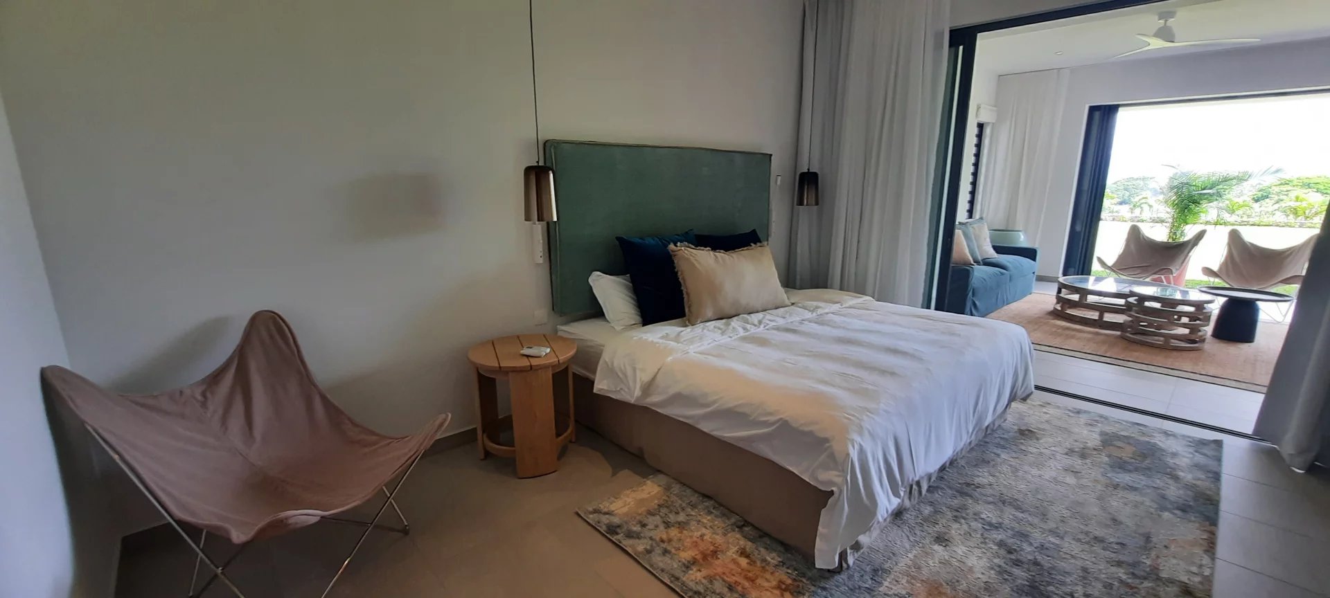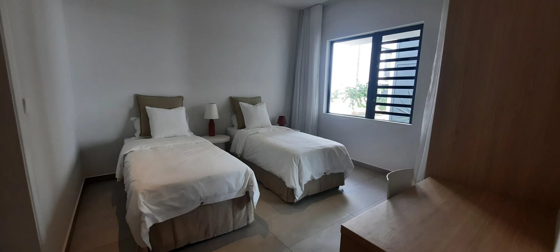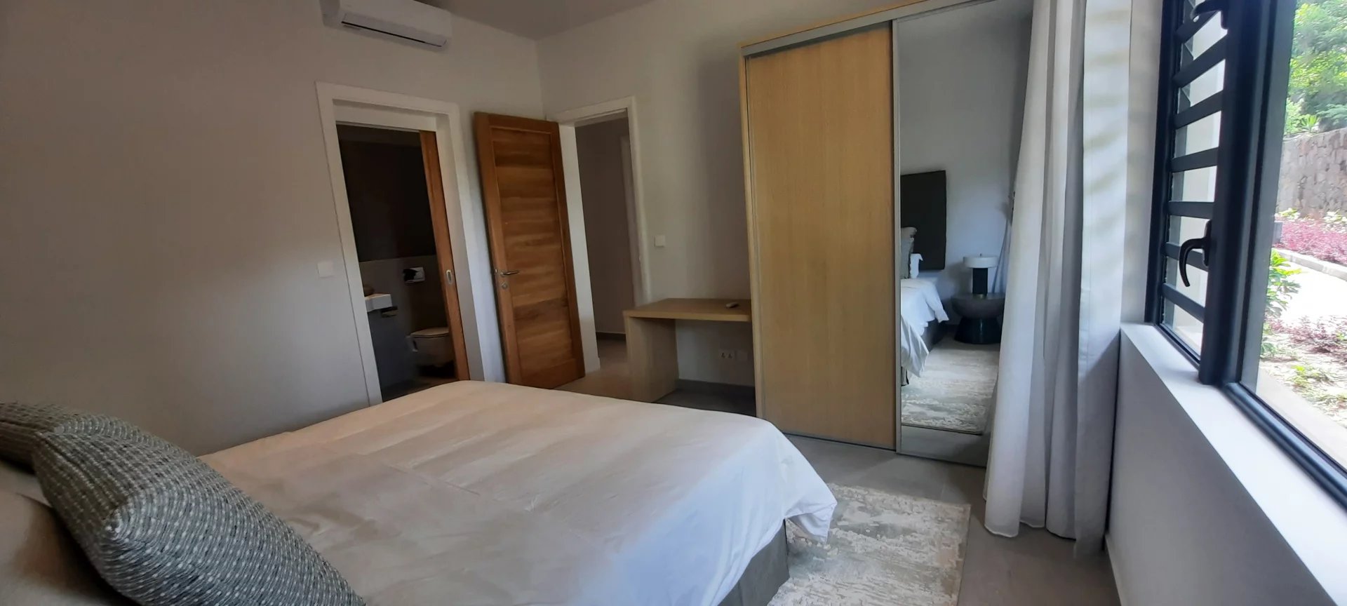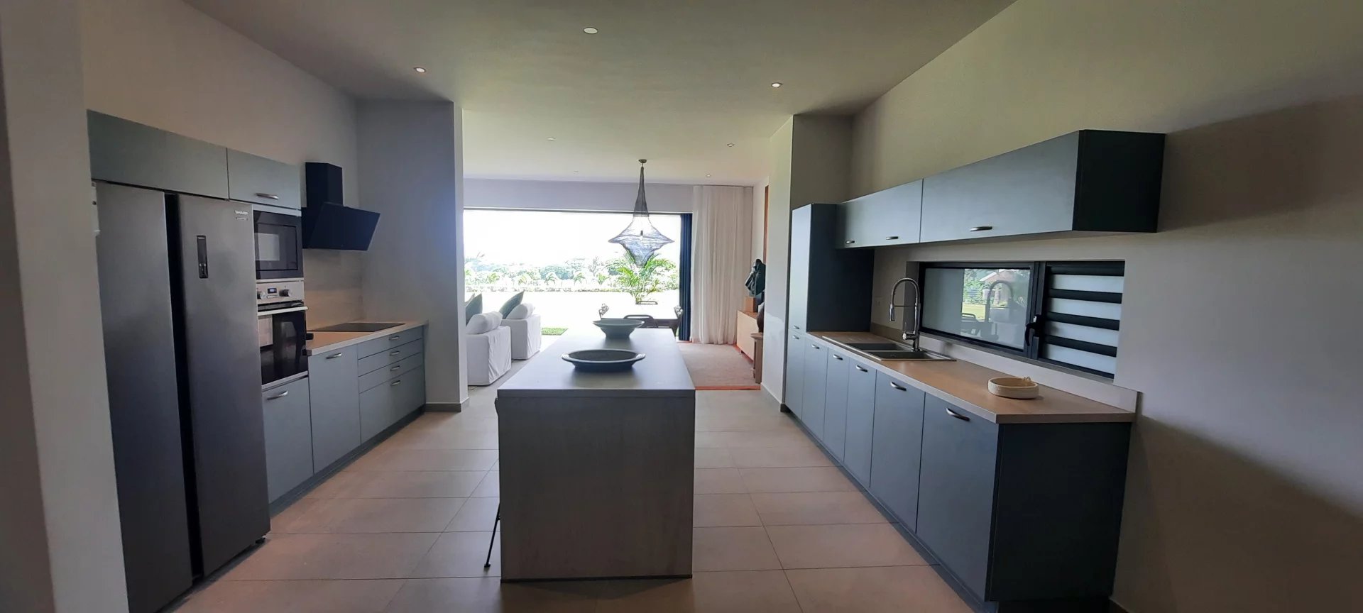 Au sein d’un complexe sécurisé et très prisé, avec une grande piscine commune et un kiosque de réception, cet appartement en rez-de-jardin propose un espace de vie lumineux et confortable. Il se compose d’un salon/salle à manger avec cuisine ouverte, prolongé par un salon télé.