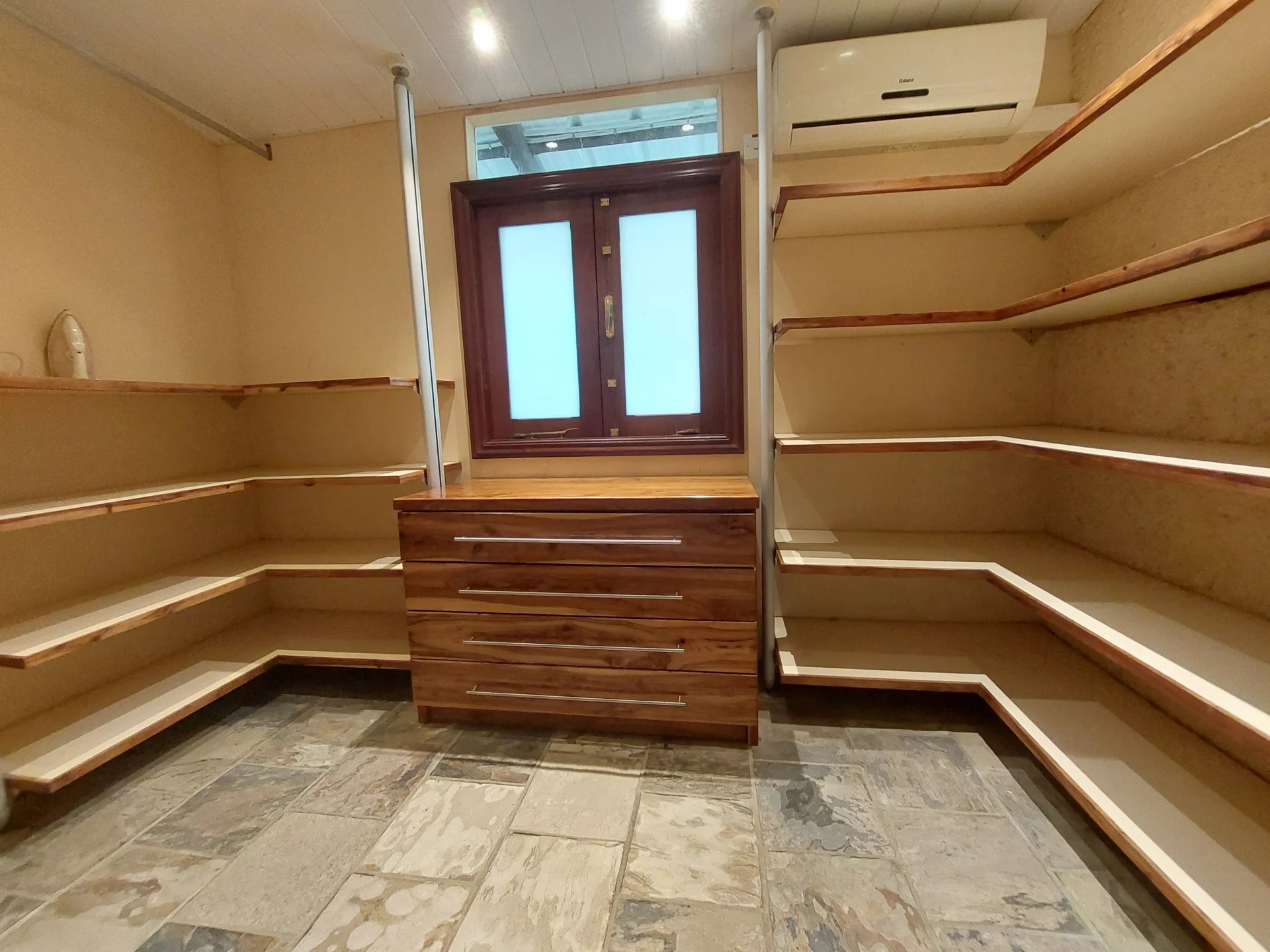 Avec ses 3 chambres climatisées, cette maison dispose de 2 salles de bain modernes, d'un dressing spacieux, et d'une cuisine américaine entièrement équipée avec un cellier pour plus de rangement. Un débarras extérieur vient compléter l'espace pratique de cette maison.