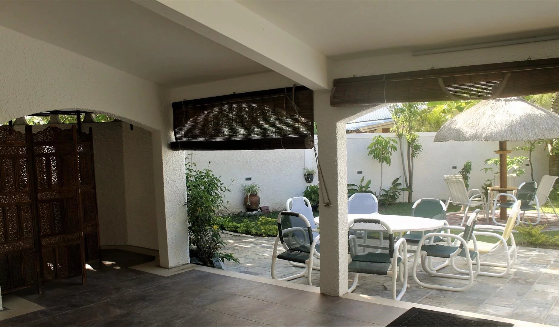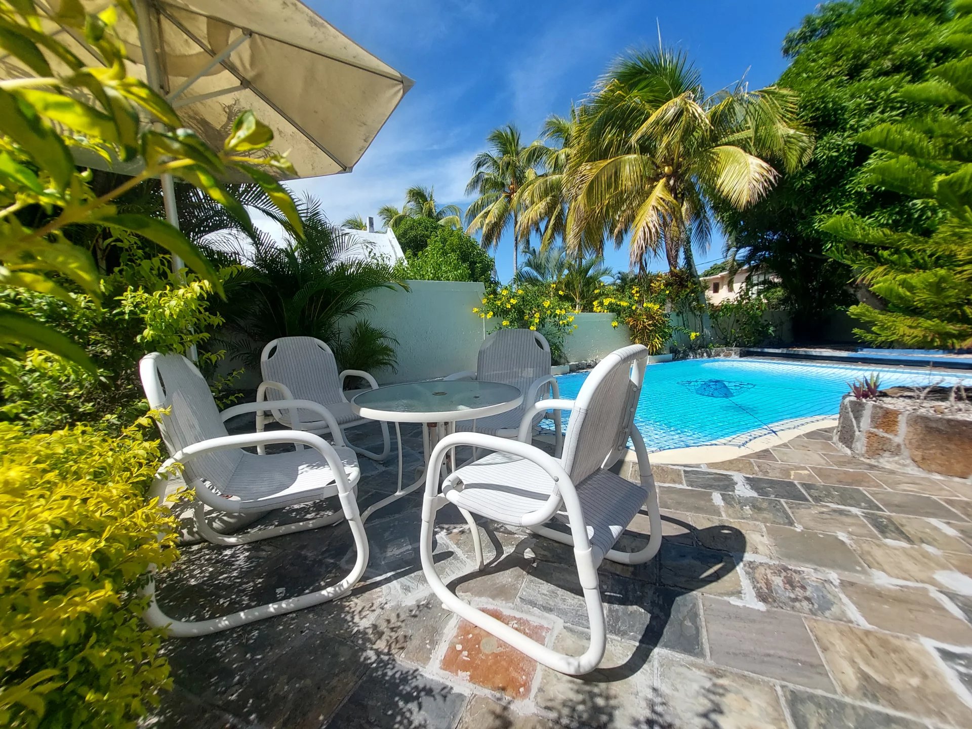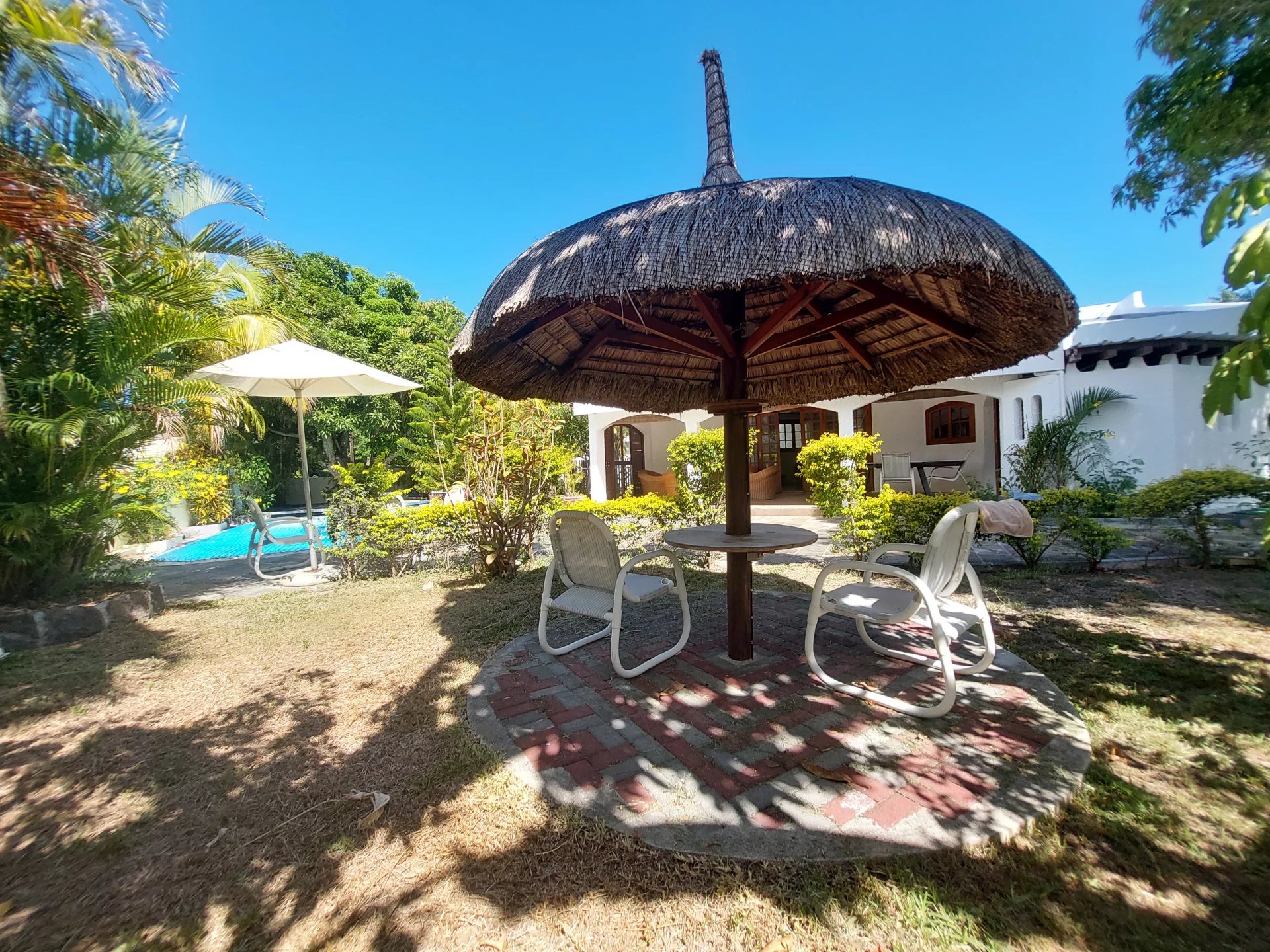 L'espace de vie s'ouvre sur une grande terrasse, offrant une vue magnifique sur un joli jardin clôturé et une piscine privée. Le jardin est sécurisé avec un portail automatique, assurant confort et tranquillité.