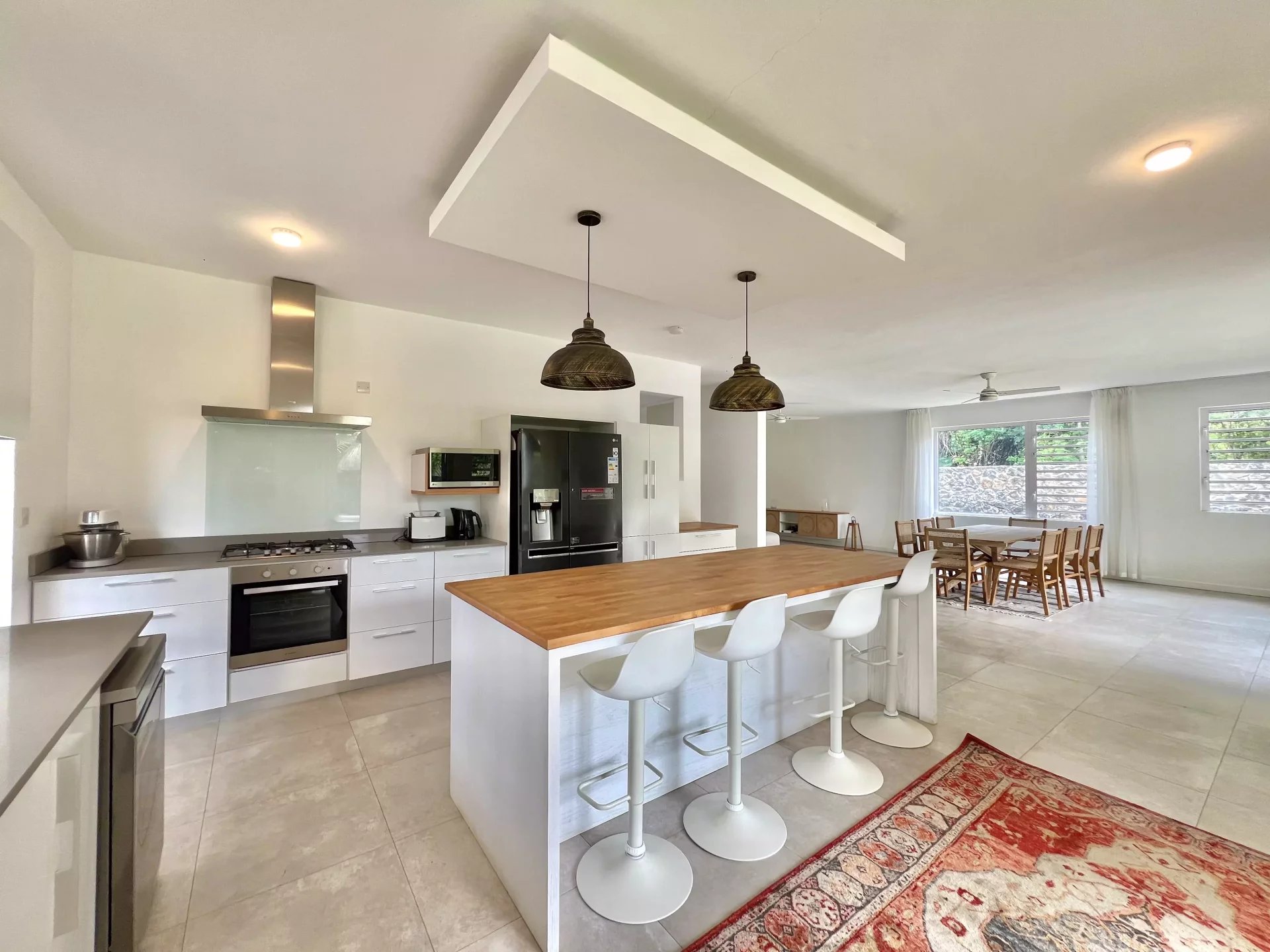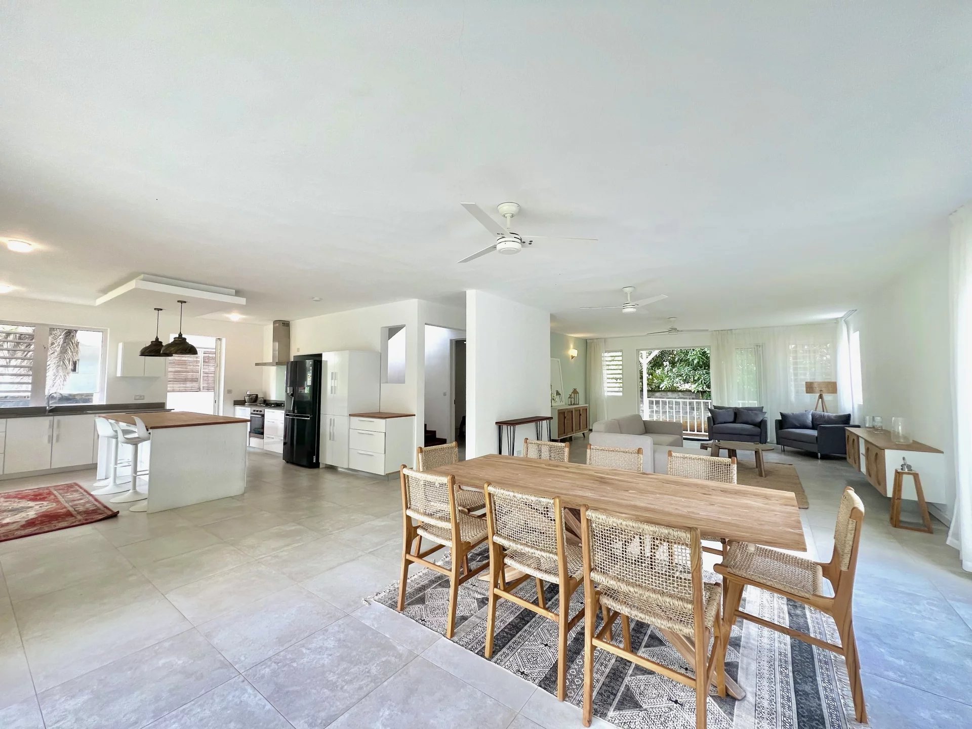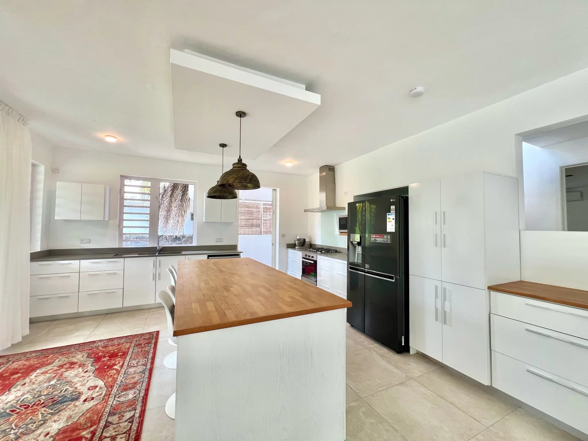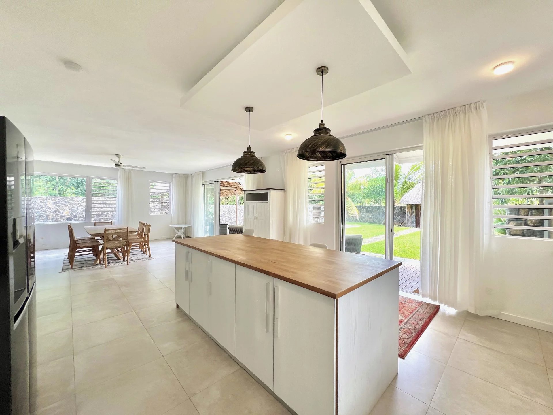 Découvrez cette magnifique maison de 250 m², édifiée sur un vaste terrain de 50 perches, idéalement implantée sur la côte, au calme absolu, sans vis-à-vis et avec un accès à la mer à pied. La maison ainsi que les équipements et les meubles sont neufs. Elle offre un vaste jardin arboré et une grande piscine. L'espace de vie se compose d'un très grand salon/salle à manger et d'une cuisine ouverte entièrement équipée, idéale pour partager des moments conviviaux avec votre famille et vos amis. Côté nuit, la maison dispose de trois chambres en suite, chacune avec sa propre salle de bain.