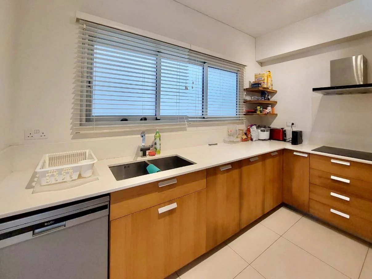 Cet appartement de 130 m² comprend trois chambres avec salles de bains, ce qui garantit confort et intimité pour chacun. La cuisine s'intègre parfaitement au salon, créant un espace harmonieux pour la détente et le divertissement.