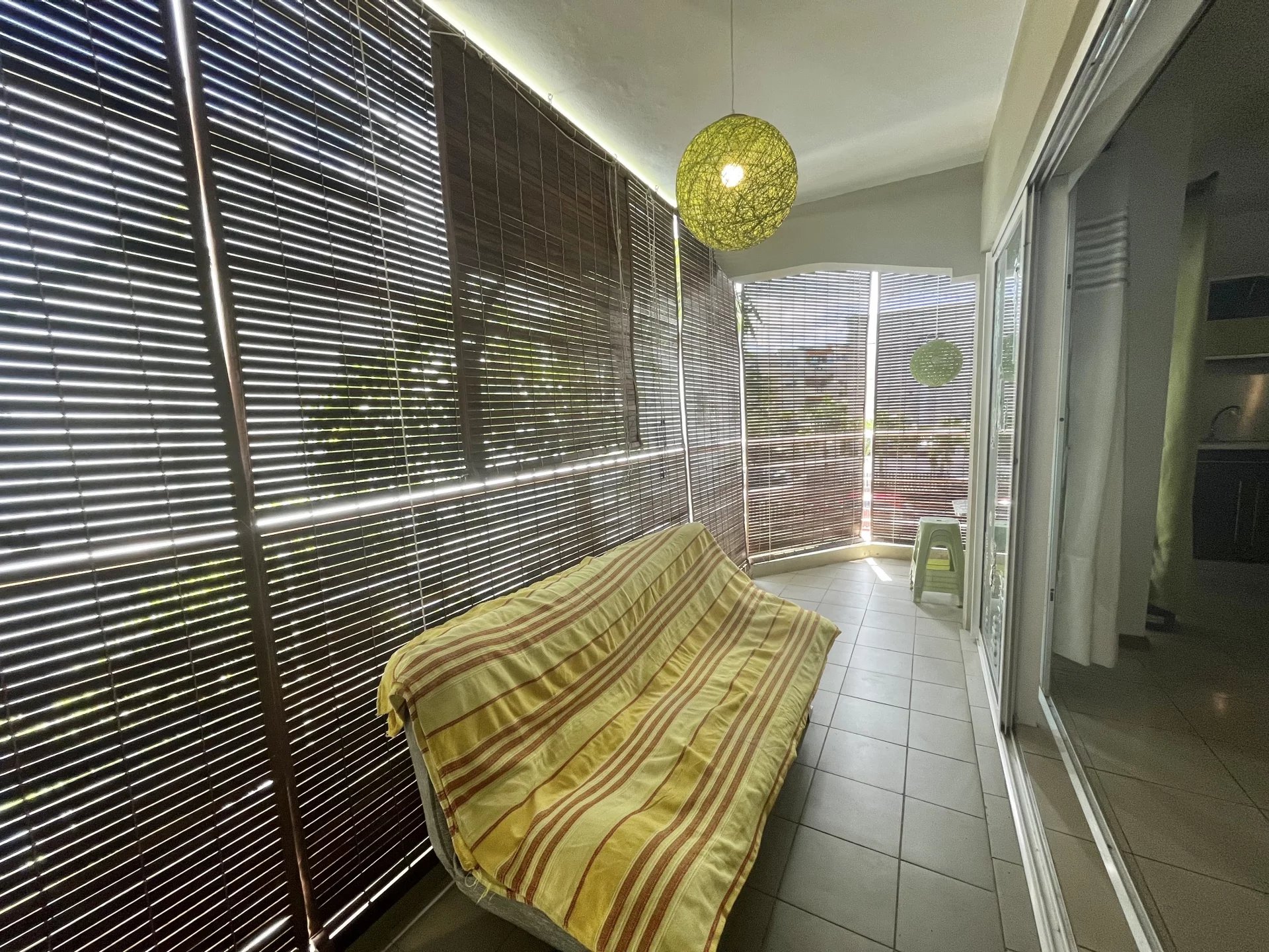 L'appartement se compose de trois chambres lumineuses, idéales pour accueillir une famille ou recevoir des invités. La cuisine moderne, entièrement équipée, s'ouvre sur un vaste séjour convivial, prolongé par un balcon offrant une belle vue dégagée sur la piscine de la résidence. Ce prolongement extérieur est parfait pour profiter des douces soirées tropicales ou prendre un petit déjeuner ensoleillé.