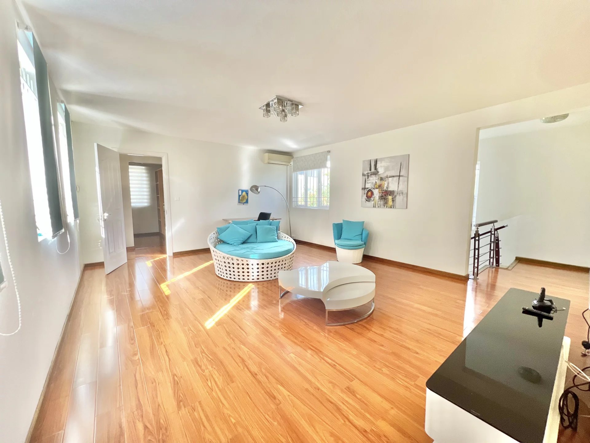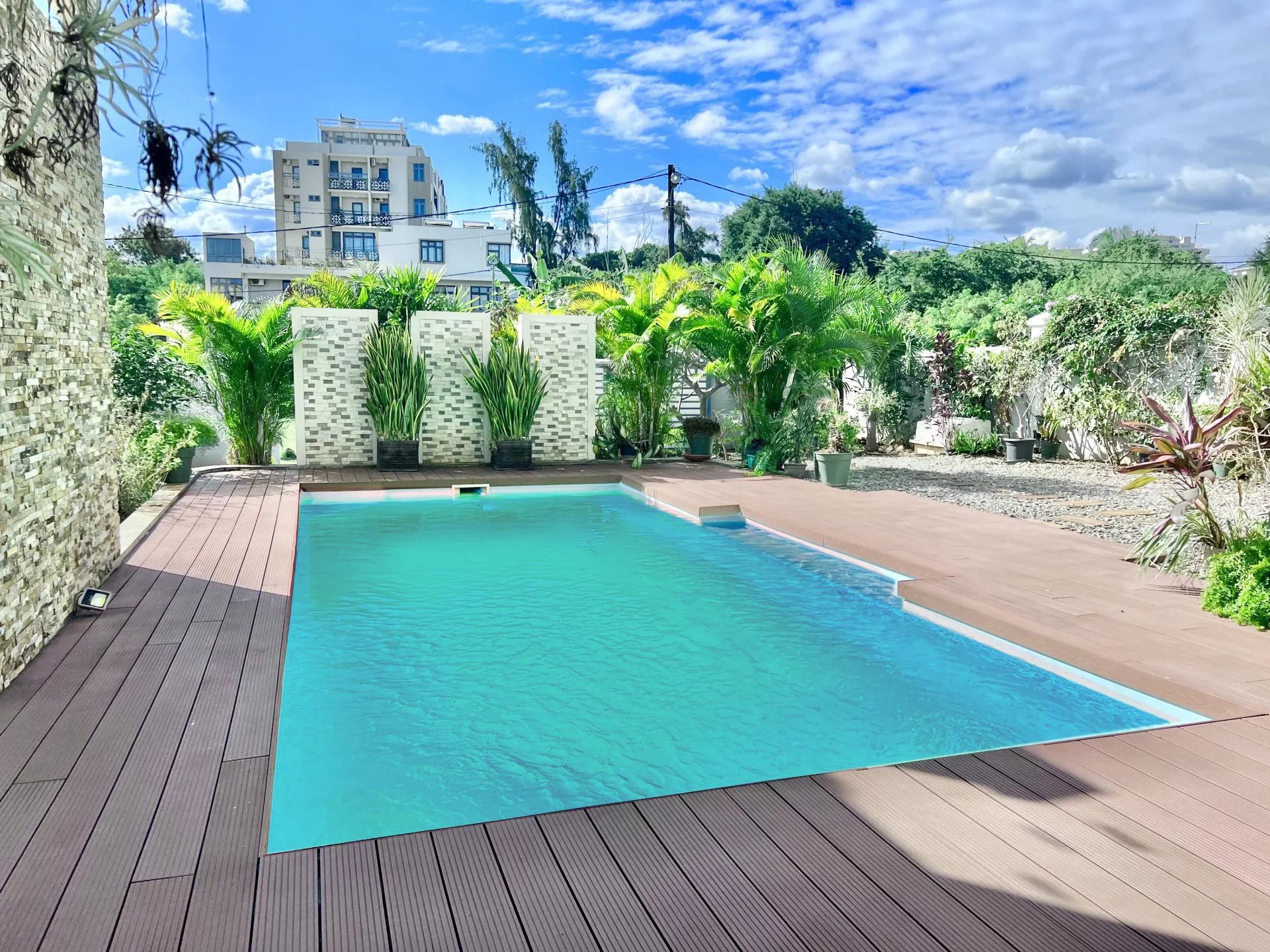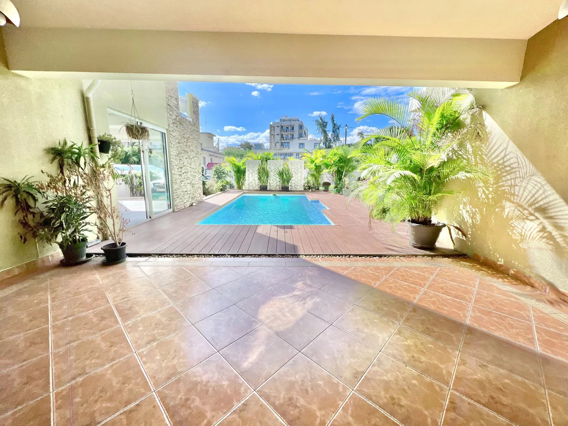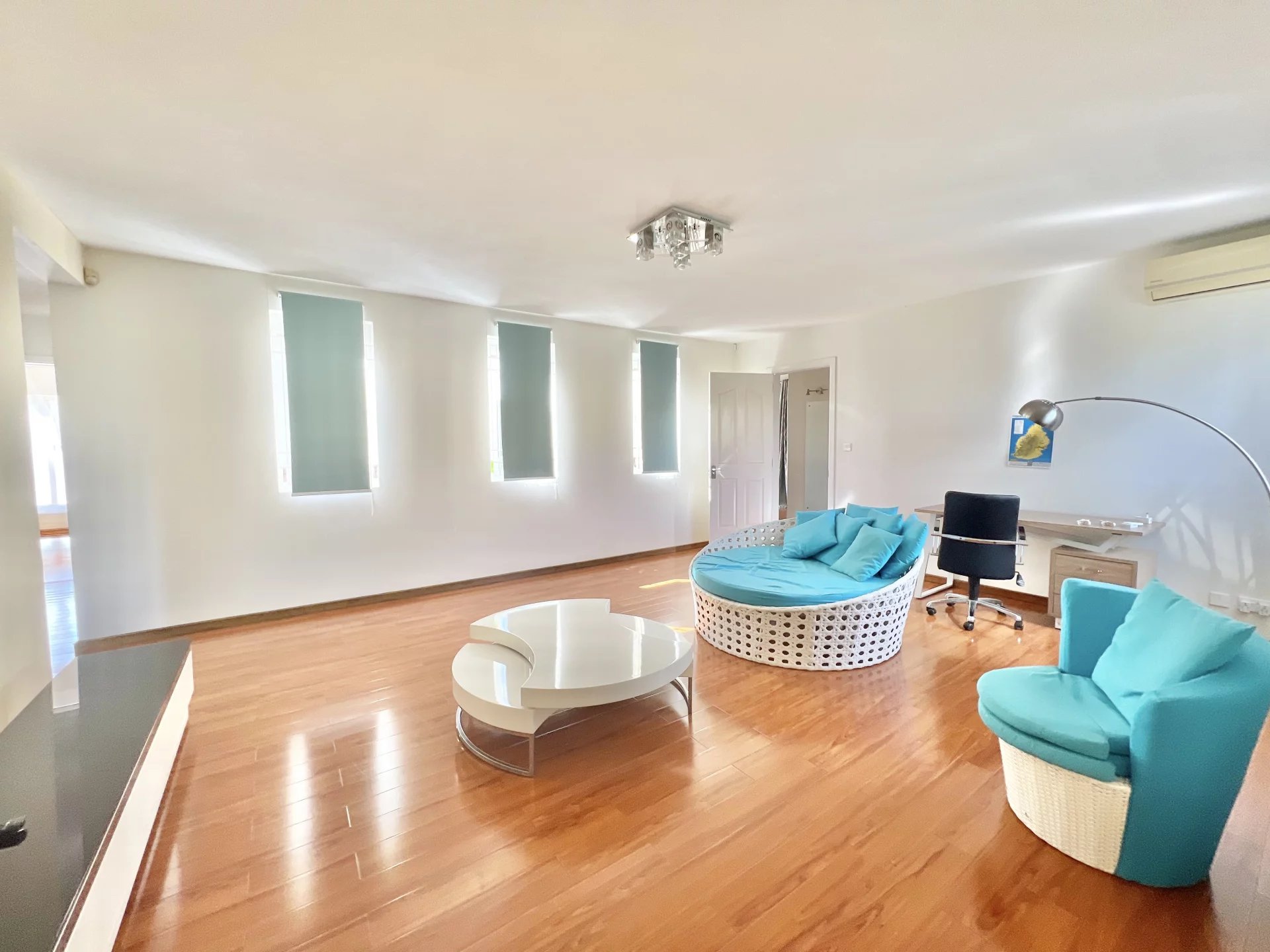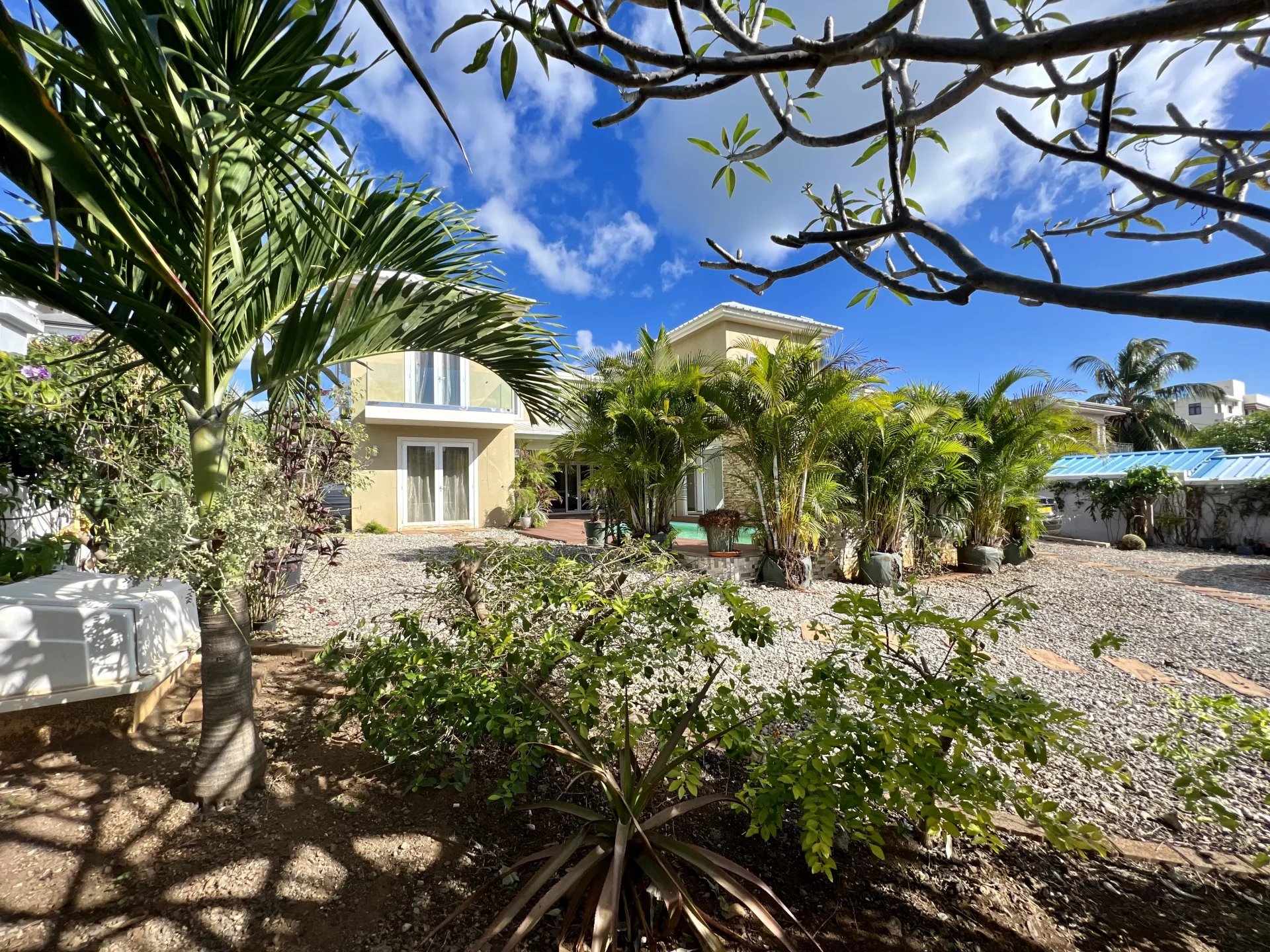 Venez découvrir cette maison moderne de 300 m² localisée dans un endroit calme de Flic en Flac. Le rez-de-chaussée s'organise autour d’un salon et d'une salle à manger avec cuisine ouverte et équipée ainsi que d’une chambre, d'une salle de bain pour les invités, d'une buanderie et d'une belle veranda. L’étage se compose de 3 chambres à coucher dont une en-suite avec un dressing et un balcon pour admirer la vue sur le jardin. Ce dernier est arboré et dispose d’une piscine, d’un store, d’un garage et de plusieurs places de parking sécurisées. Ce bien est idéal pour une famille ou pour recevoir des invités en toute intimité.
