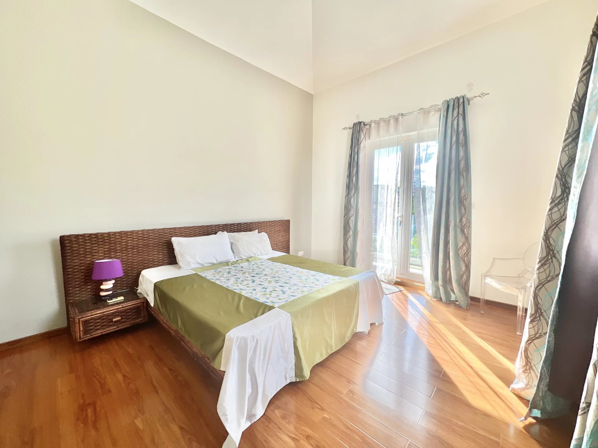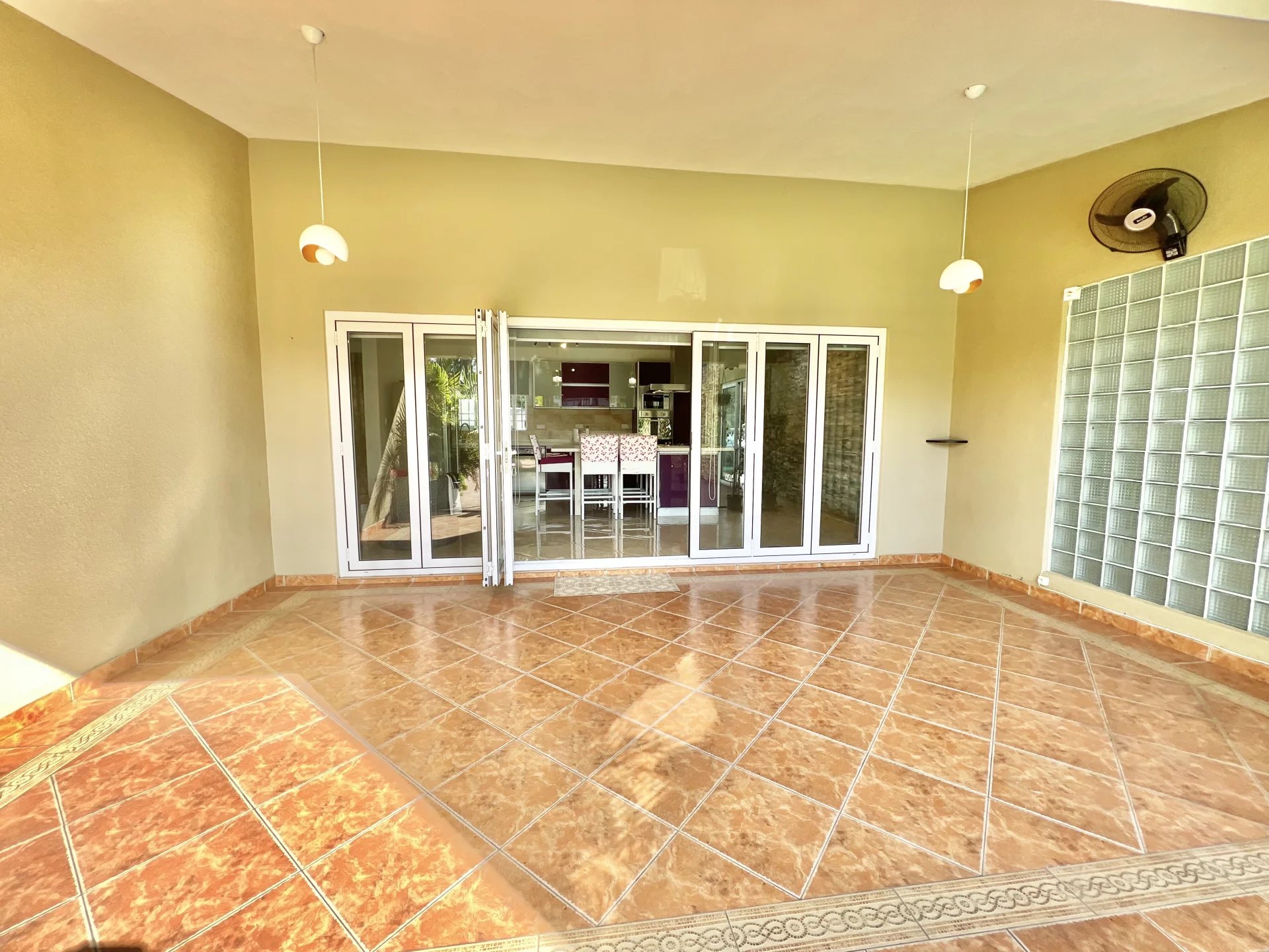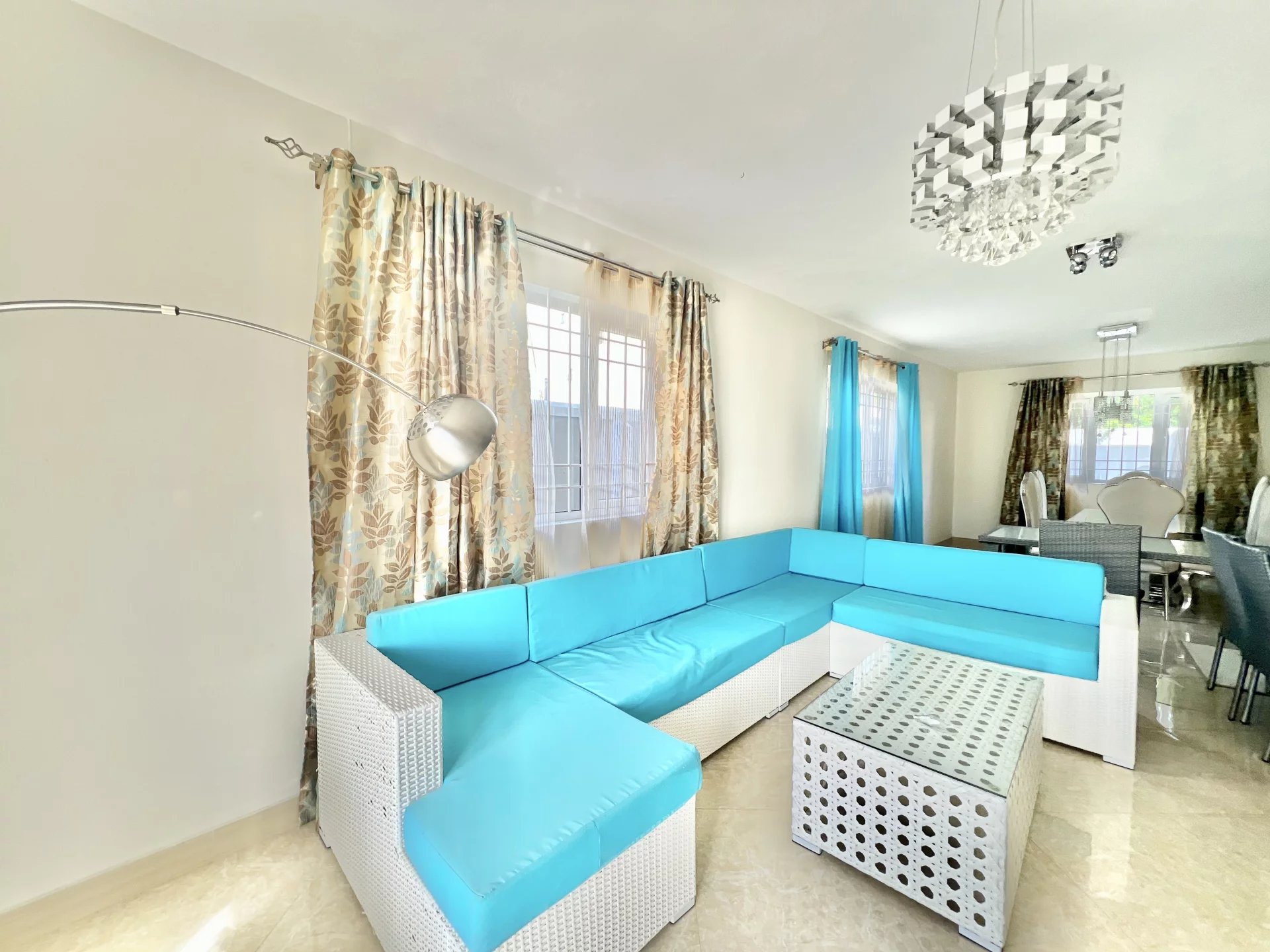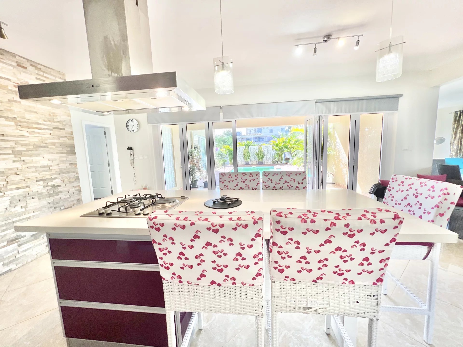 Venez découvrir cette maison moderne de 300 m² localisée dans un endroit calme de Flic en Flac. Le rez-de-chaussée s'organise autour d’un salon et d'une salle à manger avec cuisine ouverte et équipée ainsi que d’une chambre, d'une salle de bain pour les invités, d'une buanderie et d'une belle veranda. L’étage se compose de 3 chambres à coucher dont une en-suite avec un dressing et un balcon pour admirer la vue sur le jardin. Ce dernier est arboré et dispose d’une piscine, d’un store, d’un garage et de plusieurs places de parking sécurisées. Ce bien est idéal pour une famille ou pour recevoir des invités en toute intimité.