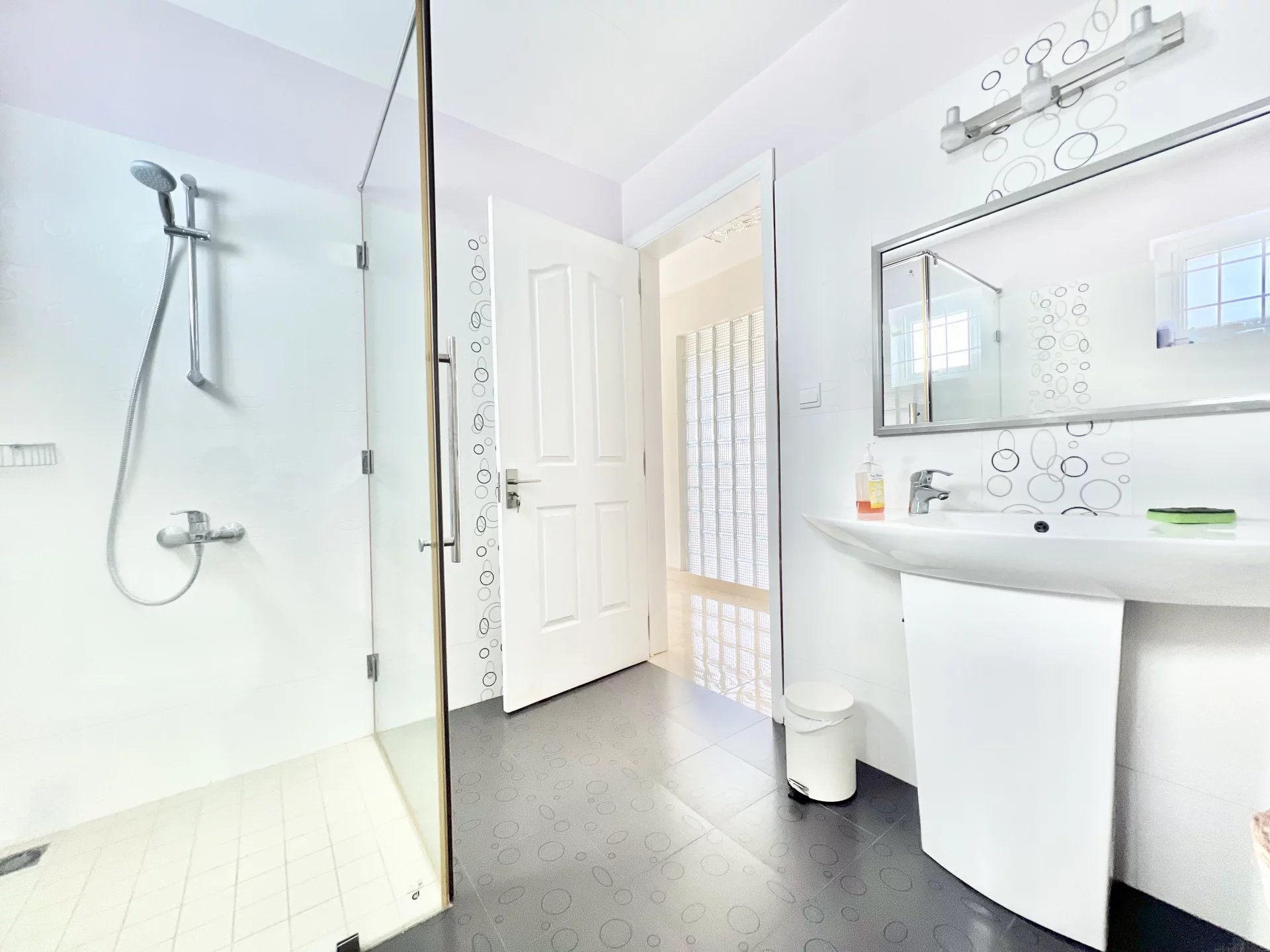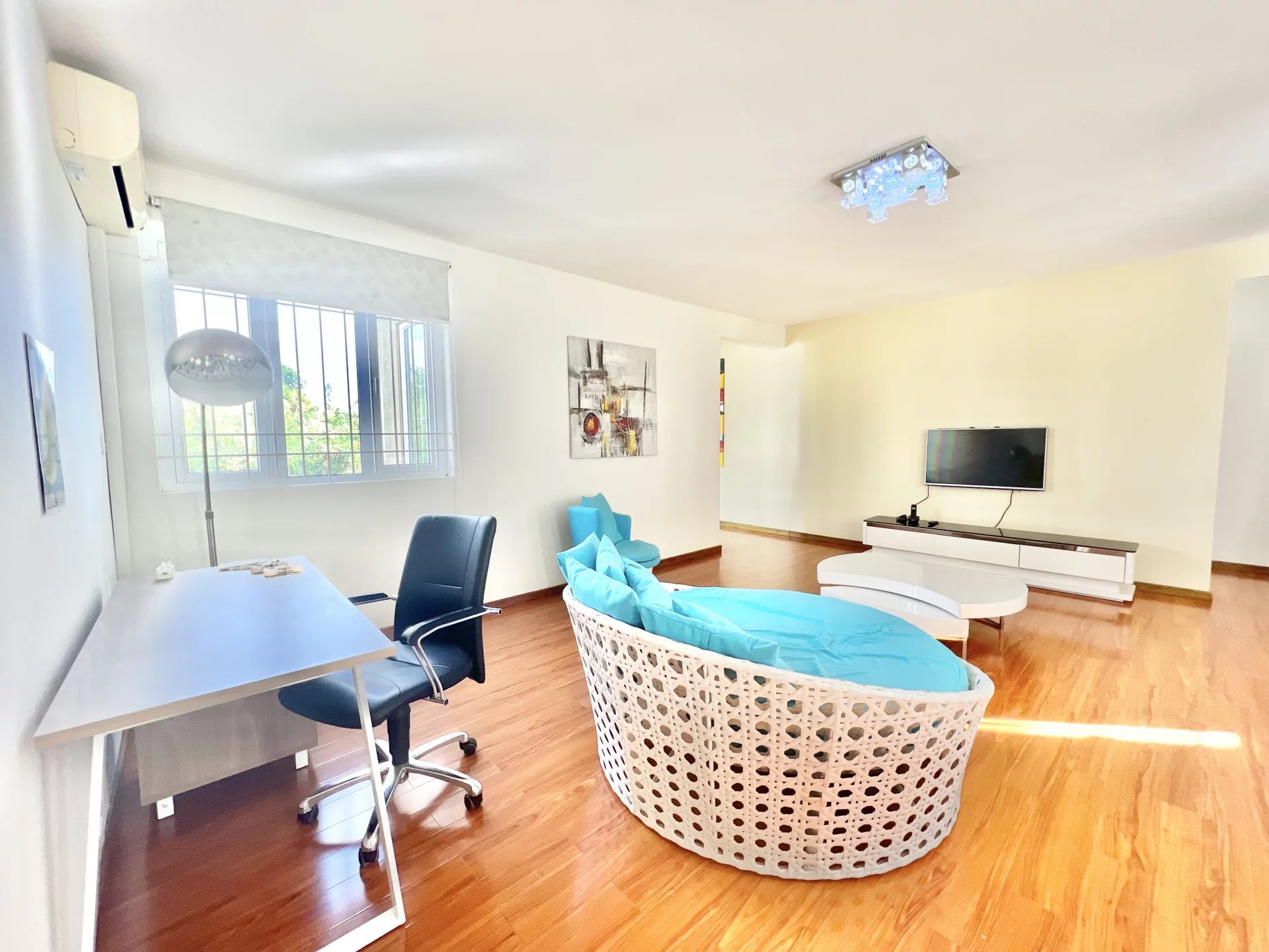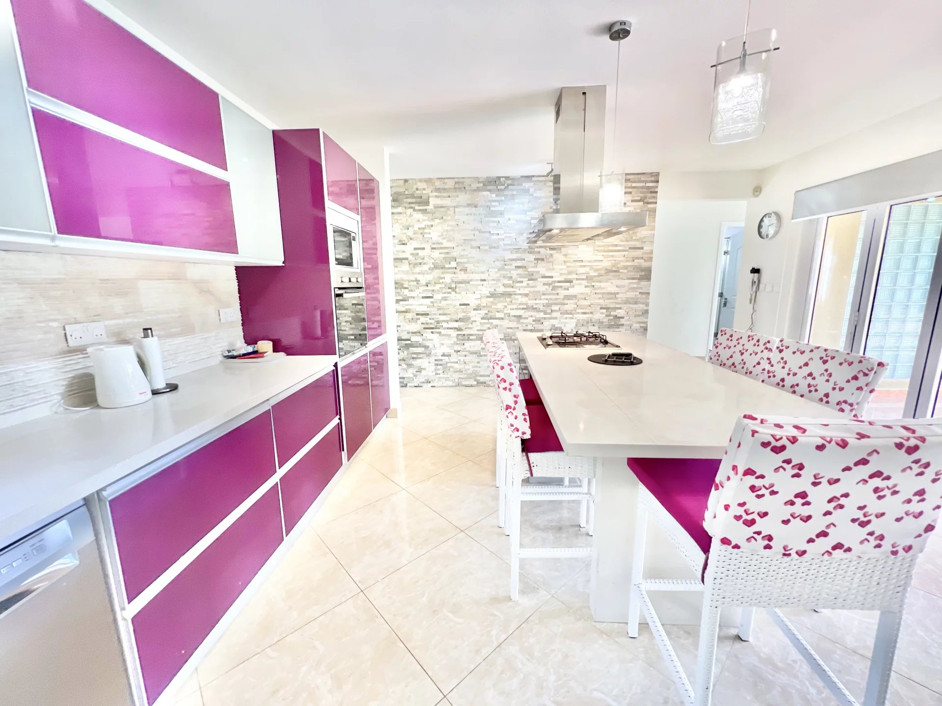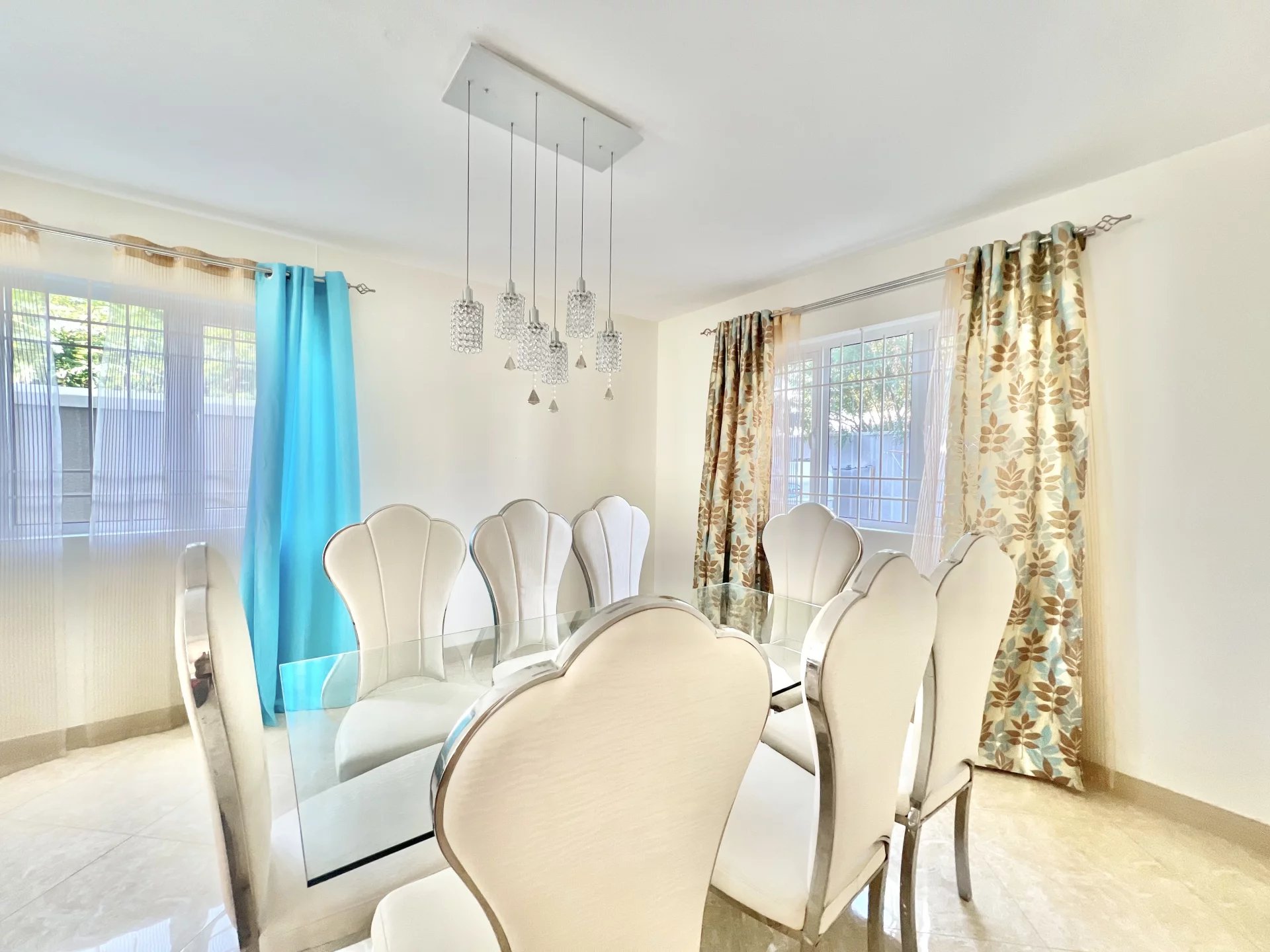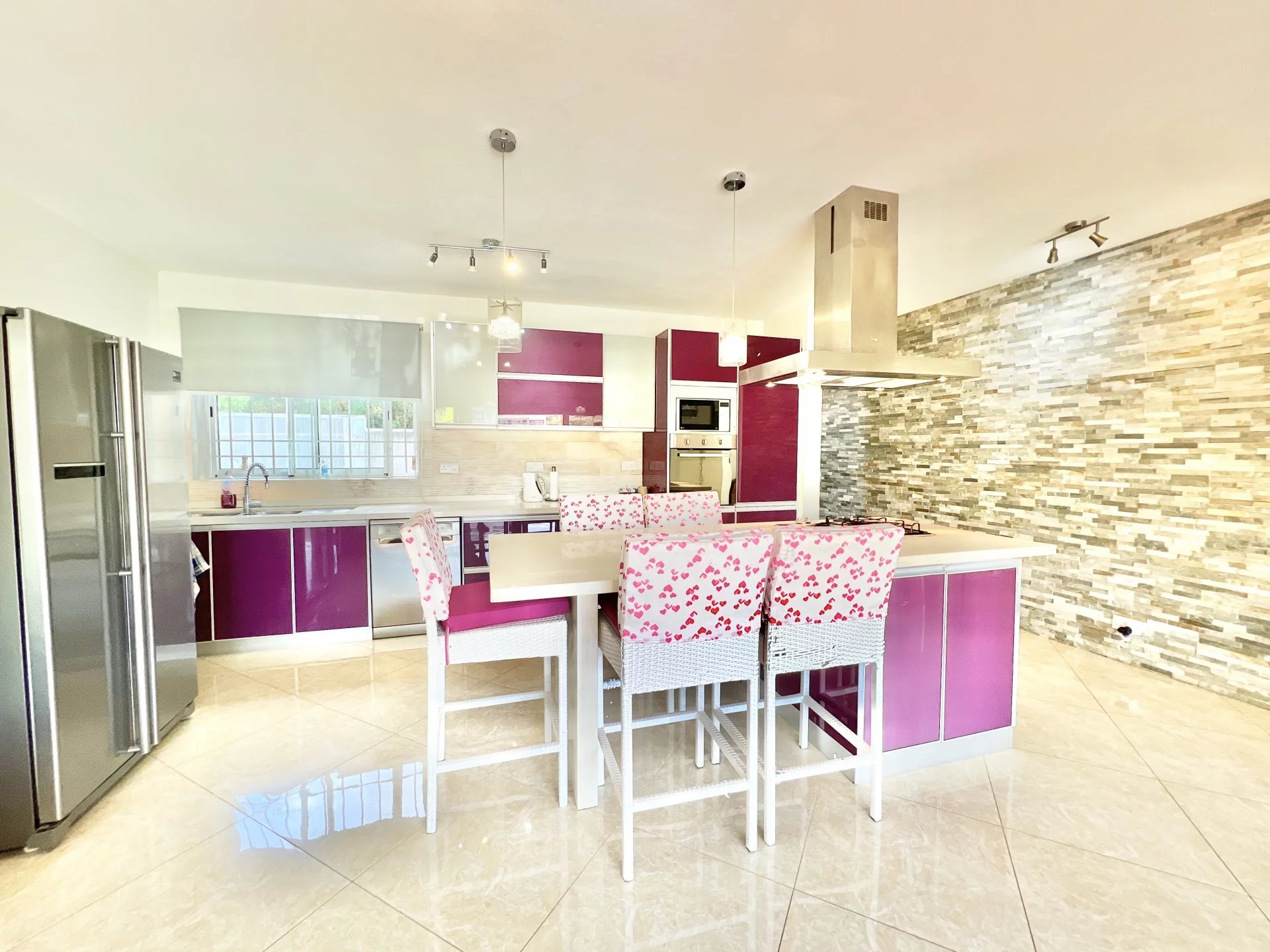 Venez découvrir cette maison moderne de 300 m² localisée dans un endroit calme de Flic en Flac. Le rez-de-chaussée s'organise autour d’un salon et d'une salle à manger avec cuisine ouverte et équipée ainsi que d’une chambre, d'une salle de bain pour les invités, d'une buanderie et d'une belle veranda. L’étage se compose de 3 chambres à coucher dont une en-suite avec un dressing et un balcon pour admirer la vue sur le jardin. Ce dernier est arboré et dispose d’une piscine, d’un store, d’un garage et de plusieurs places de parking sécurisées. Ce bien est idéal pour une famille ou pour recevoir des invités en toute intimité.