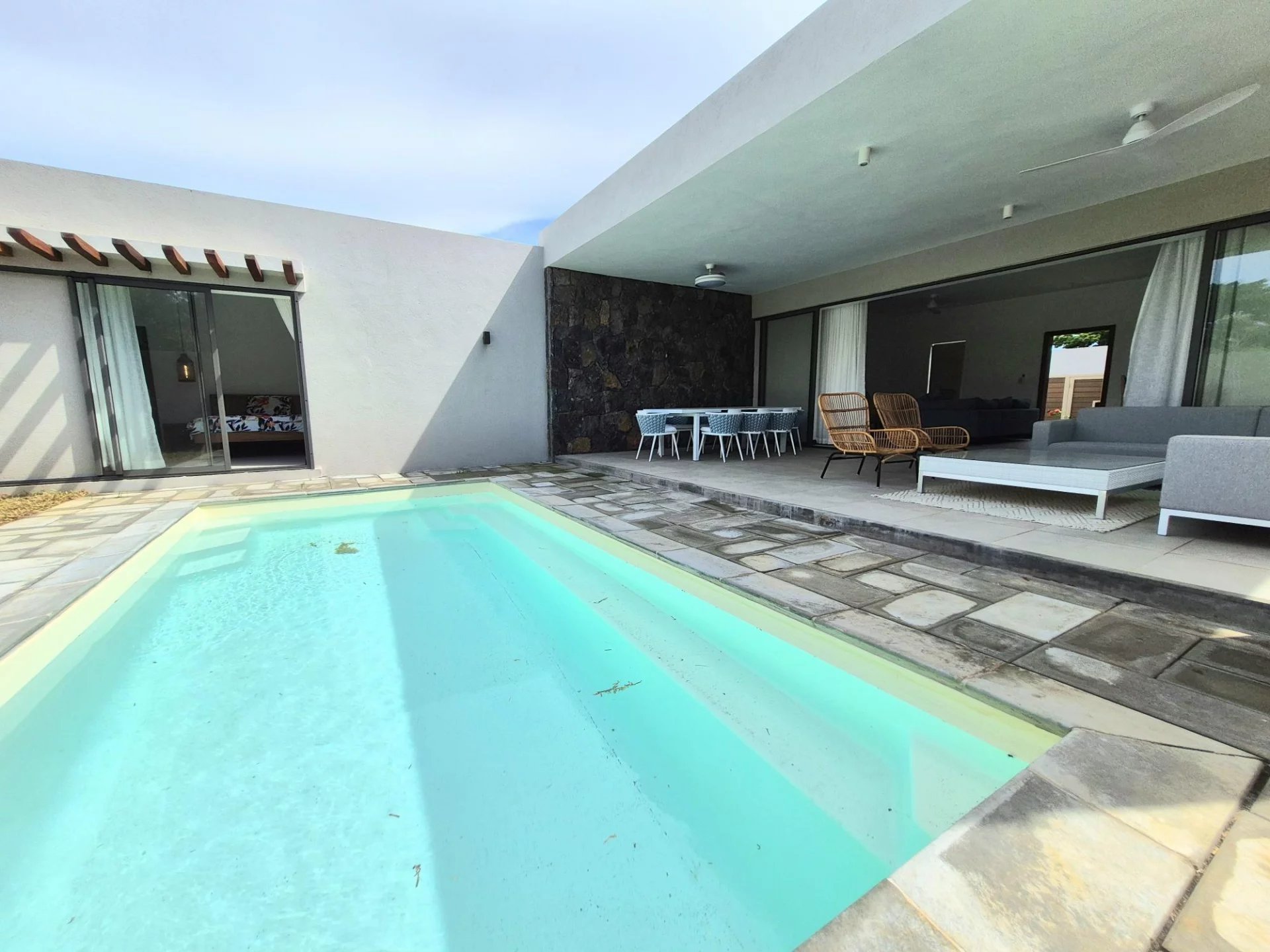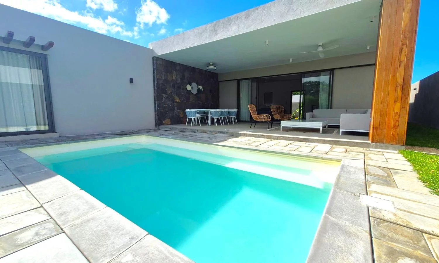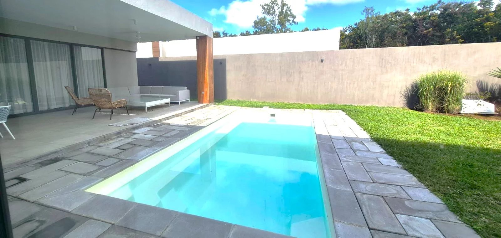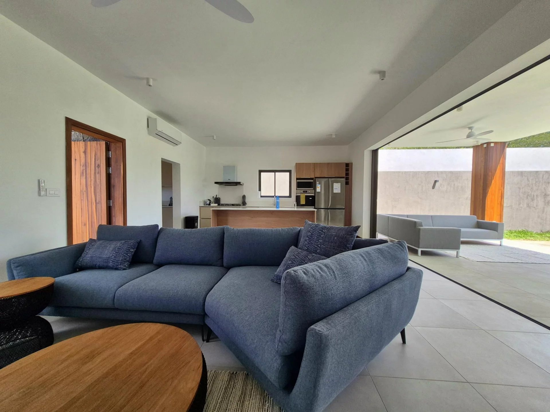 Le salon, l'espace détente et la cuisine bénéficient d’un espace ouvert et lumineux donnant sur une grande terrasse. De là, vous accédez directement à la piscine et au jardin, parfaits pour se détendre ou recevoir des invités. La cuisine, fonctionnelle et bien équipée, s’ouvre également sur le jardin et dispose d’un espace buanderie pour plus de praticité.