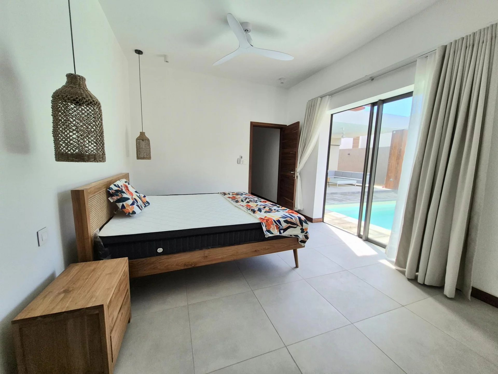 Autour de la villa, un joli jardin clos par de hauts murs garantit une intimité totale. Un portail électrique et un parking pour deux voitures assurent sécurité et confort. Le complexe bénéficie également d’un générateur et d’une surveillance 24h/24 pour une tranquillité absolue.