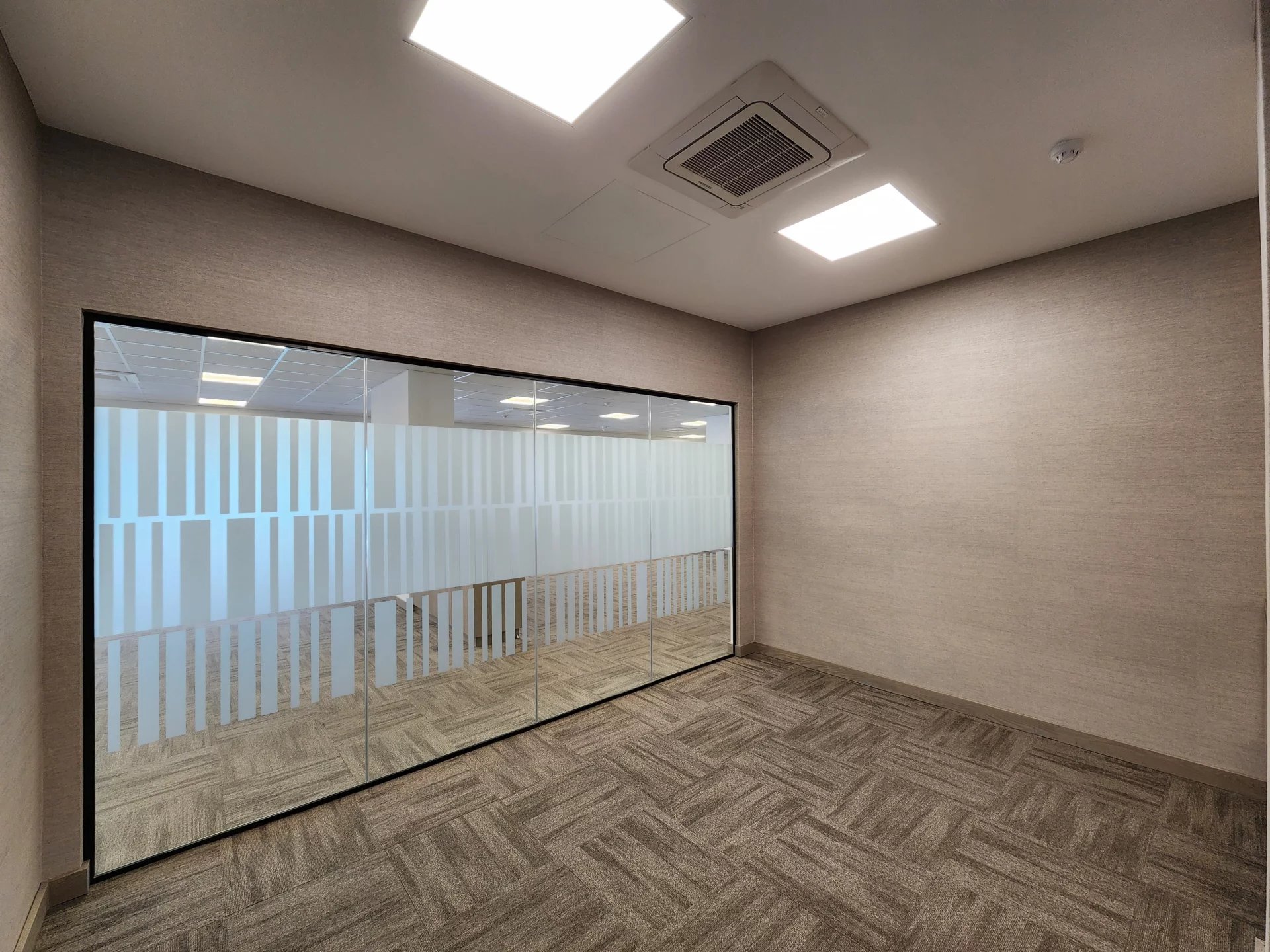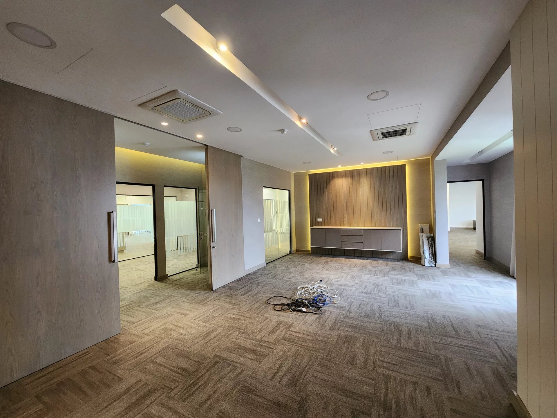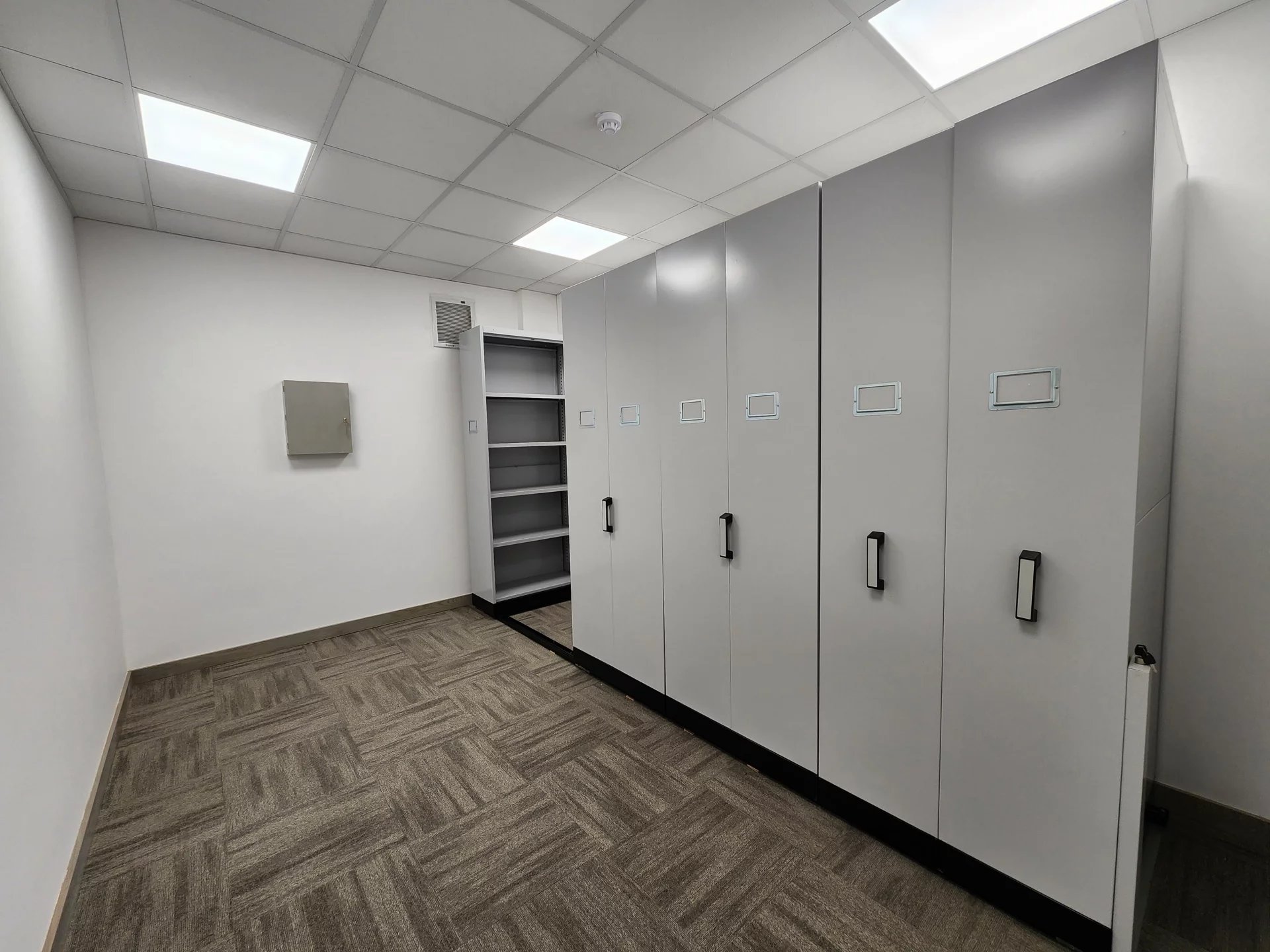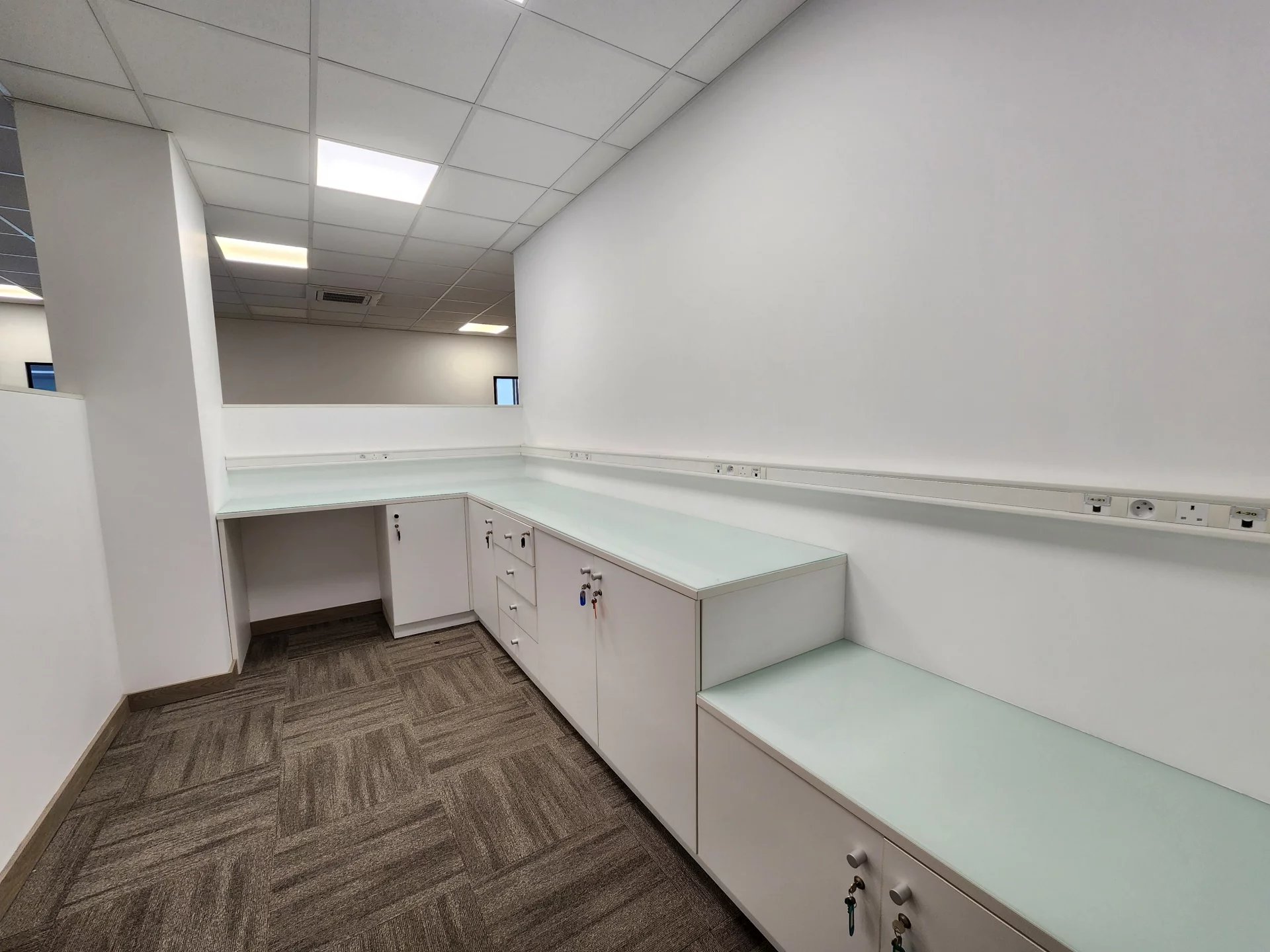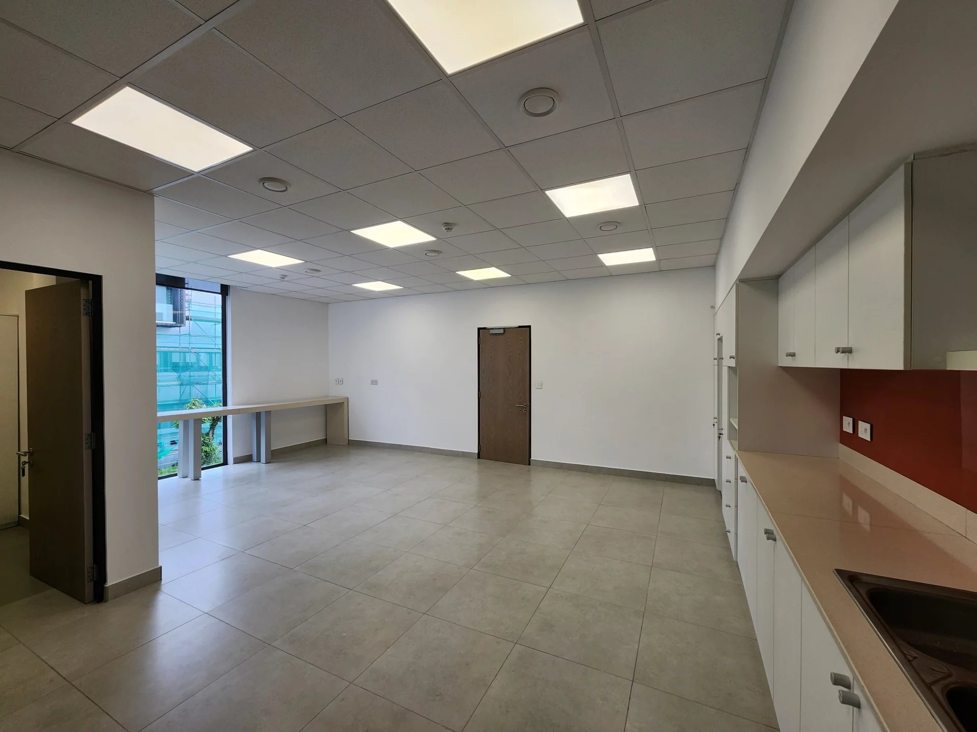 Il comprend une réception accueillante, un vaste open space, une salle de réunion, six bureaux individuels, un grand bureau de direction, deux salles d’archives, une salle informatique, un espace papeterie, une grande cuisine avec salle à manger, et plusieurs remises.
