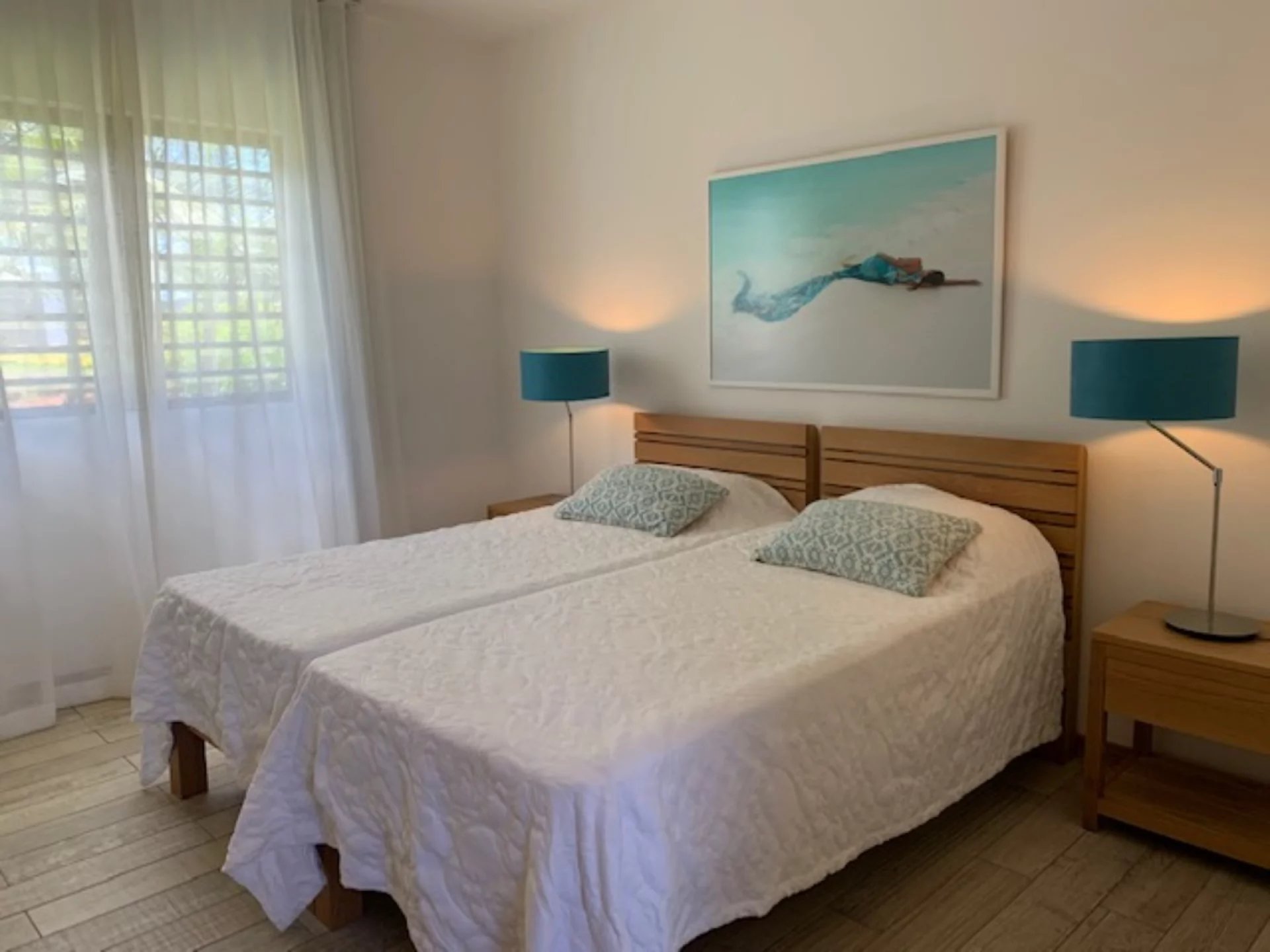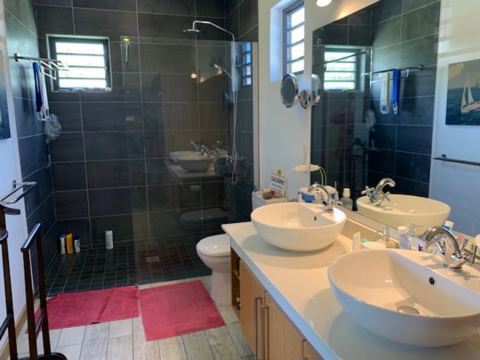 Belle villa de construction récente avec piscine privative, dans une petite résidence de 3 villas partageant un immense jardin. De plain pied, la villa comprend une belle pièce à vivre, un cuisine américaine, un salon télé (ou 4ème chambre), et un bureau. L'espace nuit comprend 3 chambres climatisées avec ventilateurs au plafond en plus, et chacune dispose de sa salle de bain attenante. La master est dotée d'un grand dressing. La villa est très sécurisée grâce à un système d'alarme et des volets roulants. Un garage et une générateur automatique complètent ce bien qui vaut le détour. Amateurs de tranquillité et de grands espaces, cette maison vous attend !