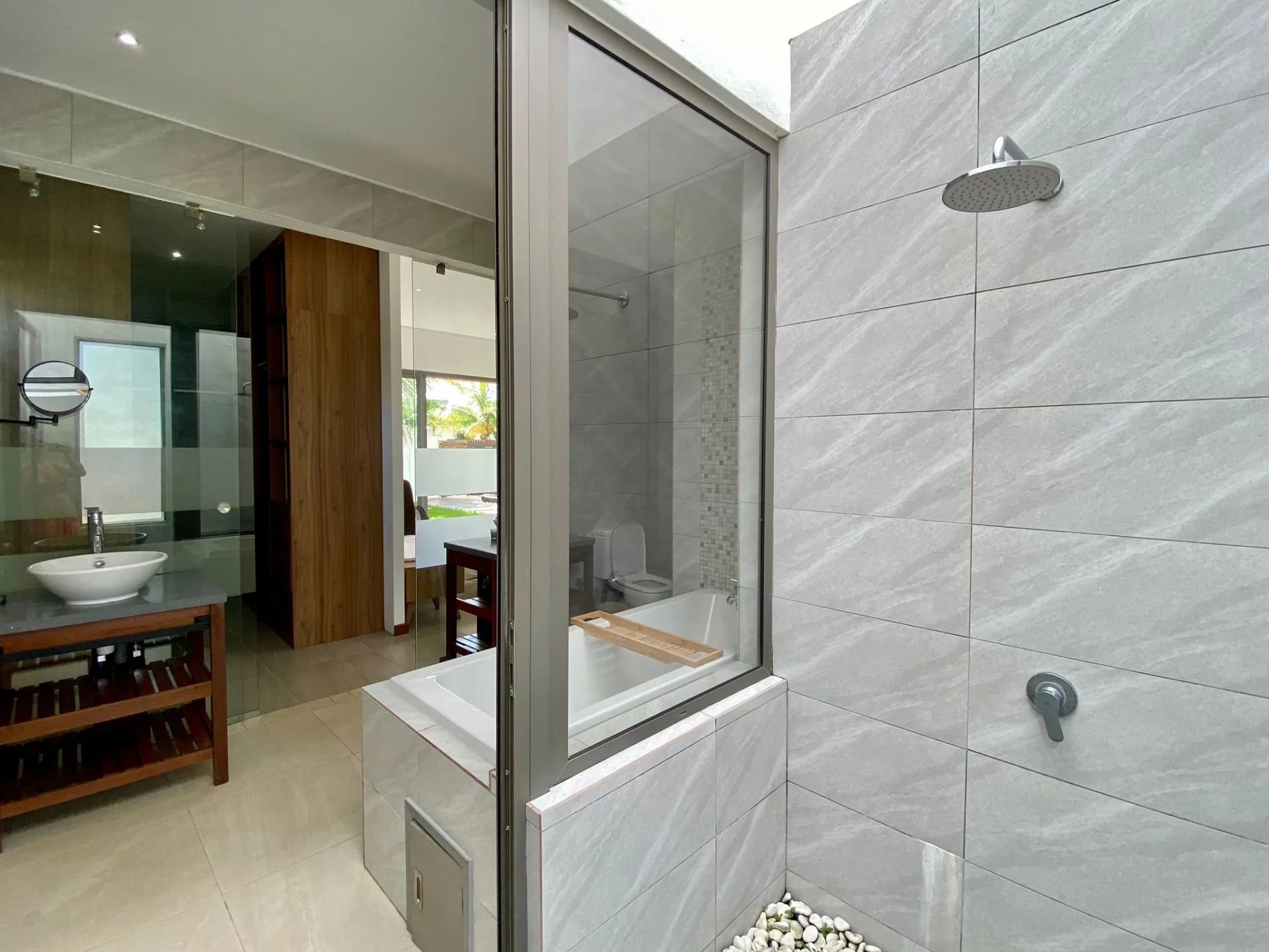 Située dans une résidence neuve et sécurisée à proximité du centre de Grand Baie et de ses belles plages, cette villa d'une superficie d'environ 333 m² sur un terrain de 444 m² est entièrement meublée.