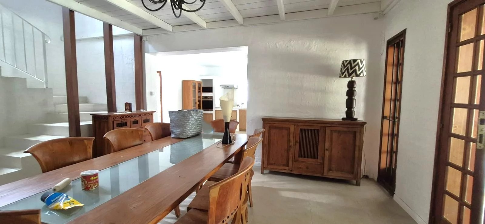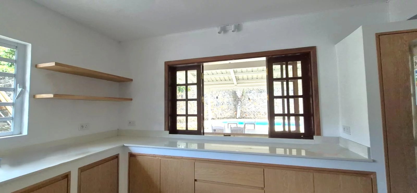 Nichée au cœur d’un jardin paysager privé, la villa s’organise autour d’une superbe piscine et d’une vaste terrasse, créant une harmonie parfaite entre les espaces intérieurs et extérieurs. La grande terrasse surplombe le jardin et la piscine, servant de cadre idéal pour recevoir, dîner en plein air ou simplement profiter de l’environnement tropical en toute intimité.