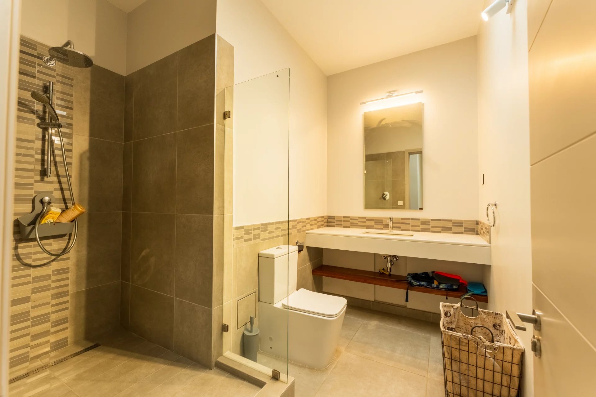 À l’étage, la suite parentale climatisée dispose de sa propre salle de bain, tandis que deux chambres supplémentaires se partagent une salle d’eau commune.