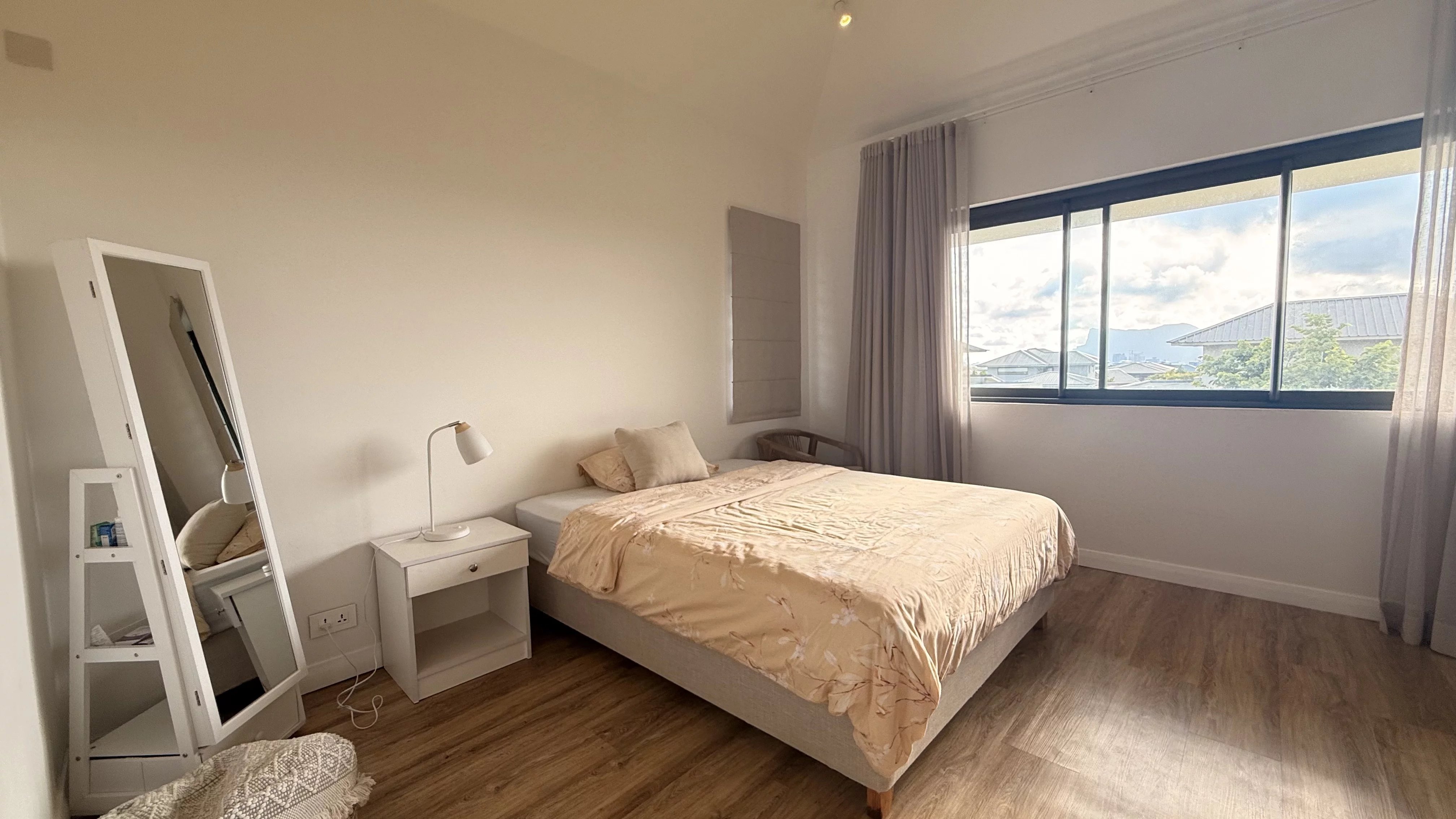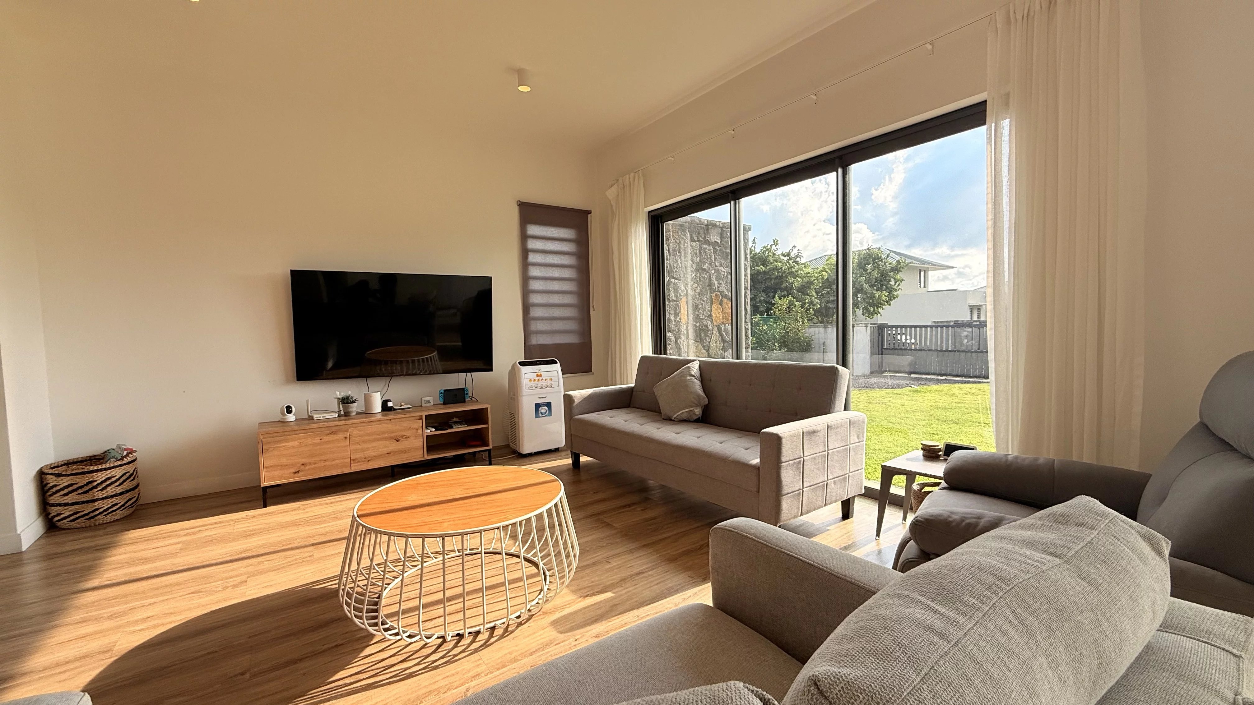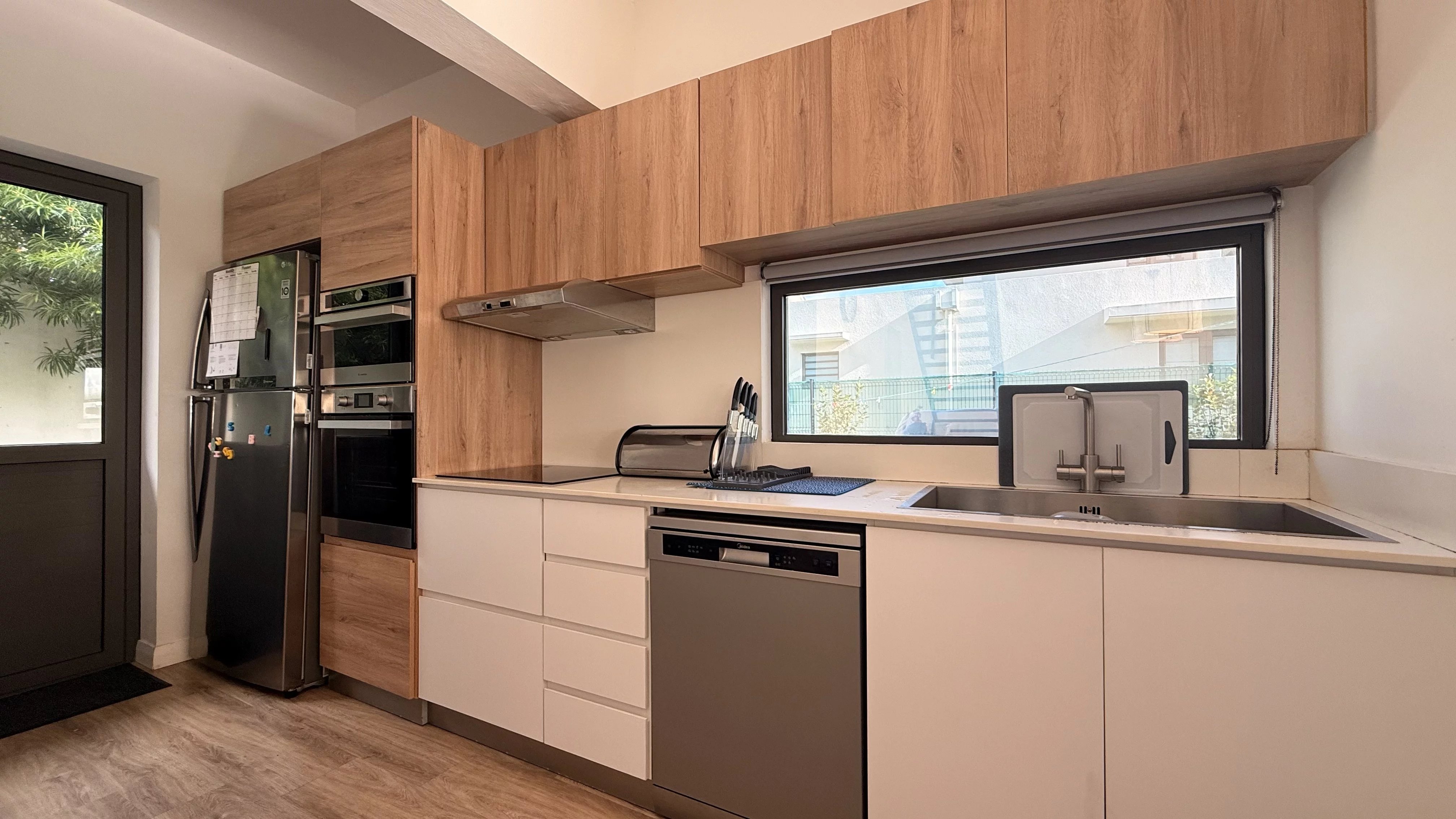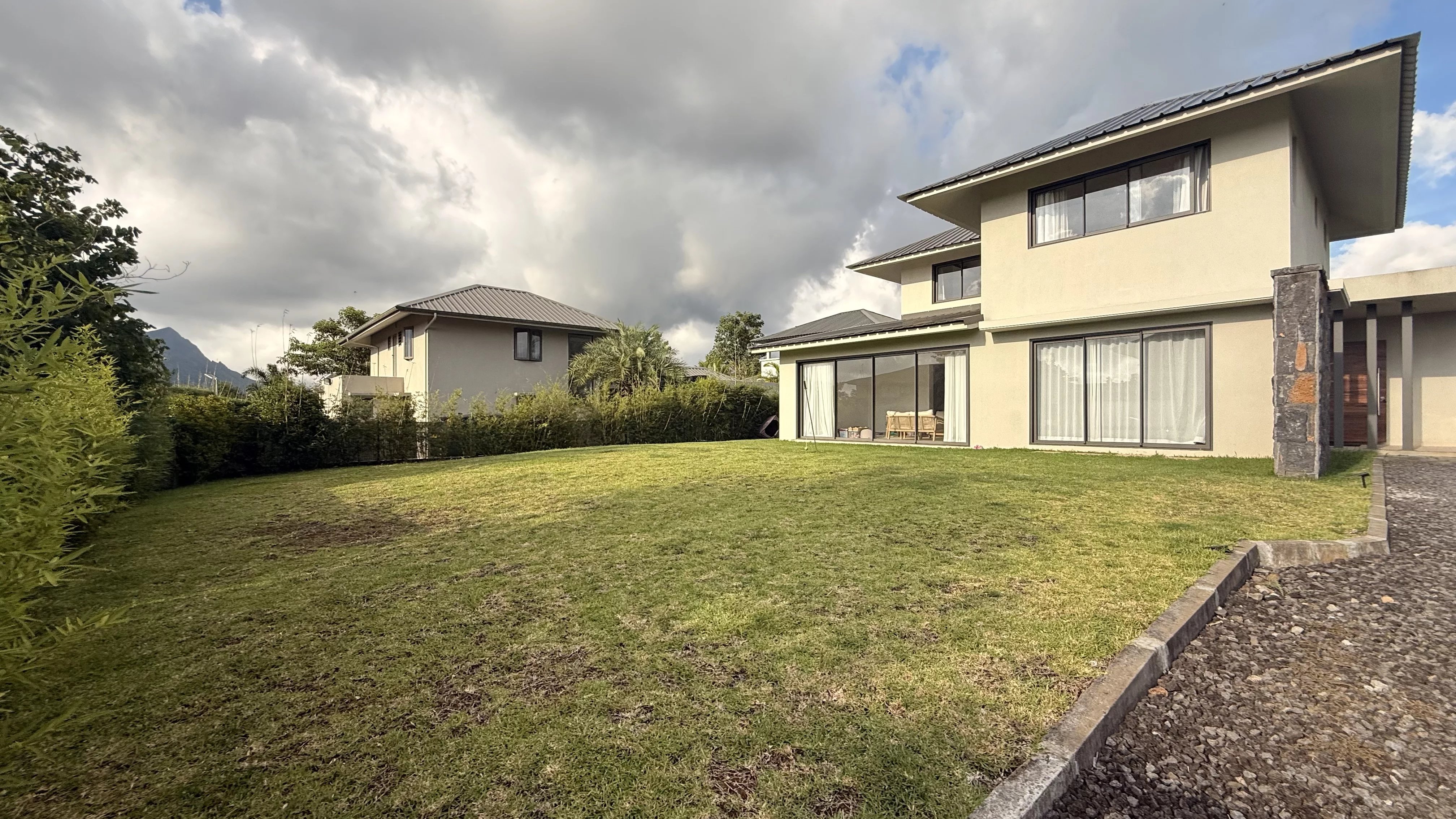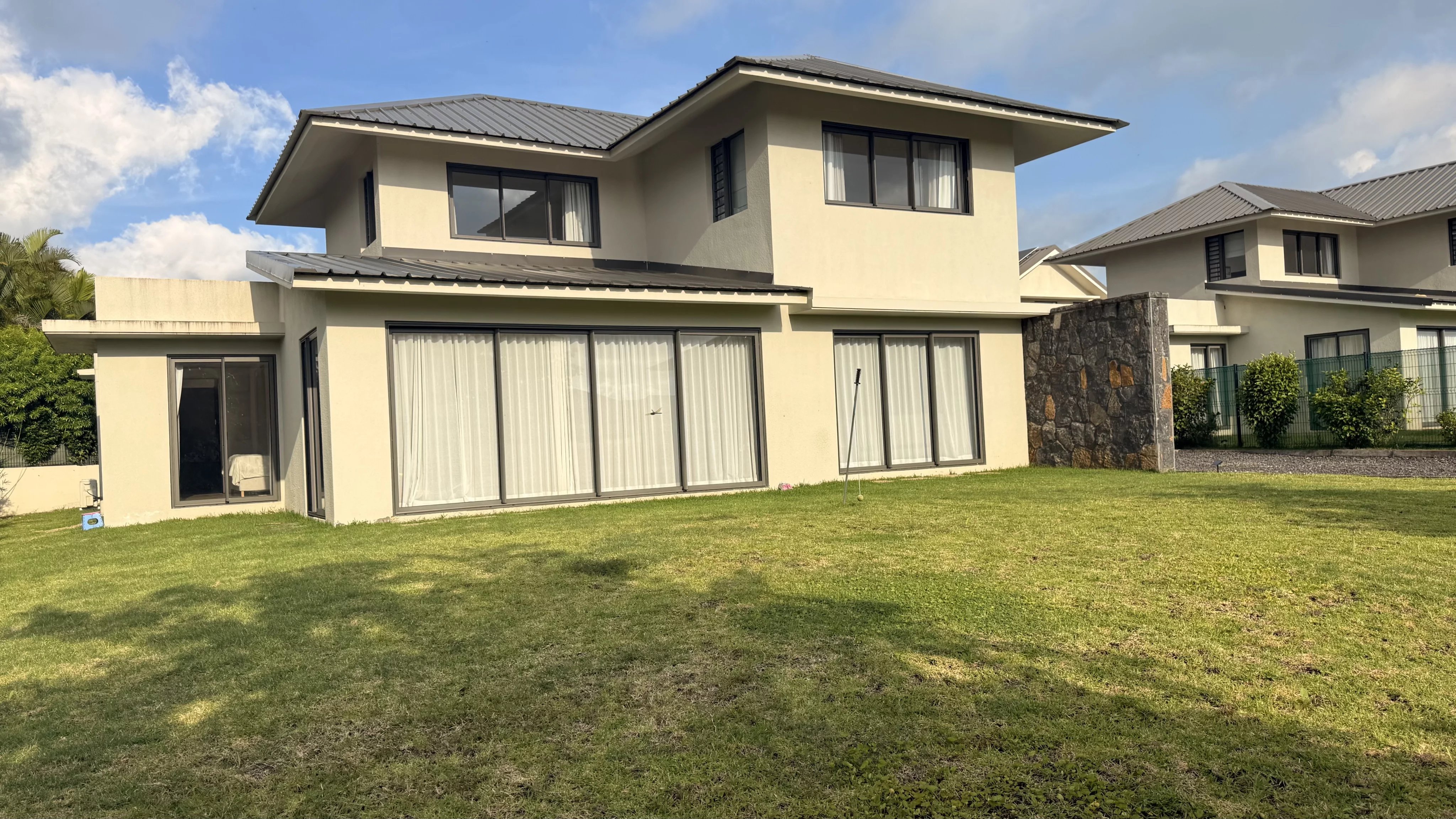 Charmante maison familiale à louer à Moka, comprenant trois chambres, dont une chambre en suite au rez-de-chaussée et deux chambres à l’étage avec une salle de bain commune. La maison dispose d’une cuisine entièrement équipée et d’un salon lumineux ouvrant sur un beau jardin, idéal pour profiter d’un cadre calme et familial.