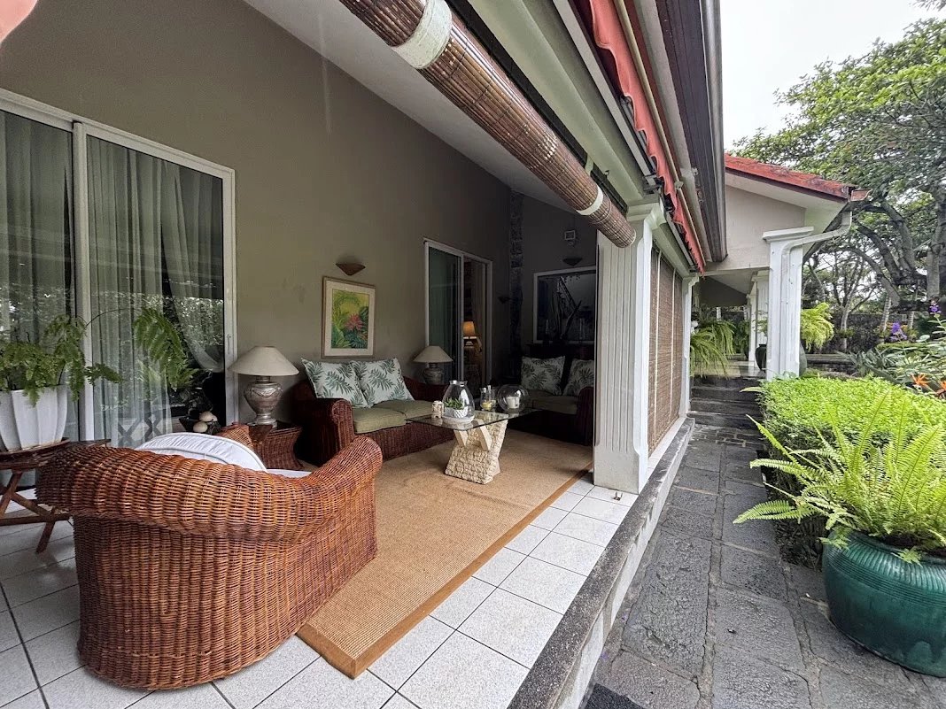 Situé au sein d’un domaine magnifiquement arboré de 4 643 m², cette superbe maison de 5 chambres dont 3 en suite se situe à Moka et est bordé d’un mur en pierre de taille.