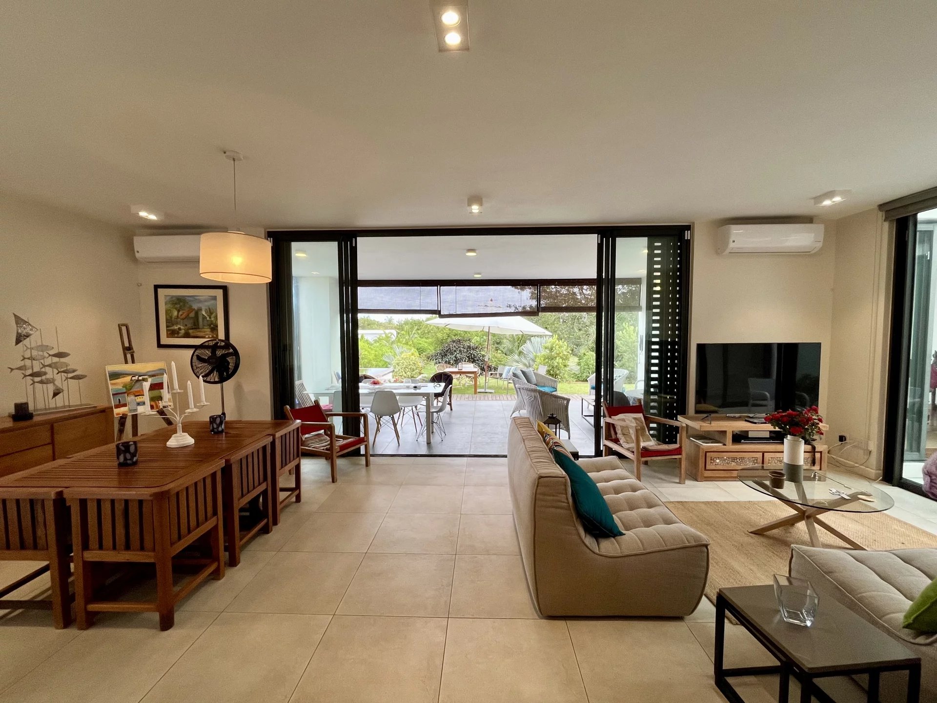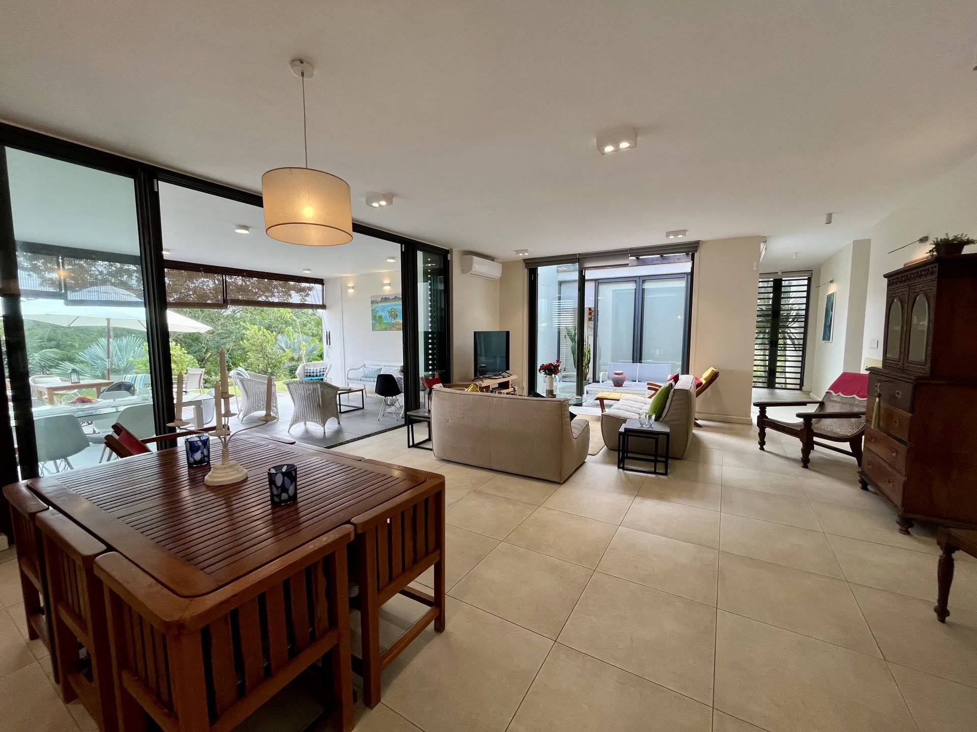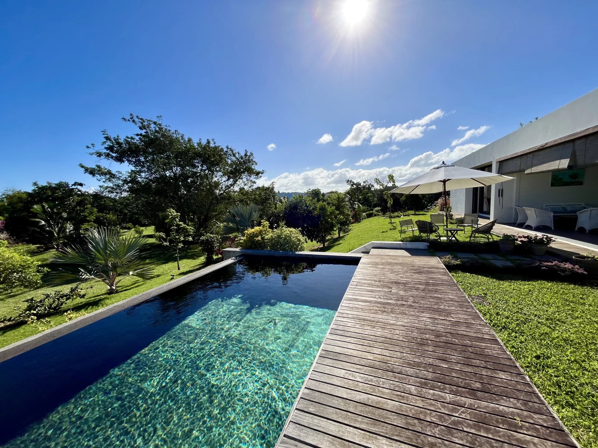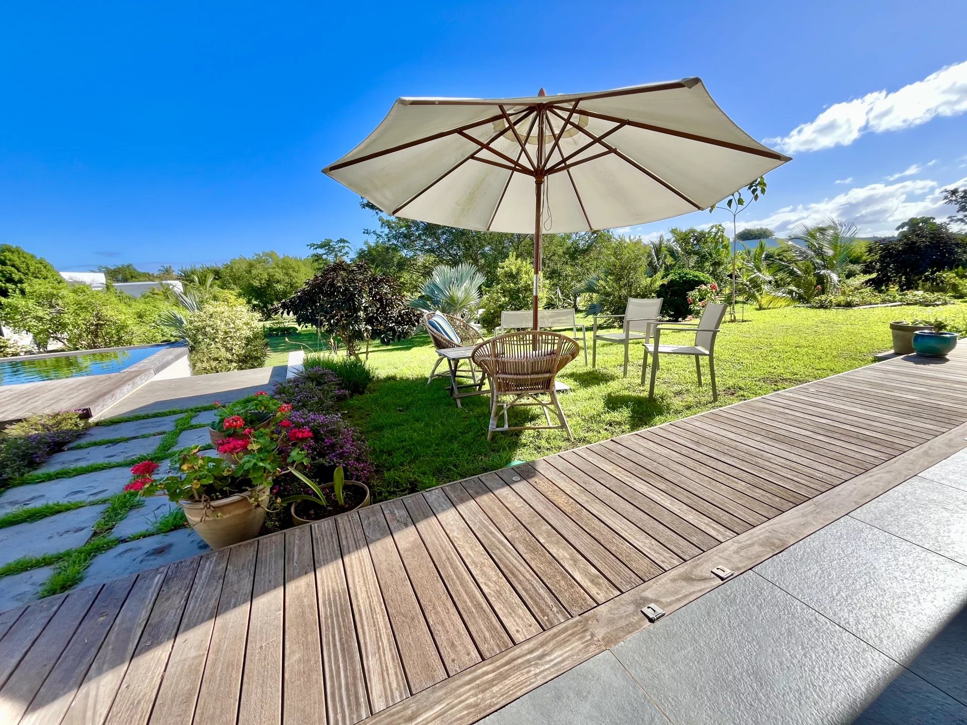Vous apprécierez la commodité du garage électrique avec espace pour une voiture, ainsi que le générateur sur place pour assurer une alimentation électrique ininterrompue. Profitez d'une baignade rafraîchissante dans votre grande piscine privée ou détendez-vous parmi les différents arbres fruitiers de la propriété, qui ajoutent à l'ambiance sereine et verte. La terrasse sur le toit offre des vues magnifiques, en faisant un endroit idéal pour se détendre.