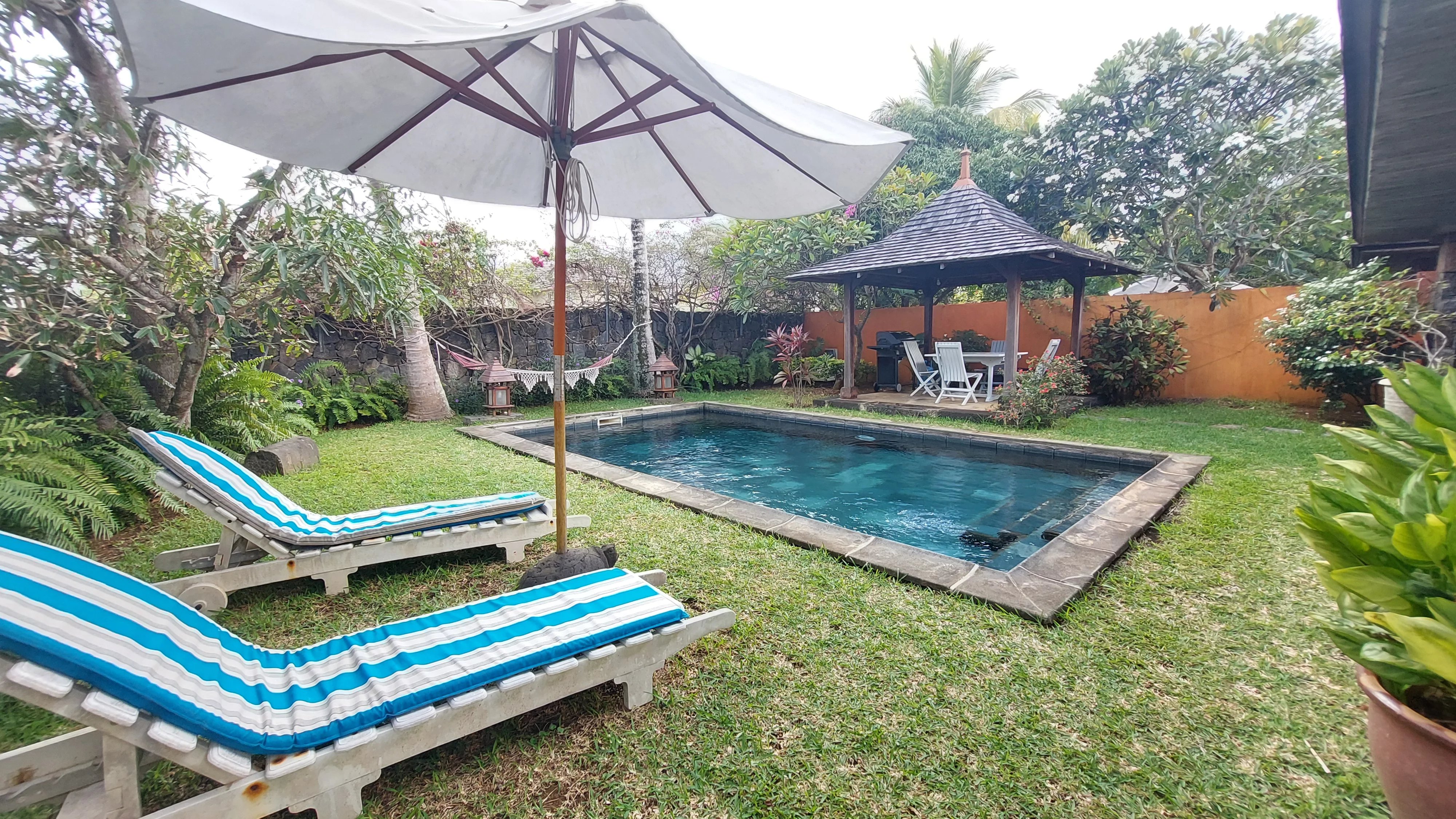 Le kiosque dans le jardin à côté de la piscine, est idéal pour le petit déjeuner et les repas.