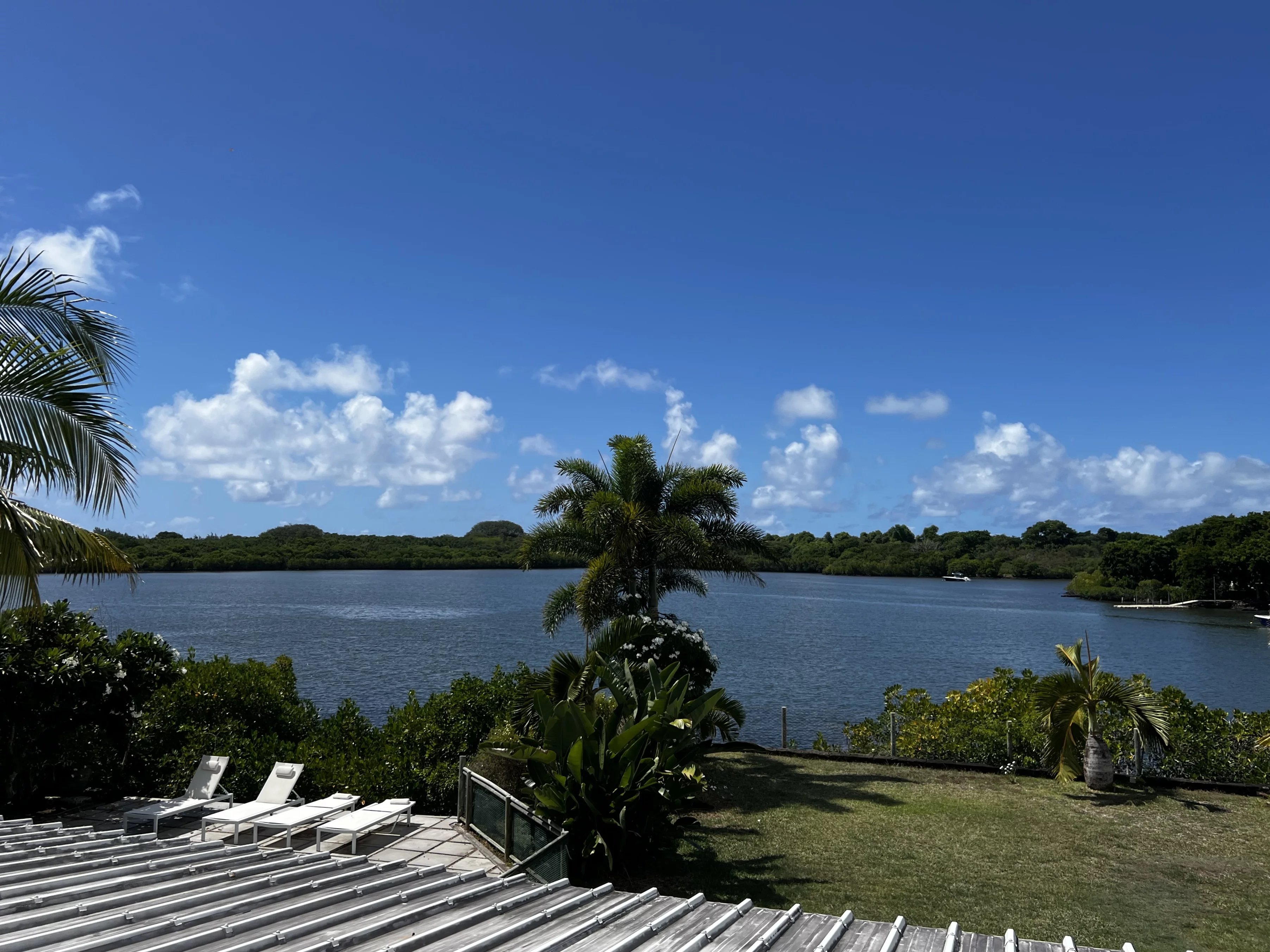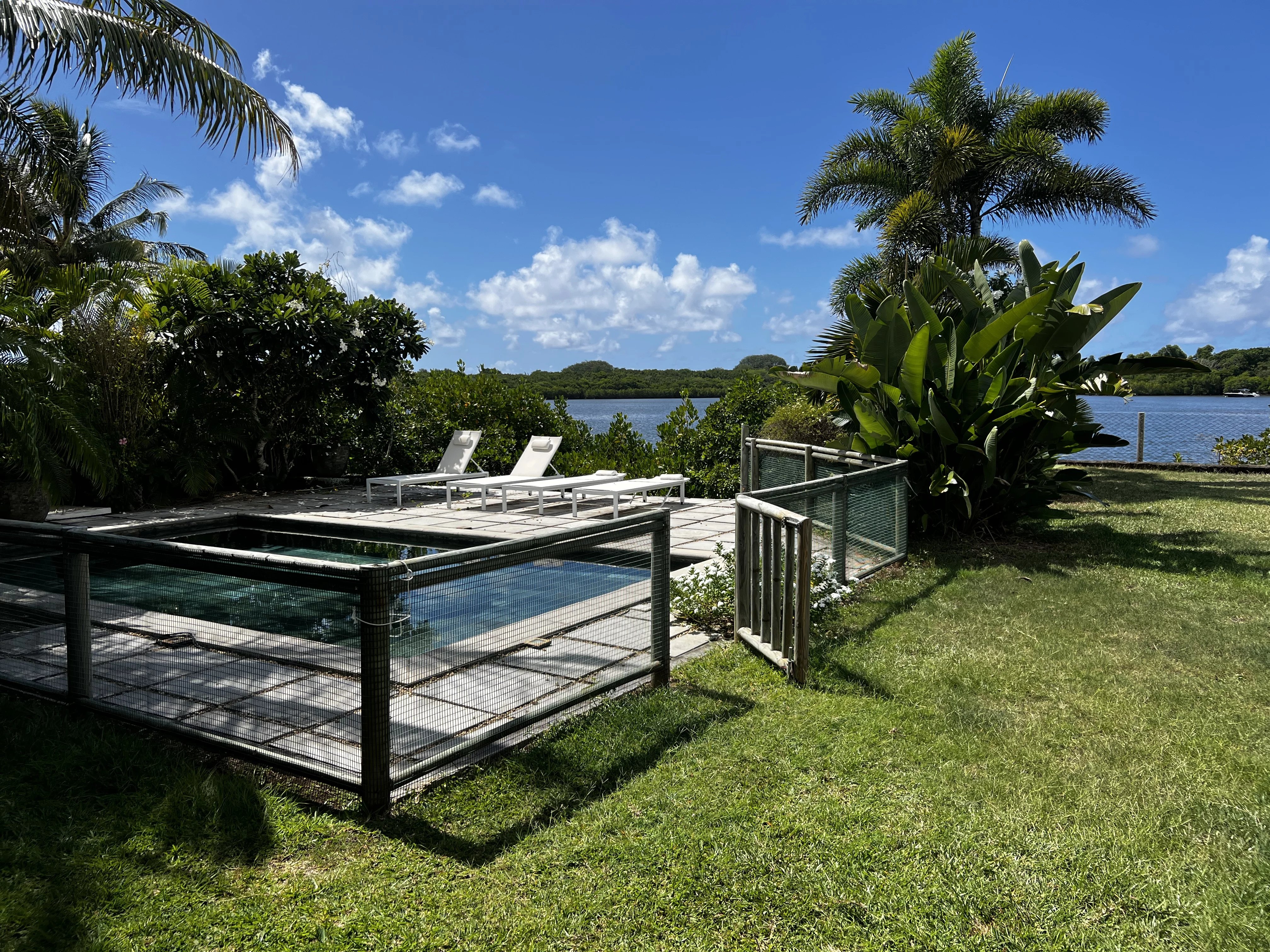À l’extérieur, une piscine sécurisée surplombe la mer et les mangroves, offrant un cadre paisible et intime pour se détendre.