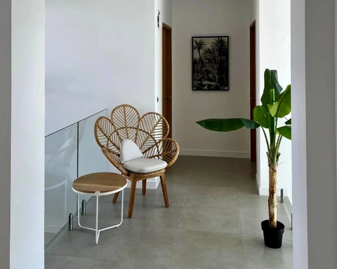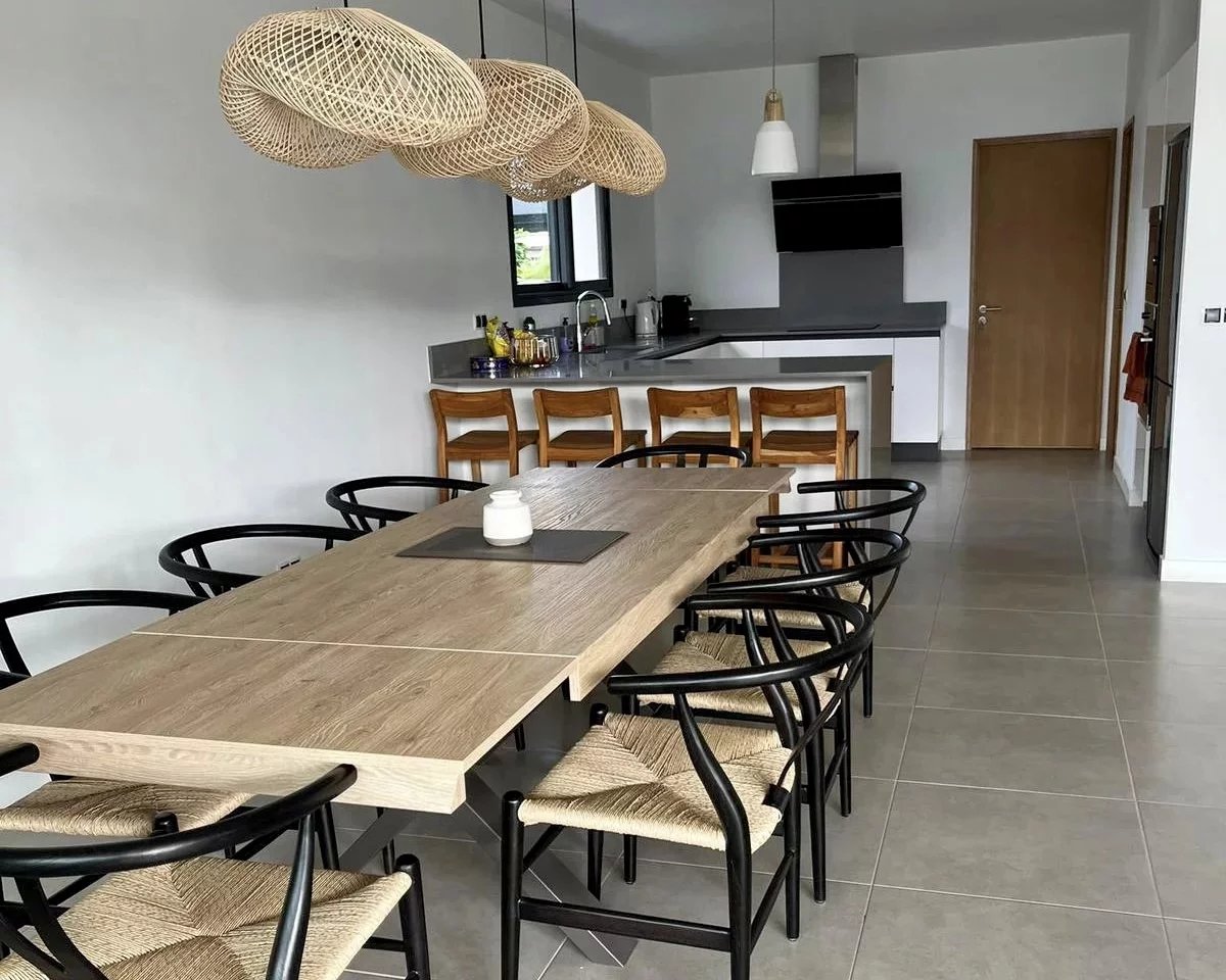 Bâtie sur 2 niveaux, cette villa lumineuse et moderne de 342 m² sur un terrain de 684 m² offre un séjour spacieux, une cuisine ouverte ainsi qu'une chambre avec salle d'eau au premier niveau. De beaux volumes et de belles hauteurs sous plafond ajoutent à son charme. Au second niveau se trouvent 3 chambres, chacune équipée d'une salle d'eau attenante. Toute la villa est dotée d'une isolation des murs, parfaite pour contrer la chaleur de l'île.