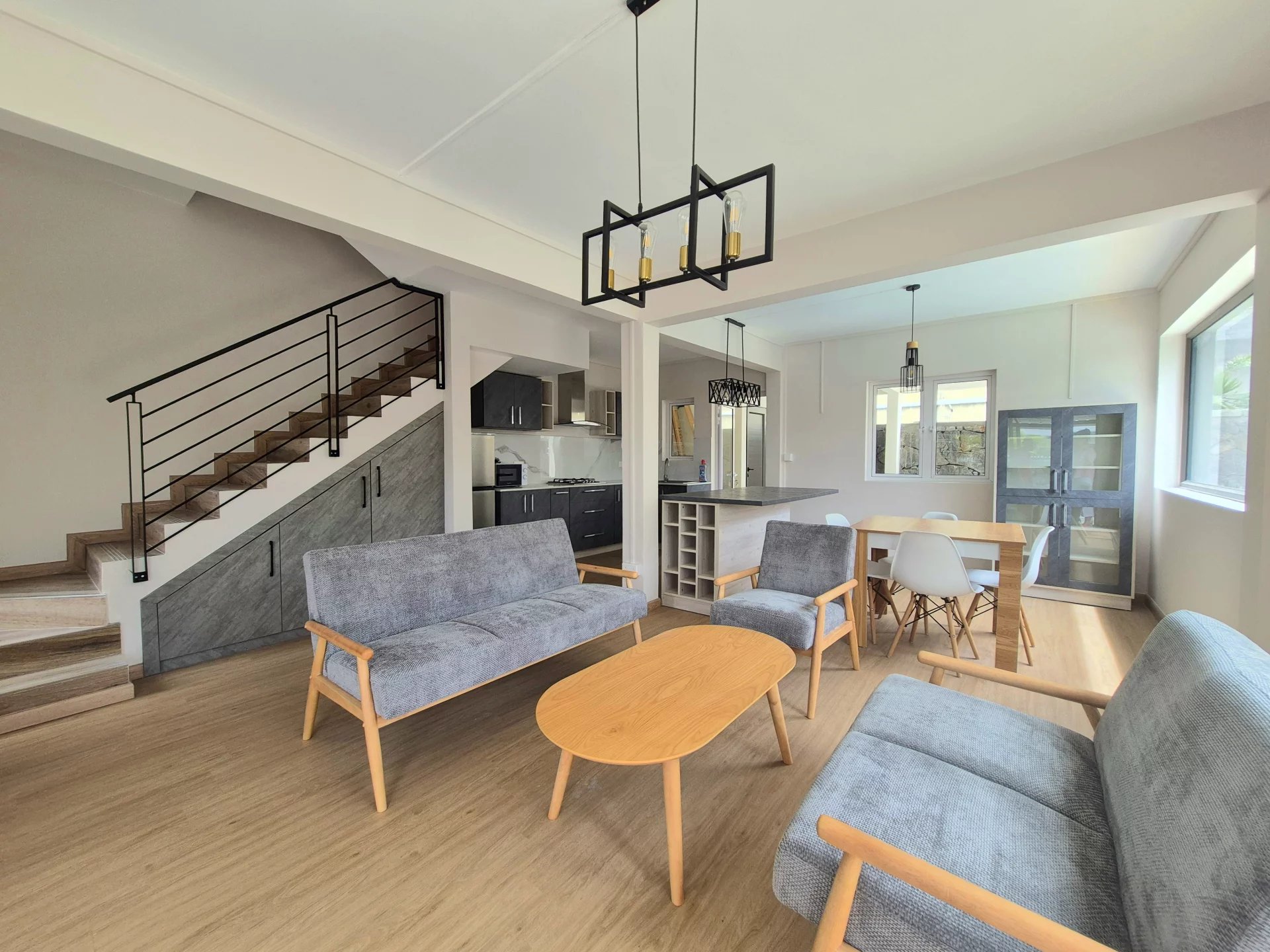 Grand espace de vie ouvert et lumineux